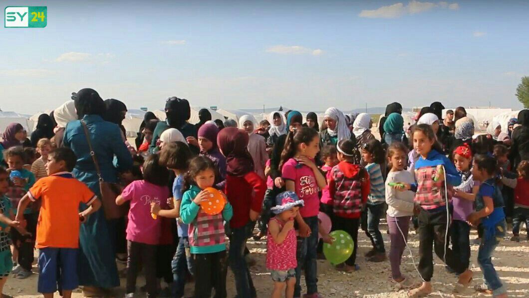 نظم فريق “فسحة أمل” حفلاً ترفيهياً لأطفال الغوطة الشرقية الذين قدموا مؤخراً مع عائلاتهم إلى مخيم البل بريف حلب الشمالي، وذلك بهدف إخراجهم من أجواء الحرب، ورسم البسمة على وجوههم، وخاصةً أنهم رأوا مشاهد مروعة، وبعضهم تعرض للإصابة بسبب القصف.