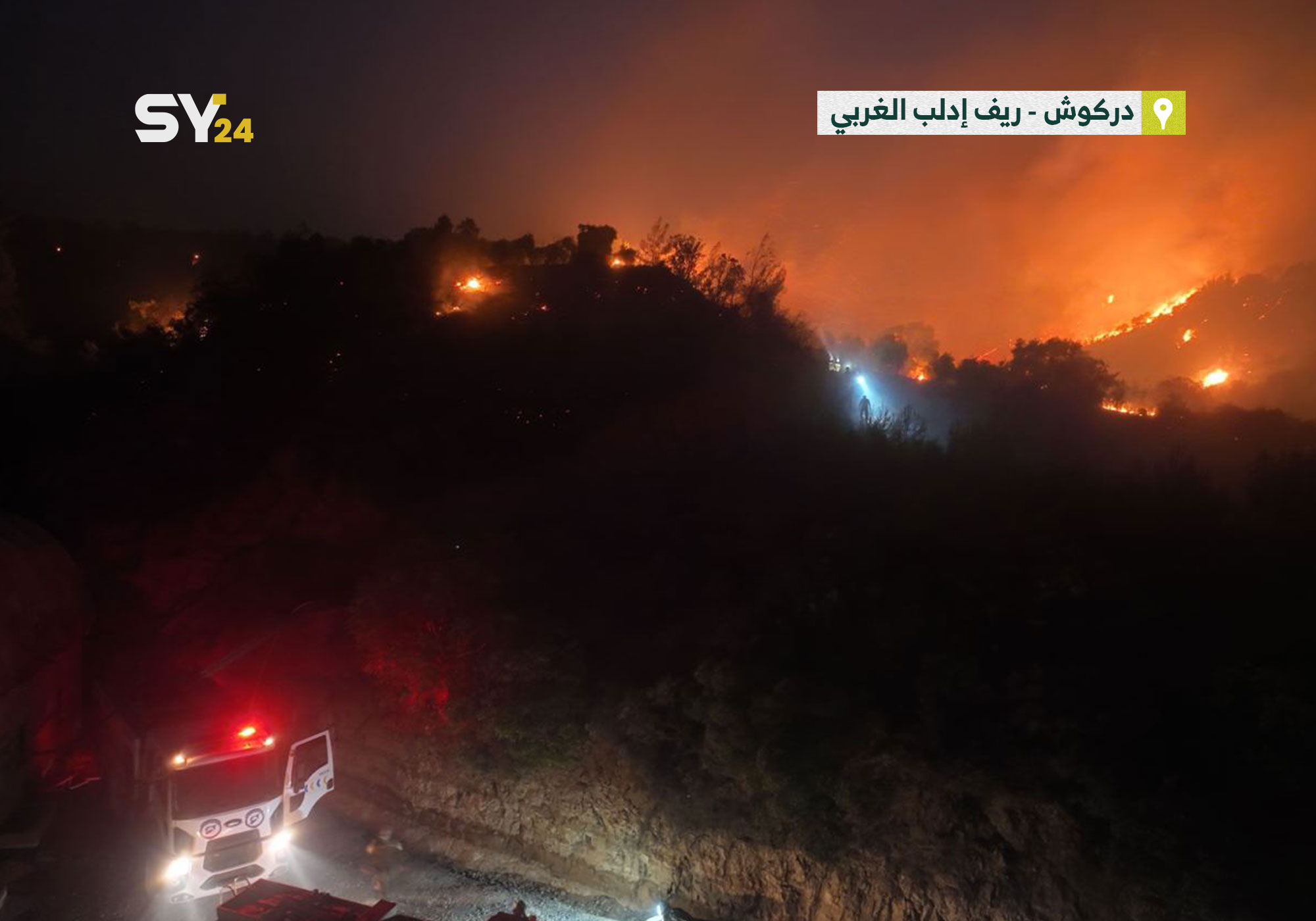 فرق الدفاع المدني تتمكن من إخماد الحرائق التي اندلعت في أحراش دركوش بريف إدلب الغربي