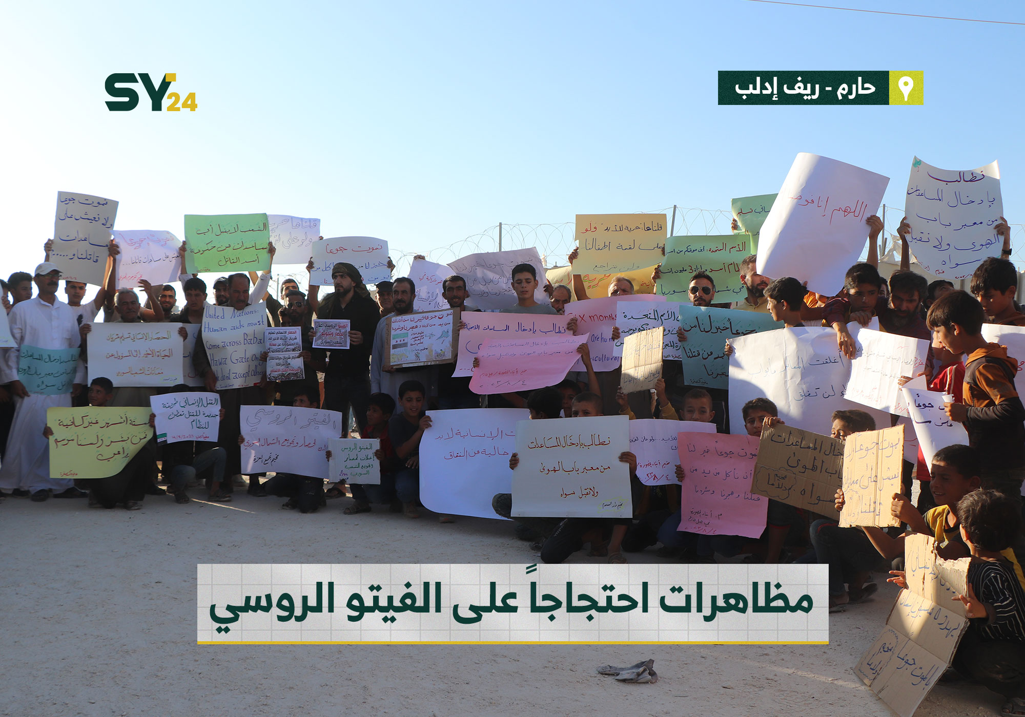 مظاهرات في مخيمات الشمال السوري احتجاجاً على الفيتو الروسي الذي يعرقل إدخال المساعدات