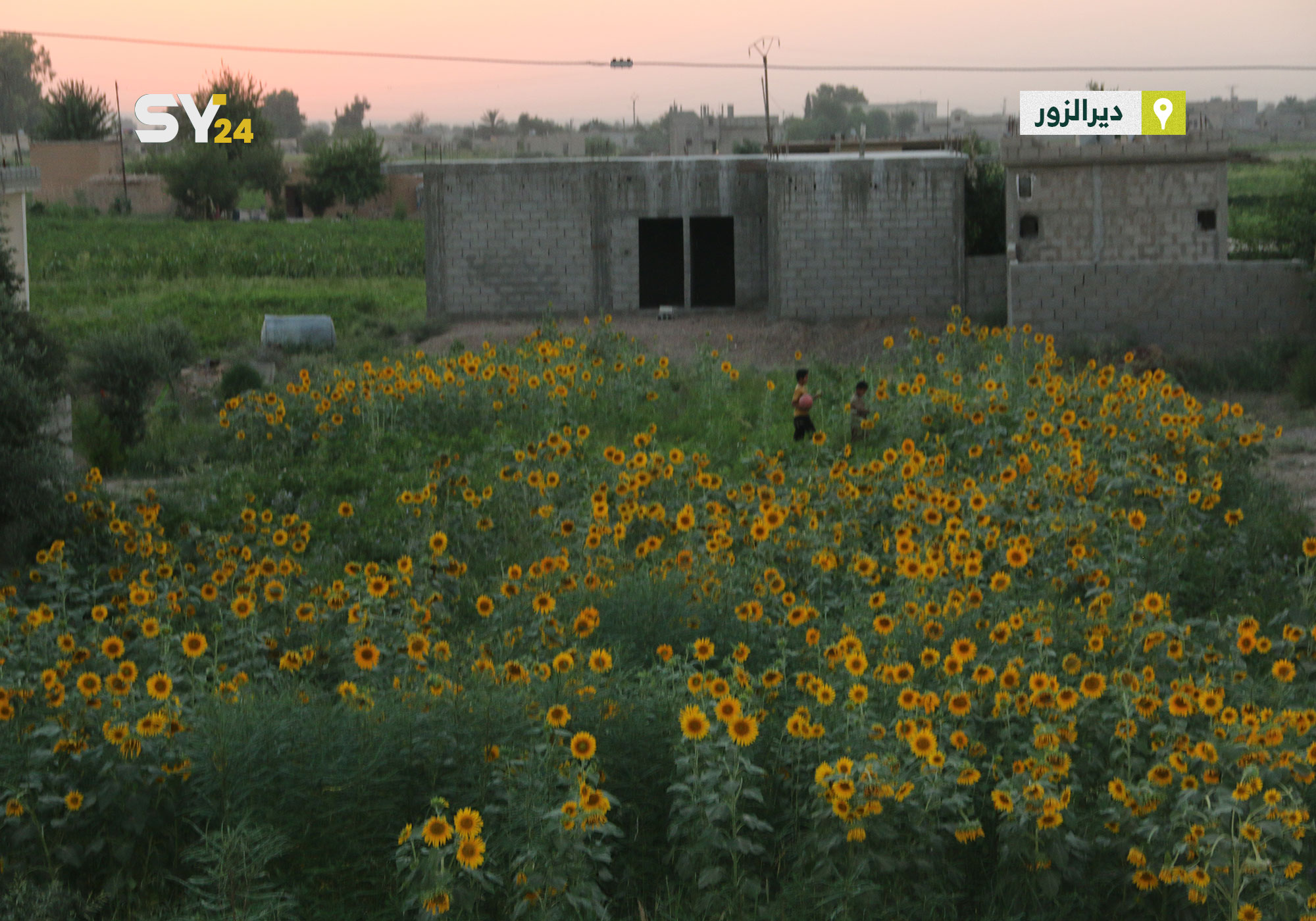 دوار الشمس يُزرع على شكل إطار يحيط بالأرض لحماية الموسم من الرياح والغبار، صباح الخير من ريف دير الزور