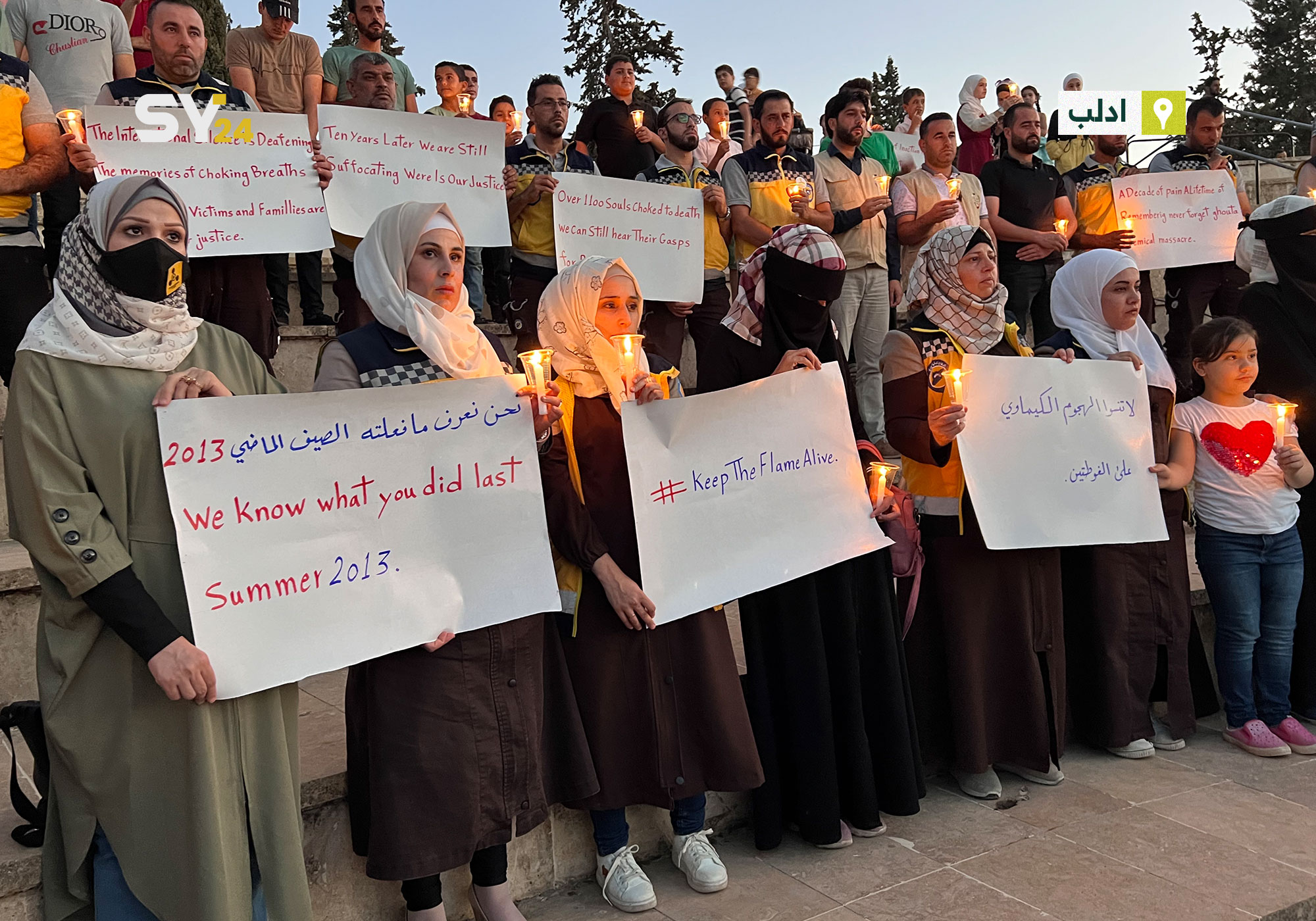 الدفاع المدني السوري في إدلب ينظم وقفة سلمية بمناسبة مرور 10 سنوات على مجزرة الغوطة الشرقية