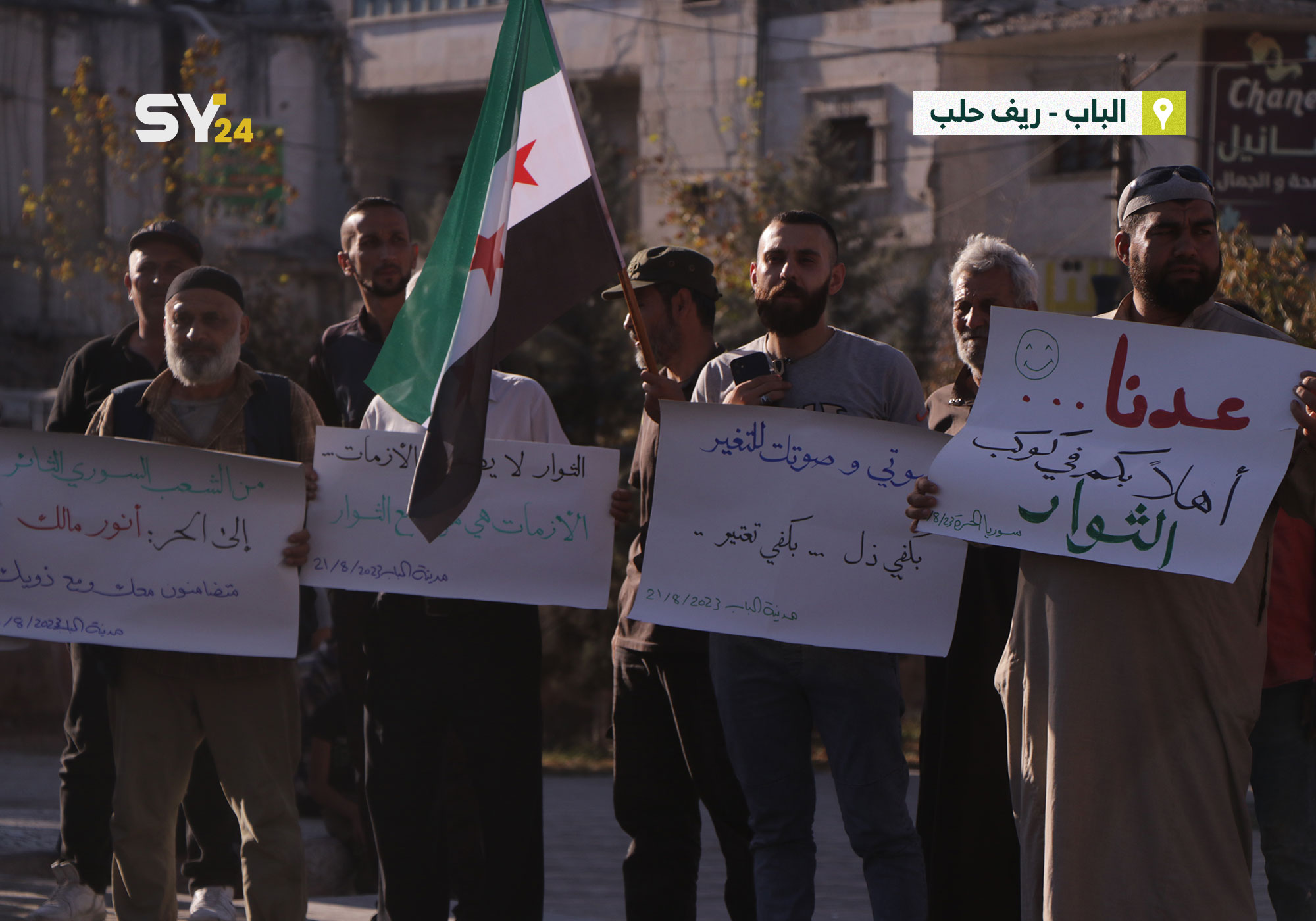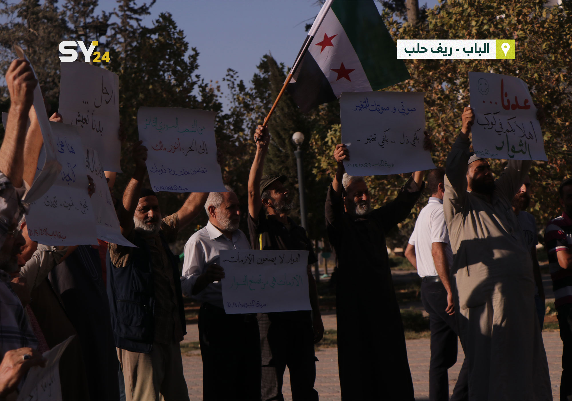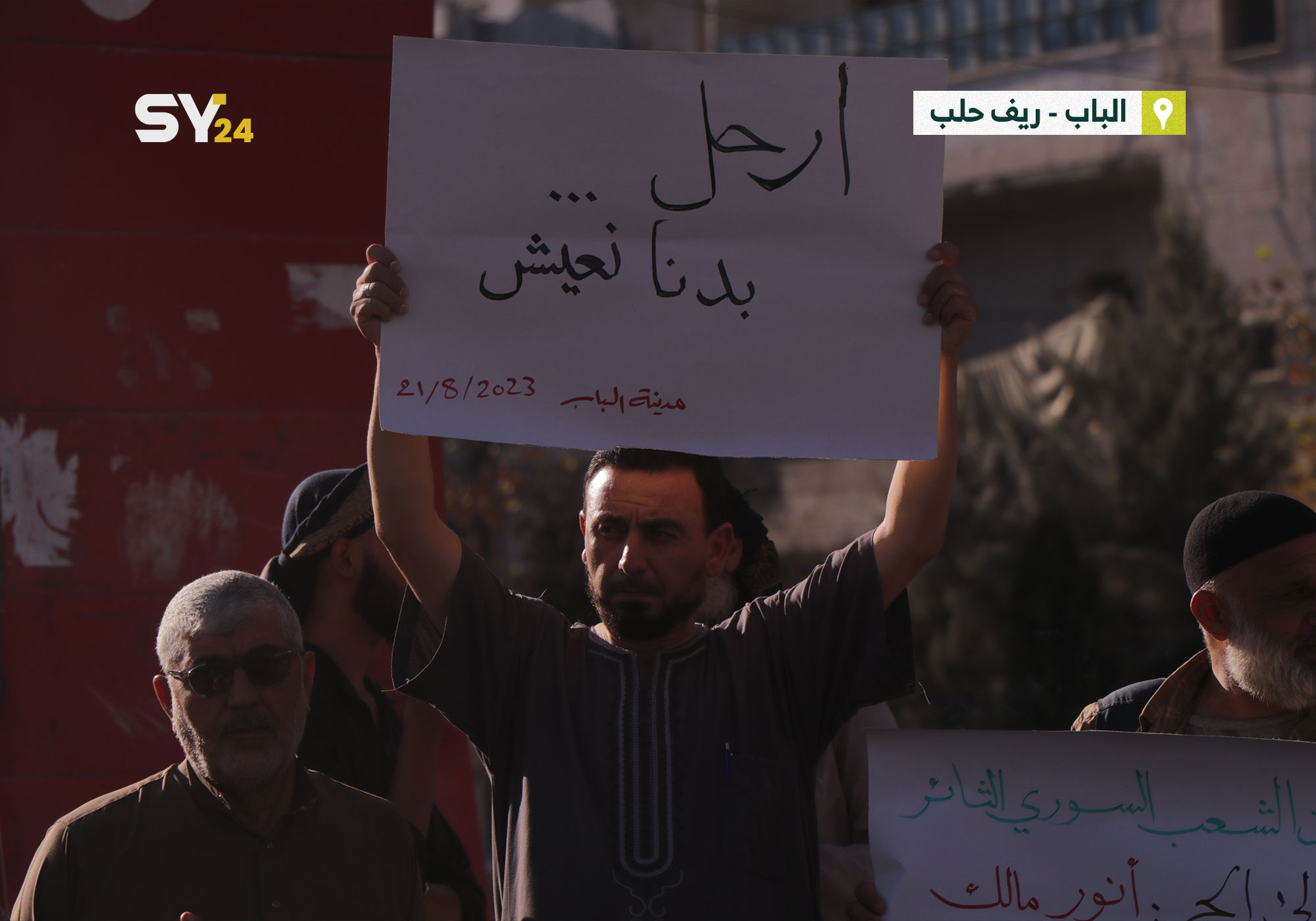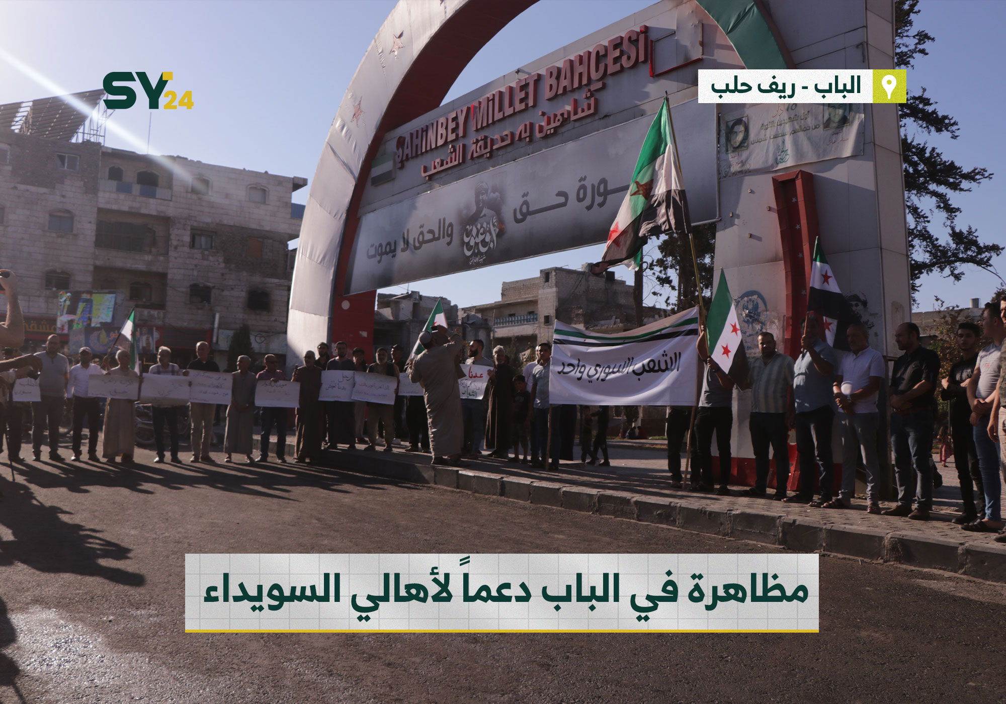 مظاهرة في مدينة الباب بريف حلب دعماً للمظاهرات المناهضة للنظام السوري في السويداء ودرعا