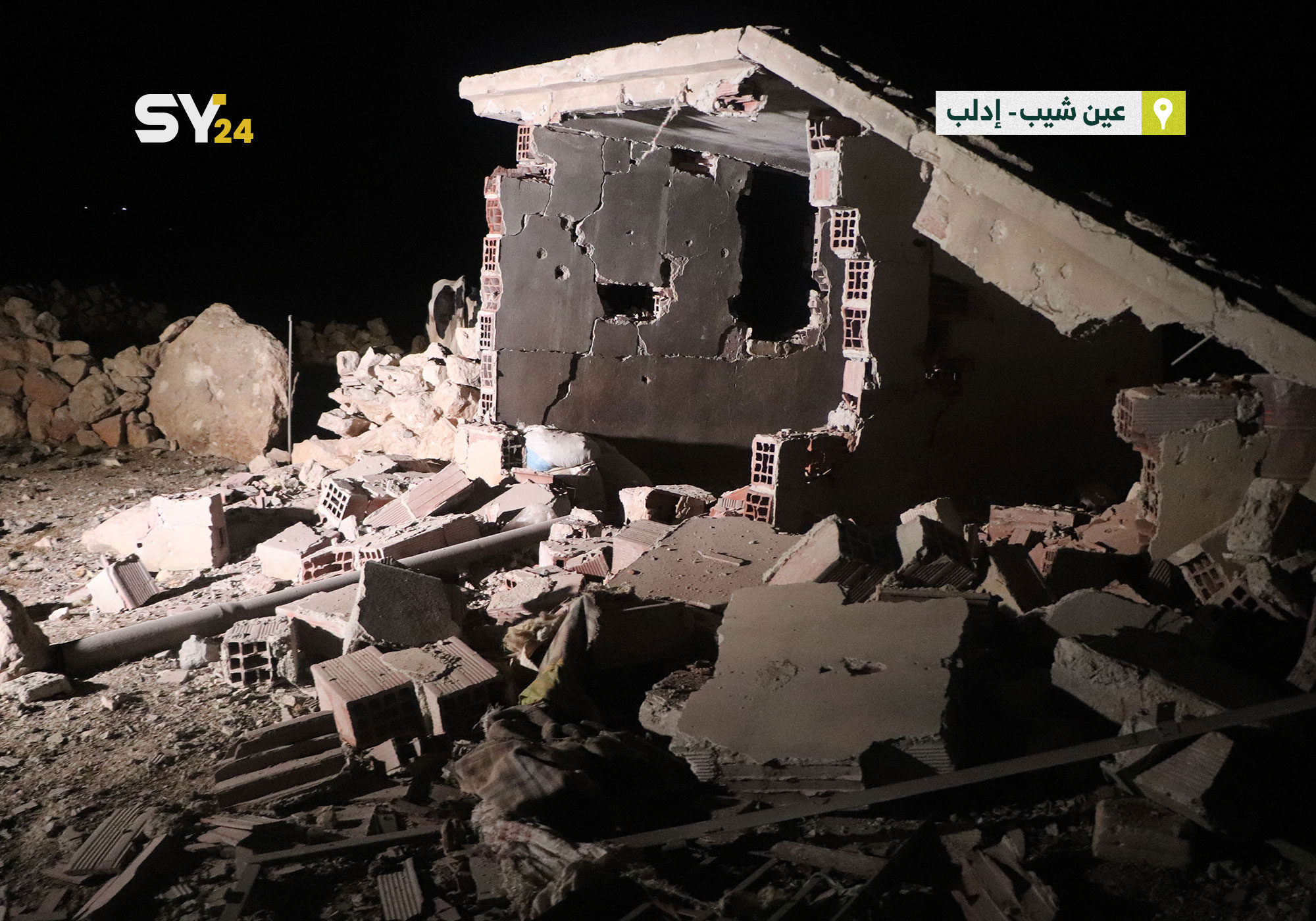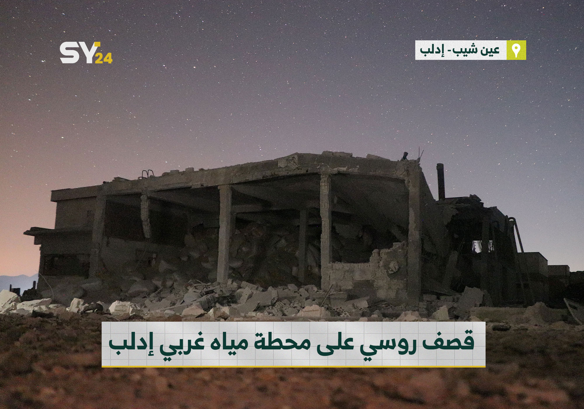 صور ليلية لمحطة المياه في إدلب التي تعرض للقصف من قبل طائرة روسية، ما أسفر عن مقتل وجرح مدنيين من عائلة واحدة.
