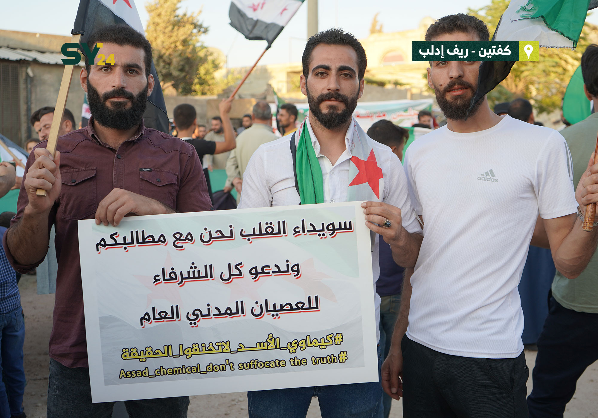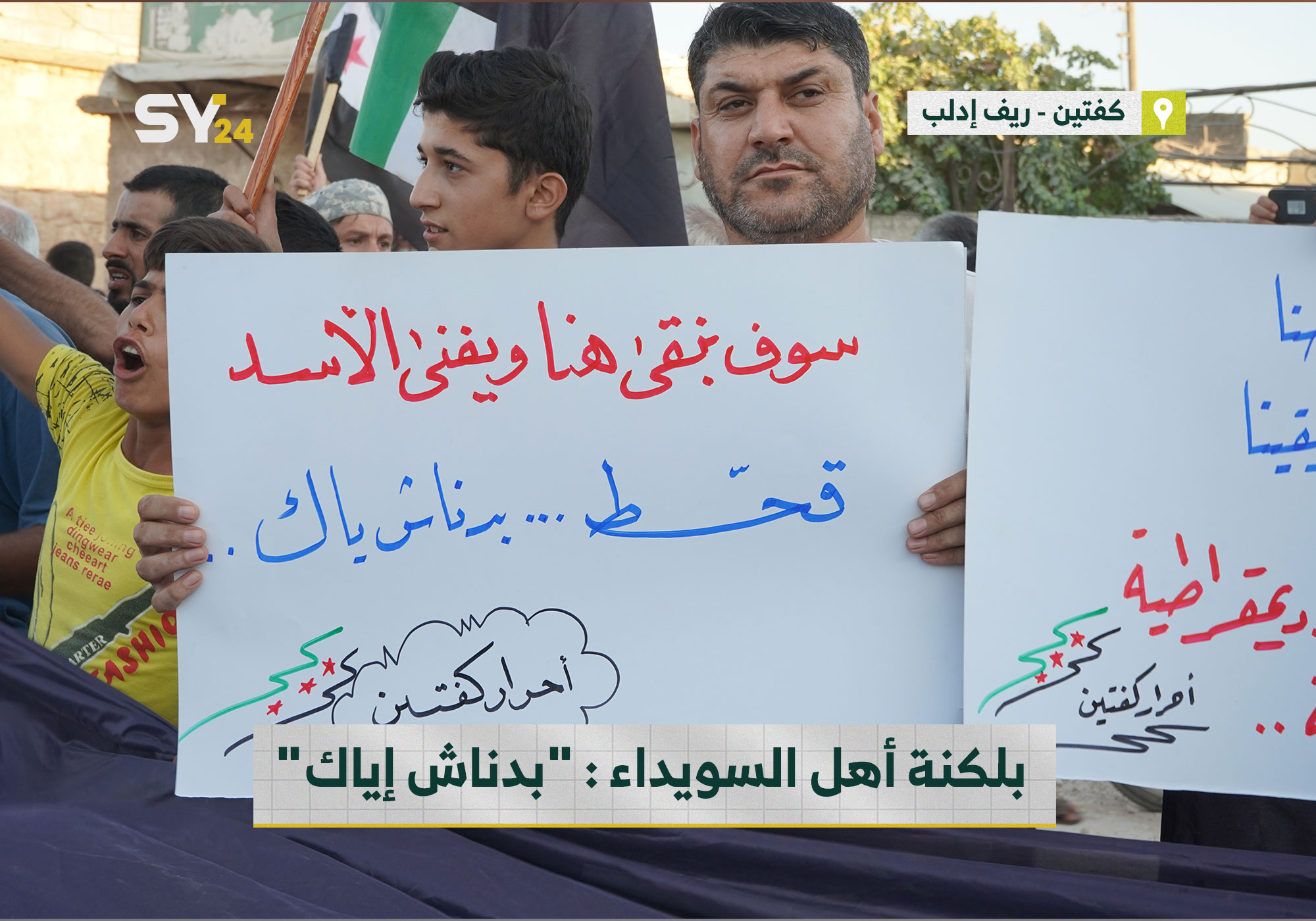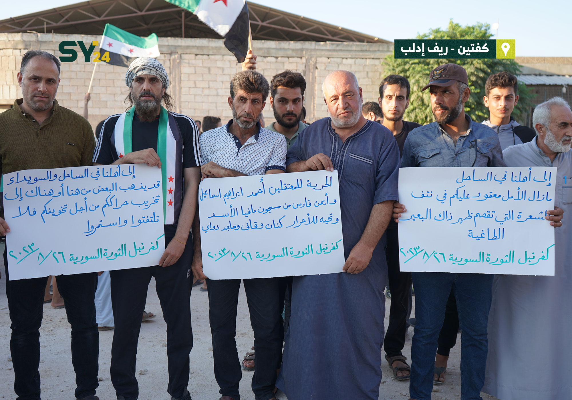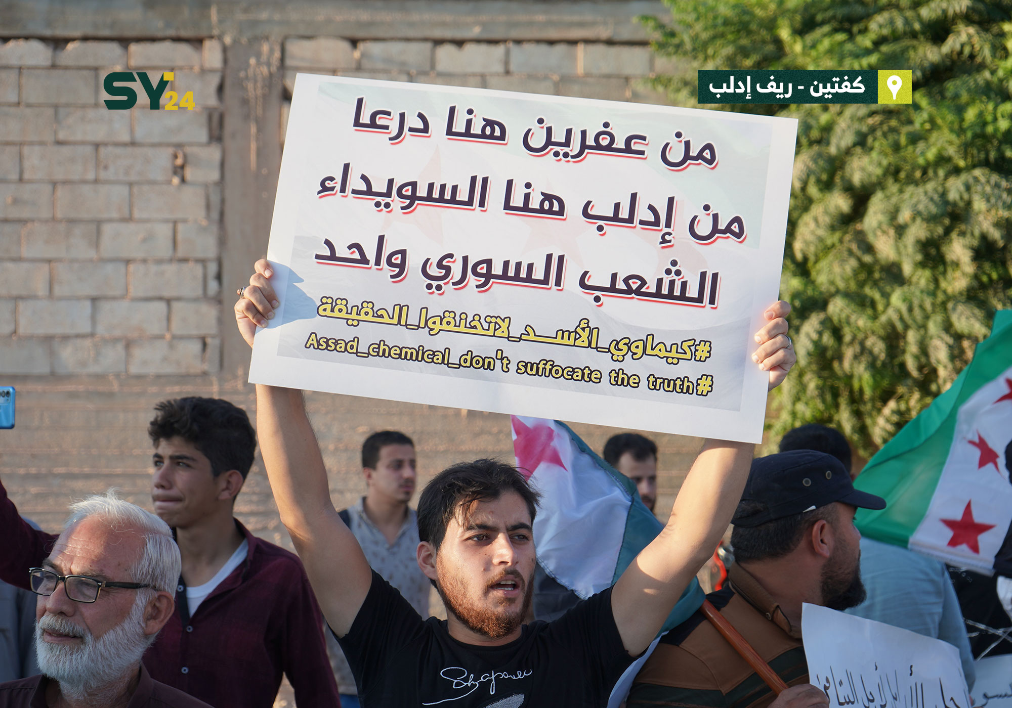 مظاهرة في بلدة كفتين بريف إدلب تضامناً مع السويداء ودرعا