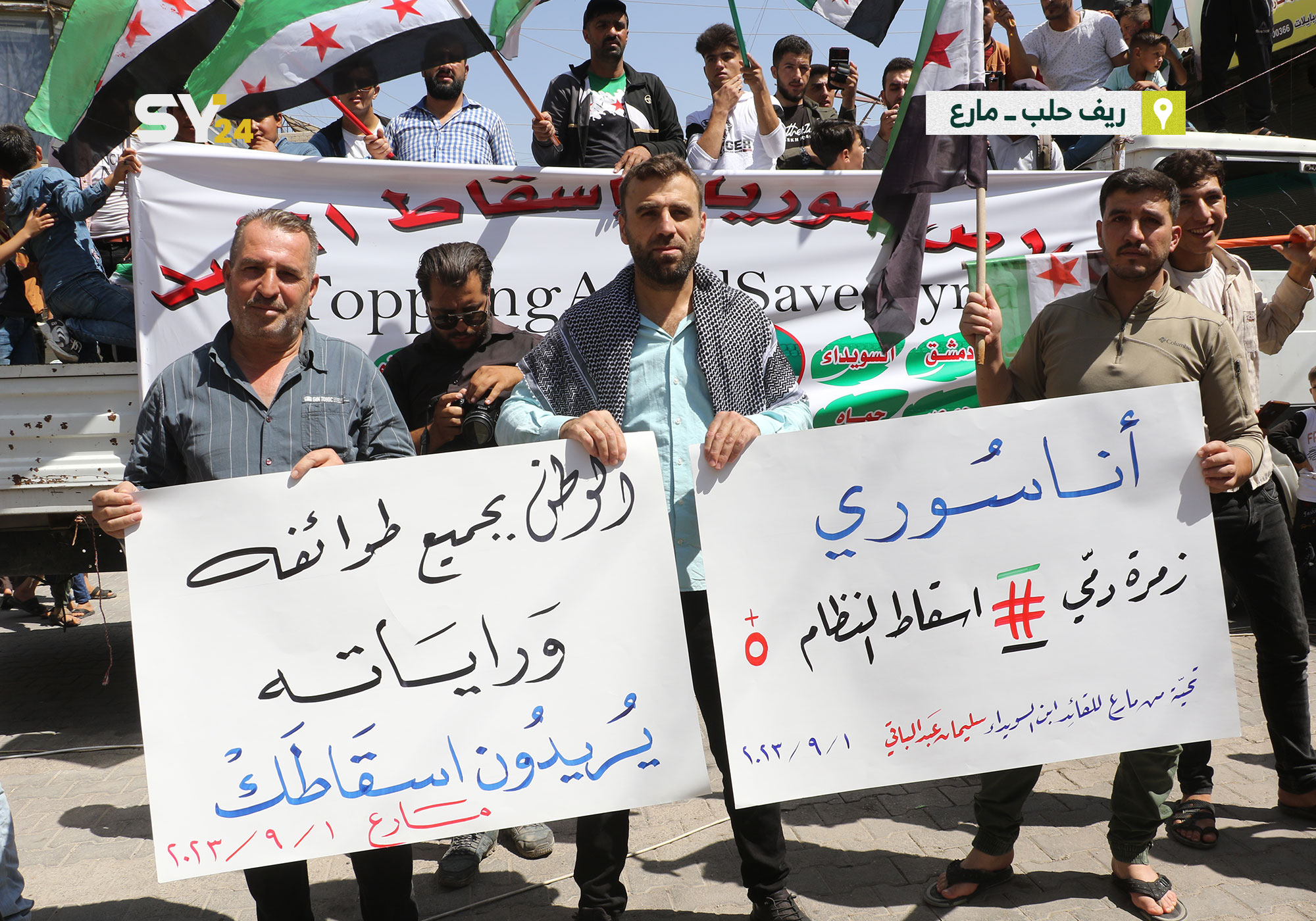 مظاهرات ضخمة في ريف حلب تضامنًا مع الاحتجاجات في السويداء