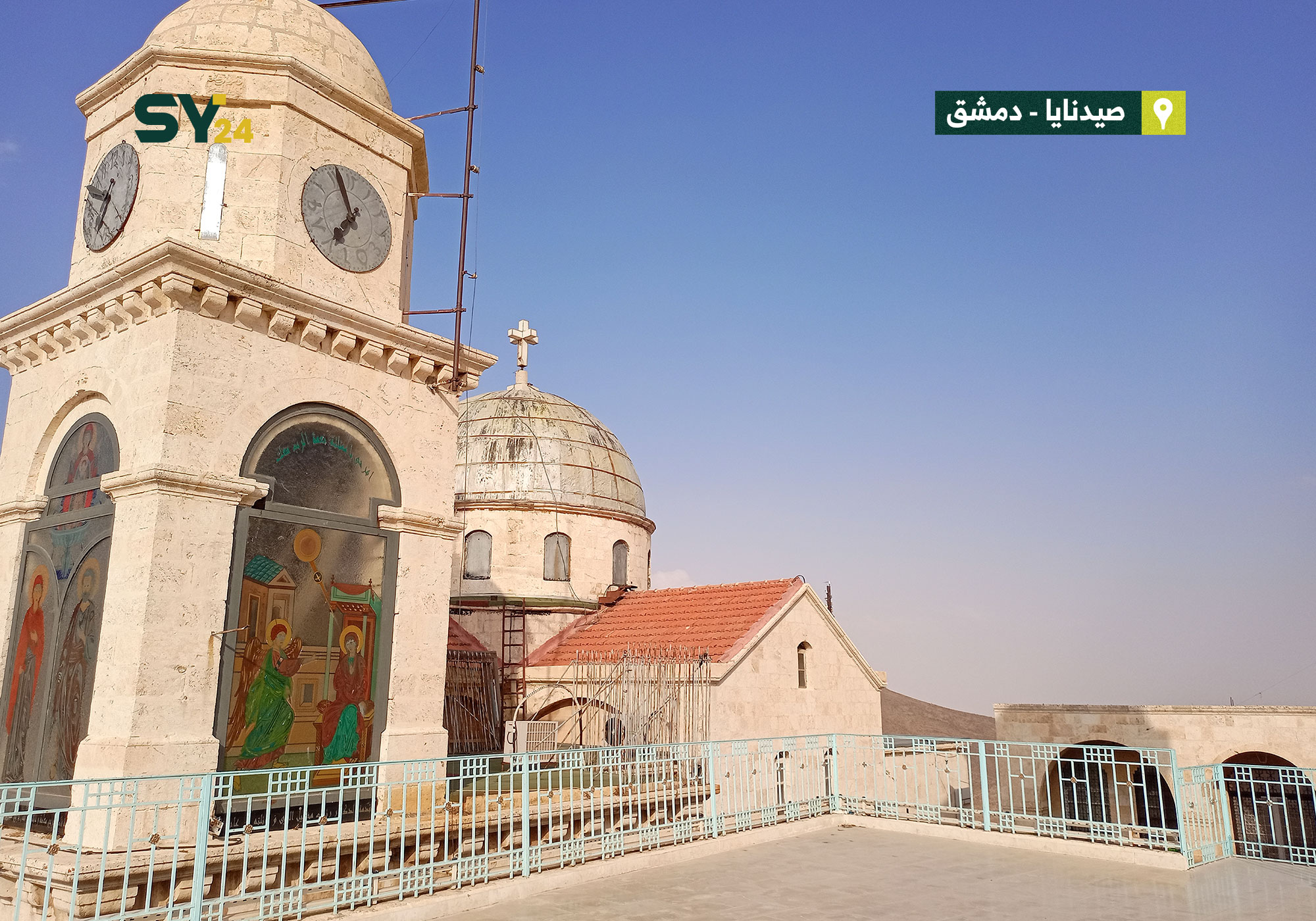 جولة في دير سيدة صيدنايا الذي يقع في أعلى قمم بلدة صيدنايا وقد تم إنجاز هذا الدير عام 547 ومورست فيه الطقوس الدينية منذ القرن الخامس الميلادي.