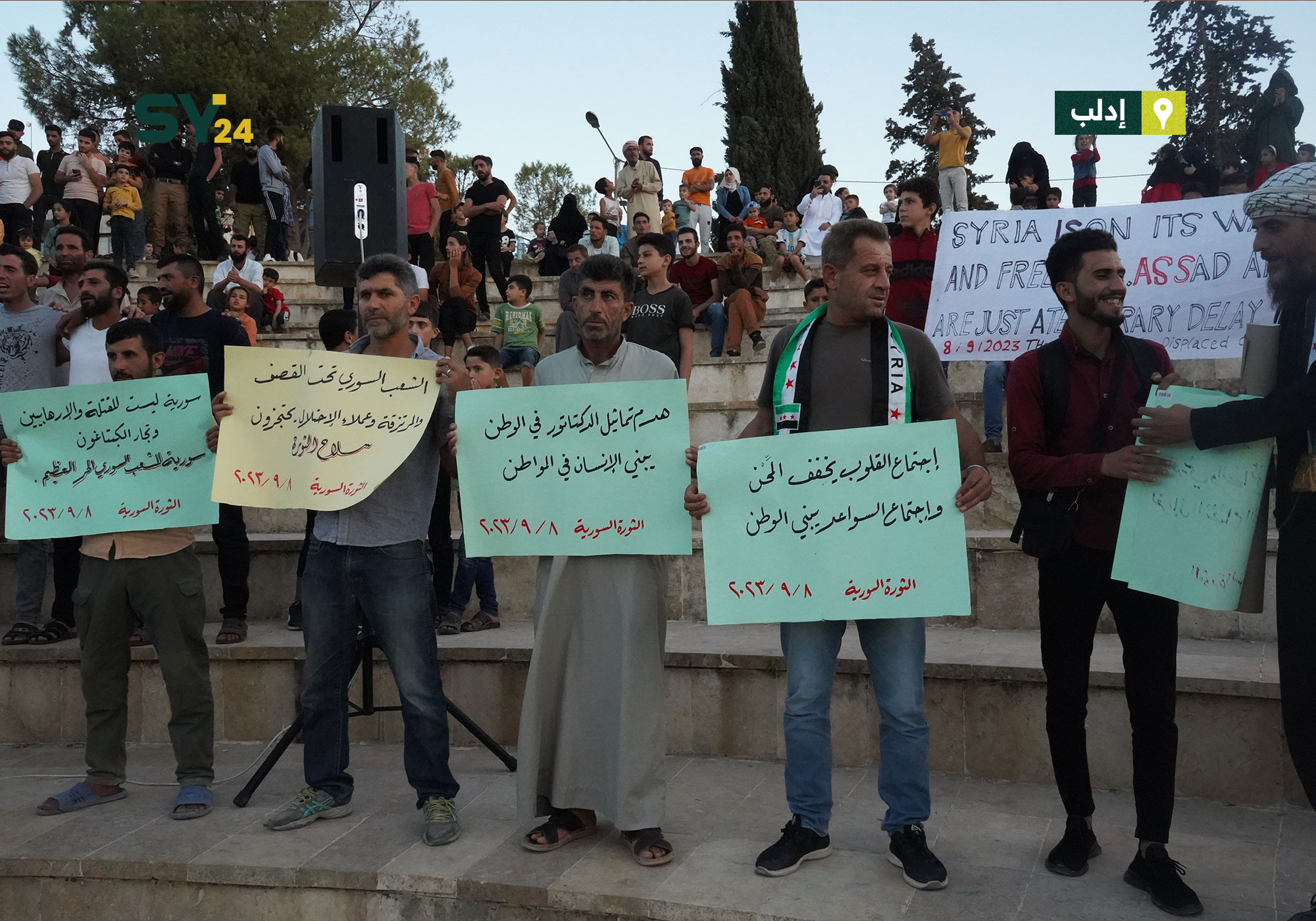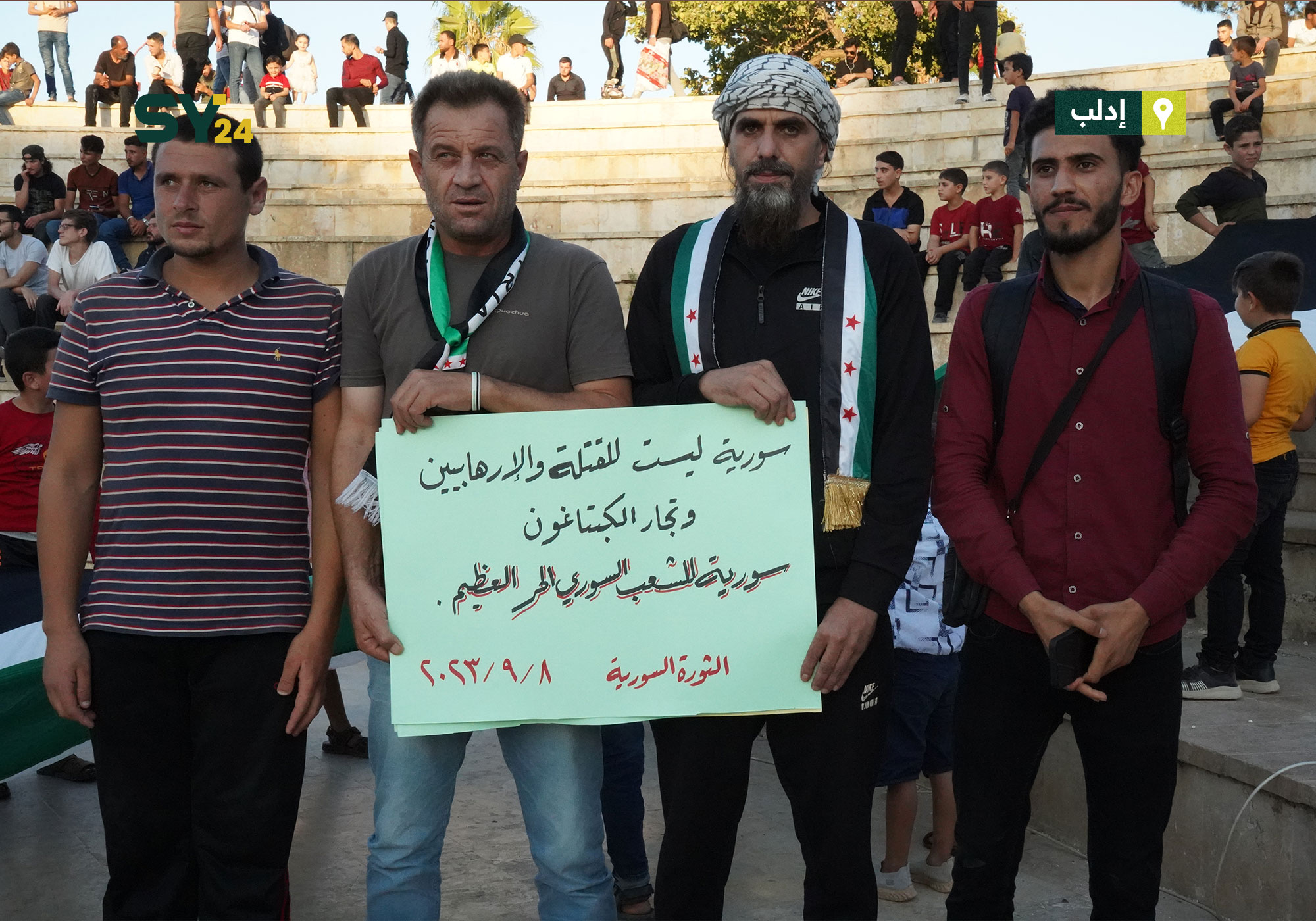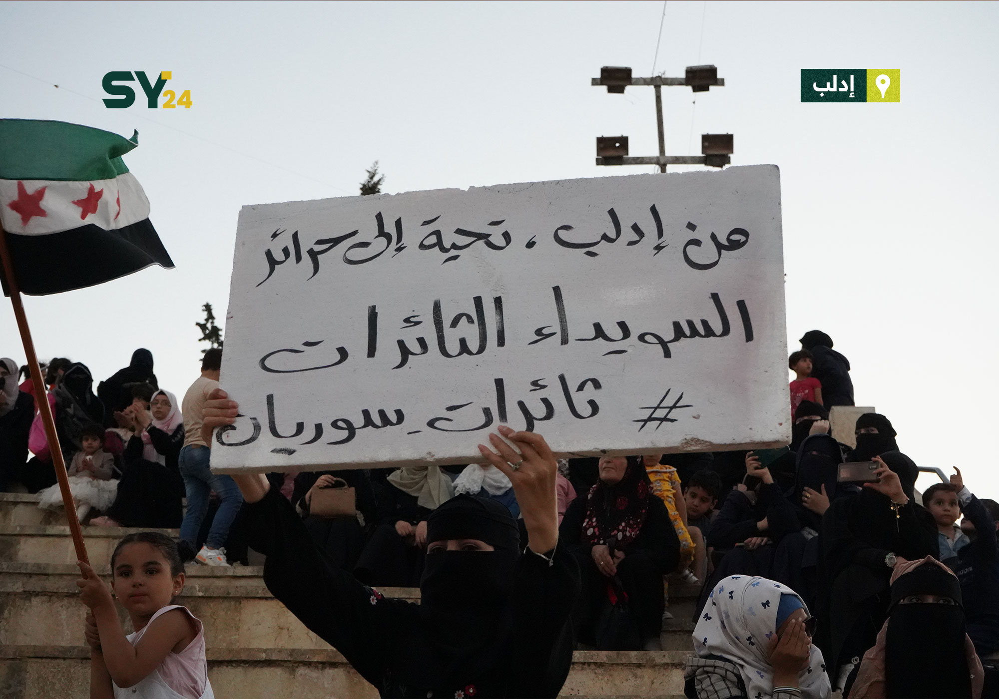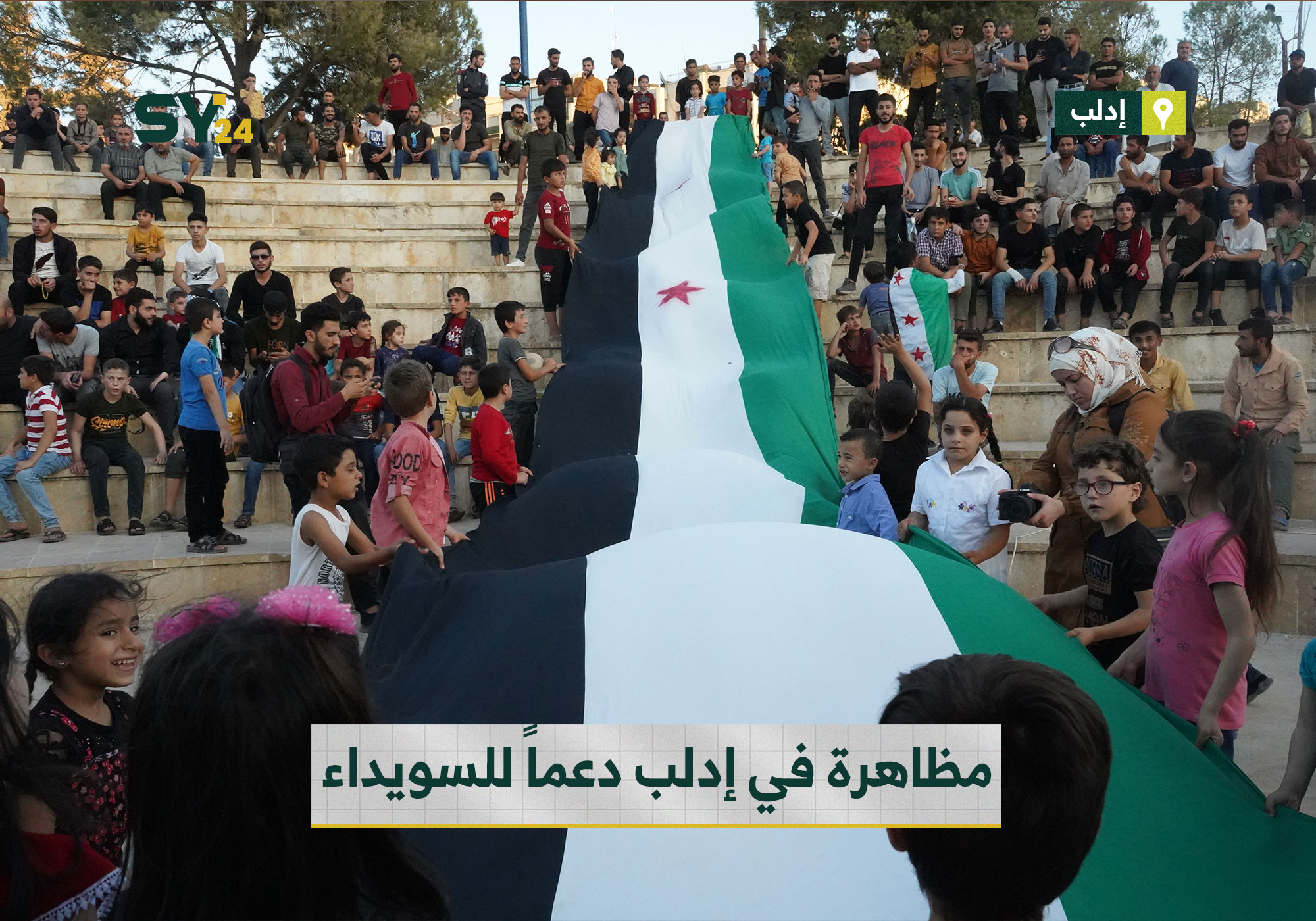 من مظاهرة مدينة إدلب يوم أمس دعمًا للحراك في الجنوب السوري
