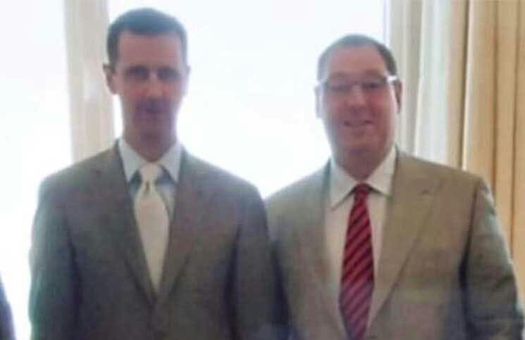 كما نشر الإعلامي صورة لرئيس النظام السوري مع المسؤول الإسرائيلي “نتان جيكبسون”، معلقاً عليها: ”حجاج الدولة الإسرائيلية لا يتوقفون عن التوافد إلى قصور الحكام العرب، وهذه المرة سأعرض لكم صورة بقصر حكيم العيون بشار حافظ الأسد في دمشق، وهذا الرفيق (بشار الأسد) مع المسؤول الإسرائيلي (نتان جيكبسون) في عمق دمشق”:
