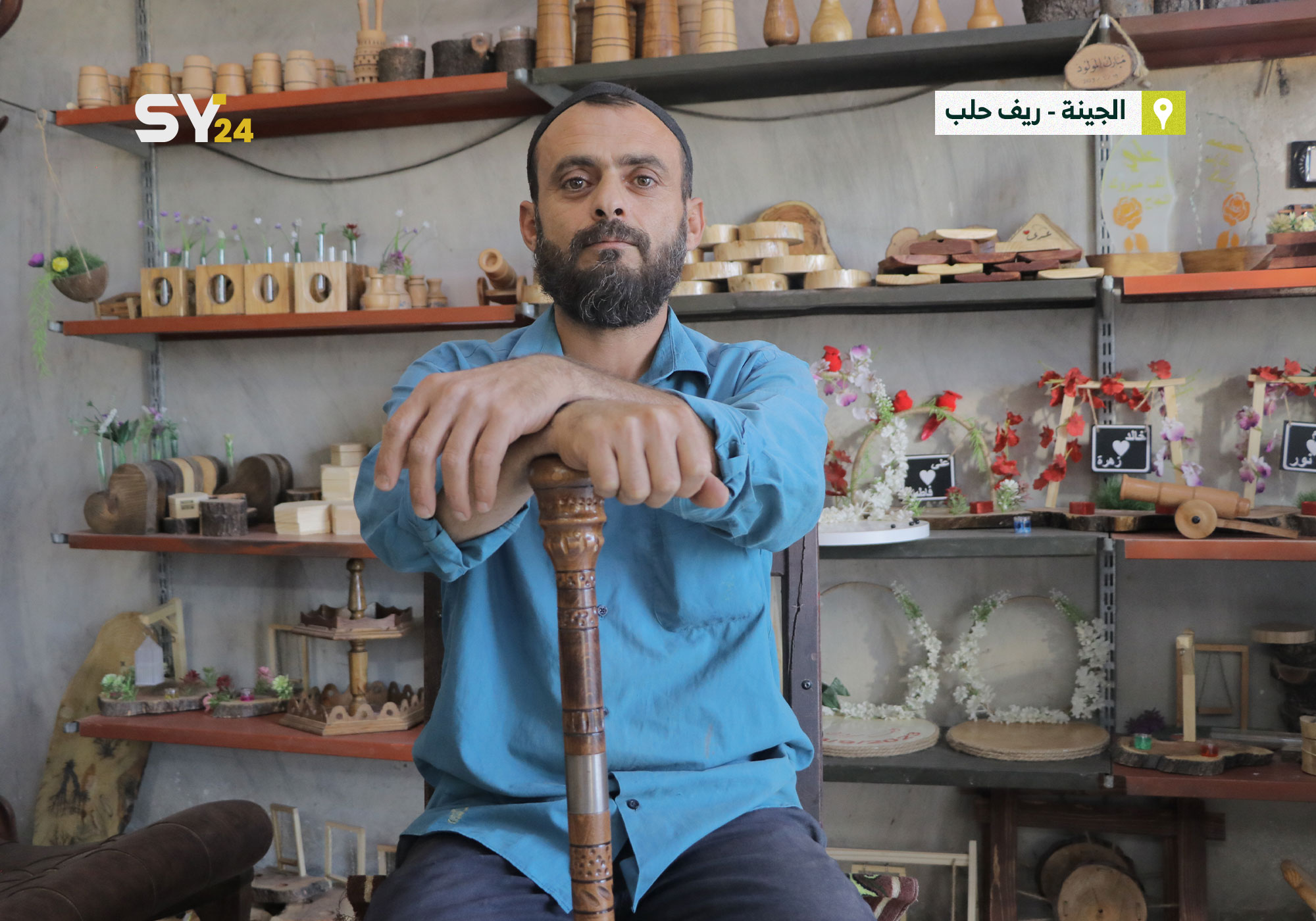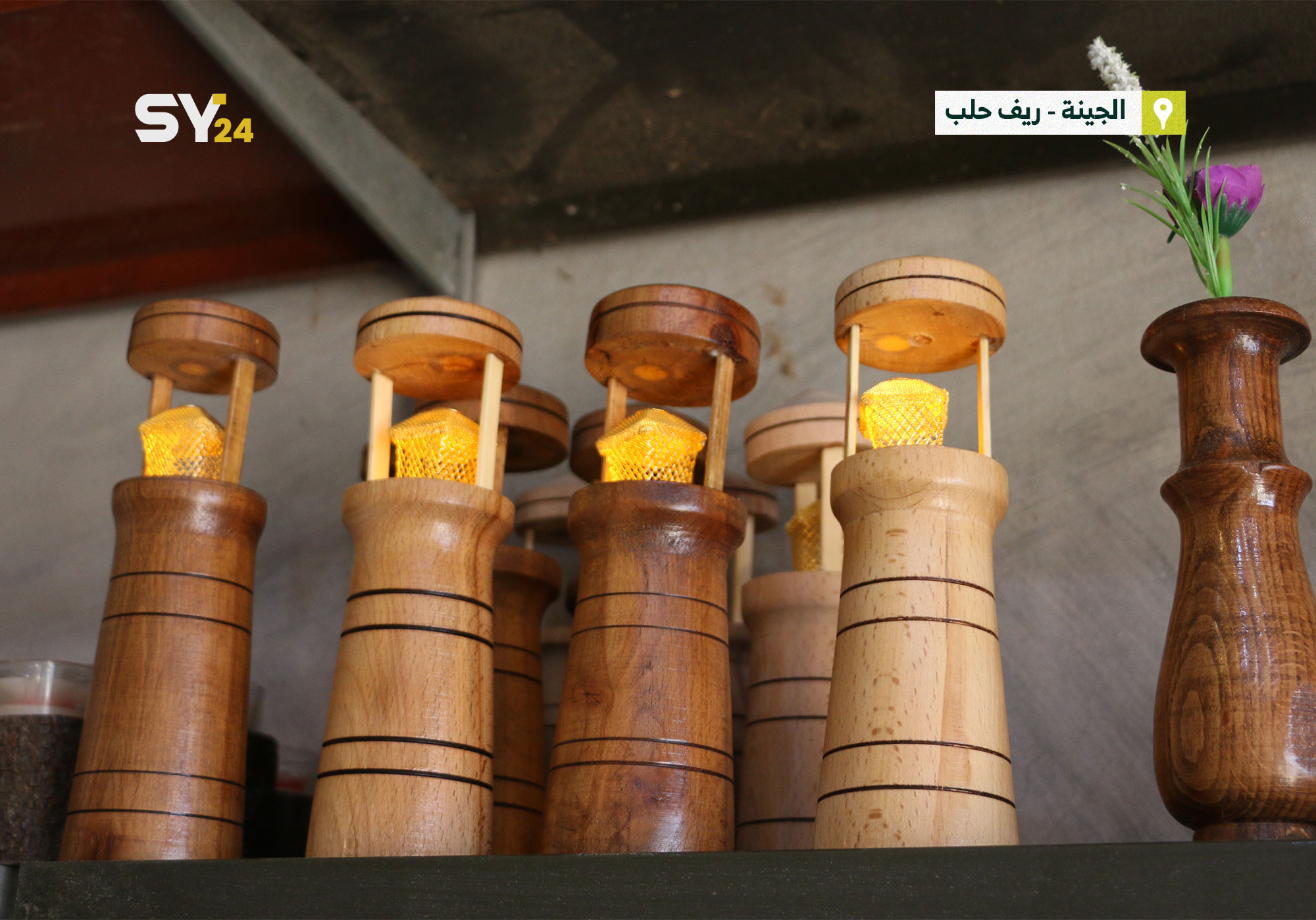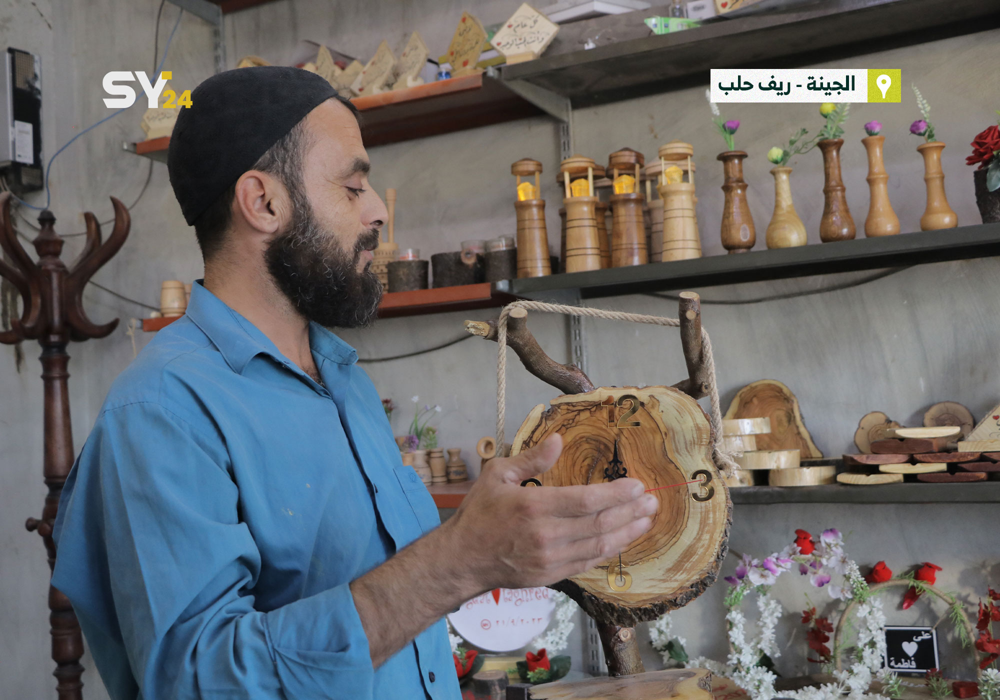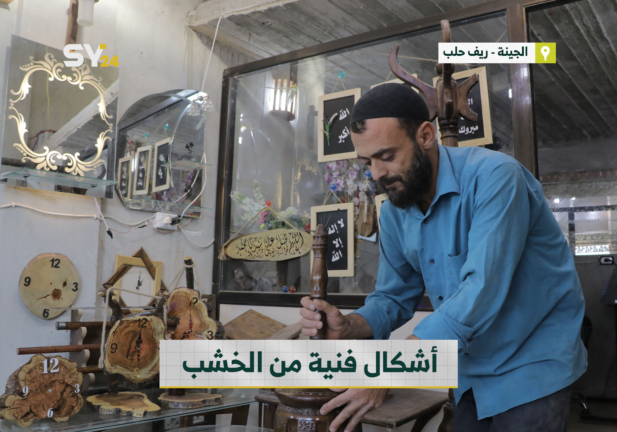 محمد الحسن نجار سوري يحول القطع الخشبية إلى قطع فنية في ورشته بريف حلب