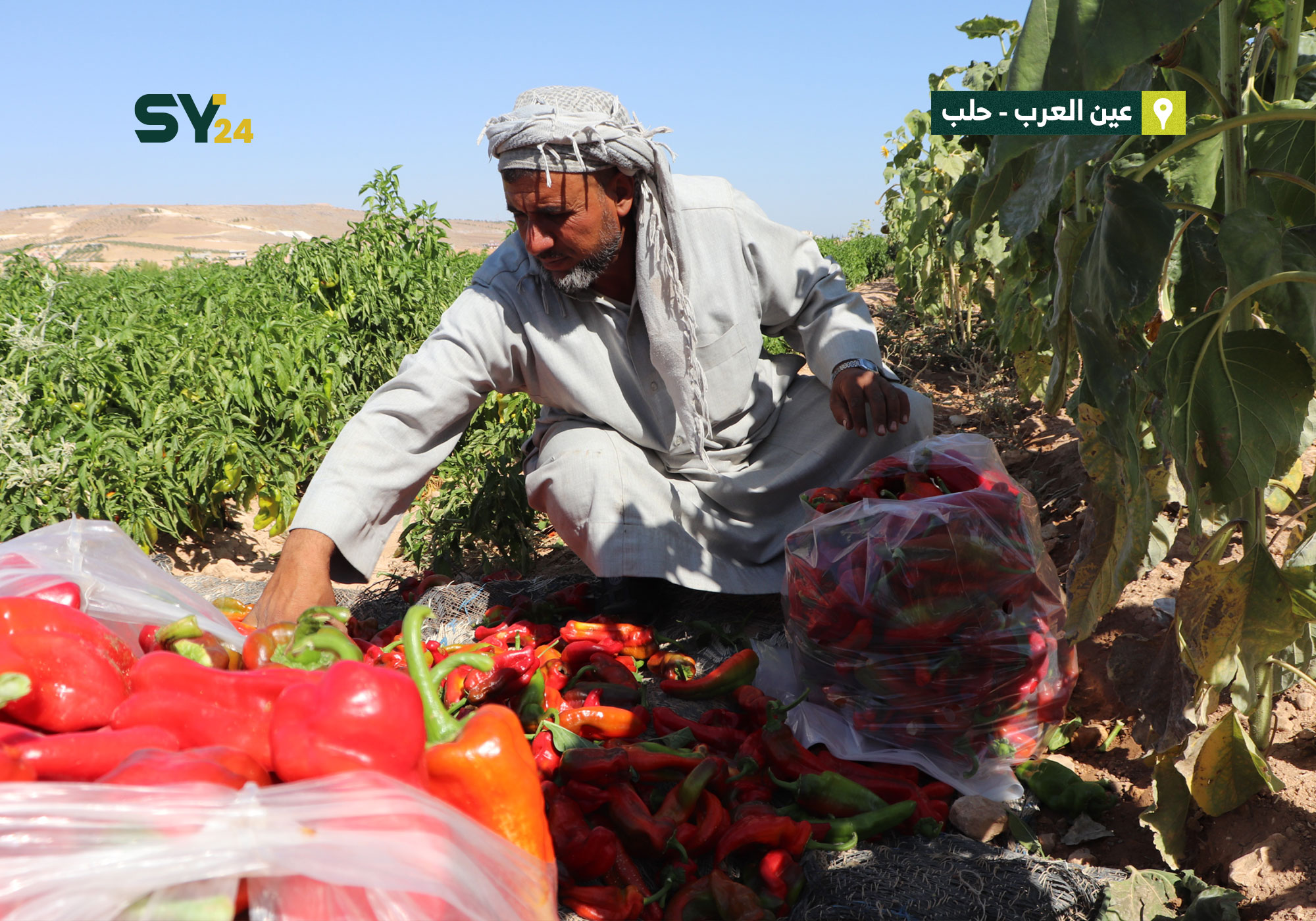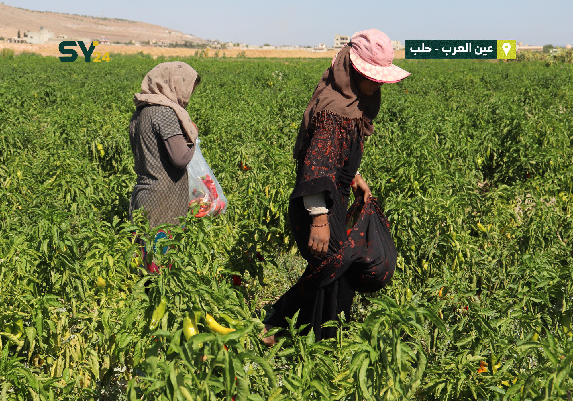 قطاف الفلفل الأحمر في منطقة عين العرب بريف حلب