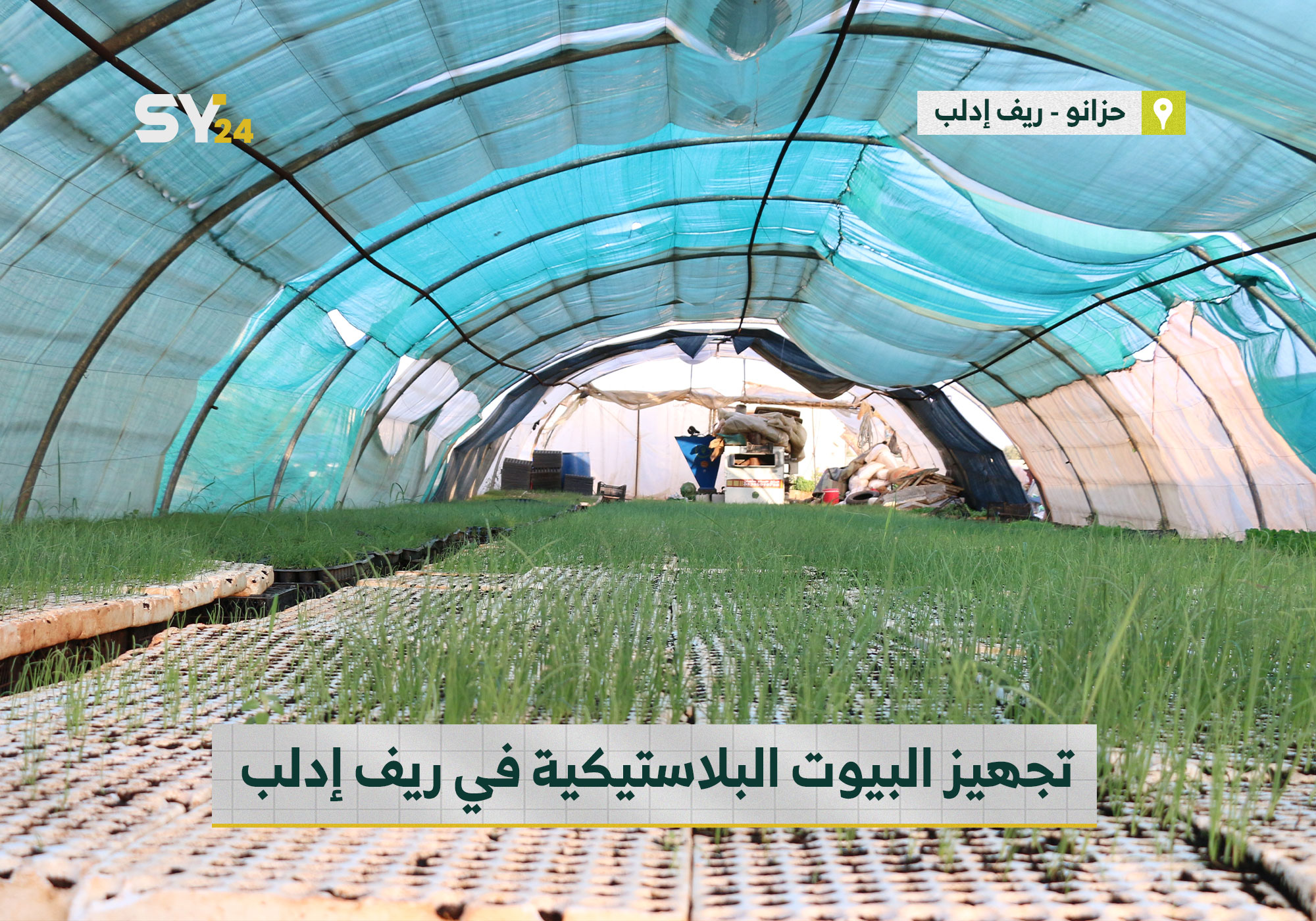 أهالي ريف حماة المهجرين يجهزون البيوت البلستيكية في ريف إدلب استعداداً للزراعة الخريفية