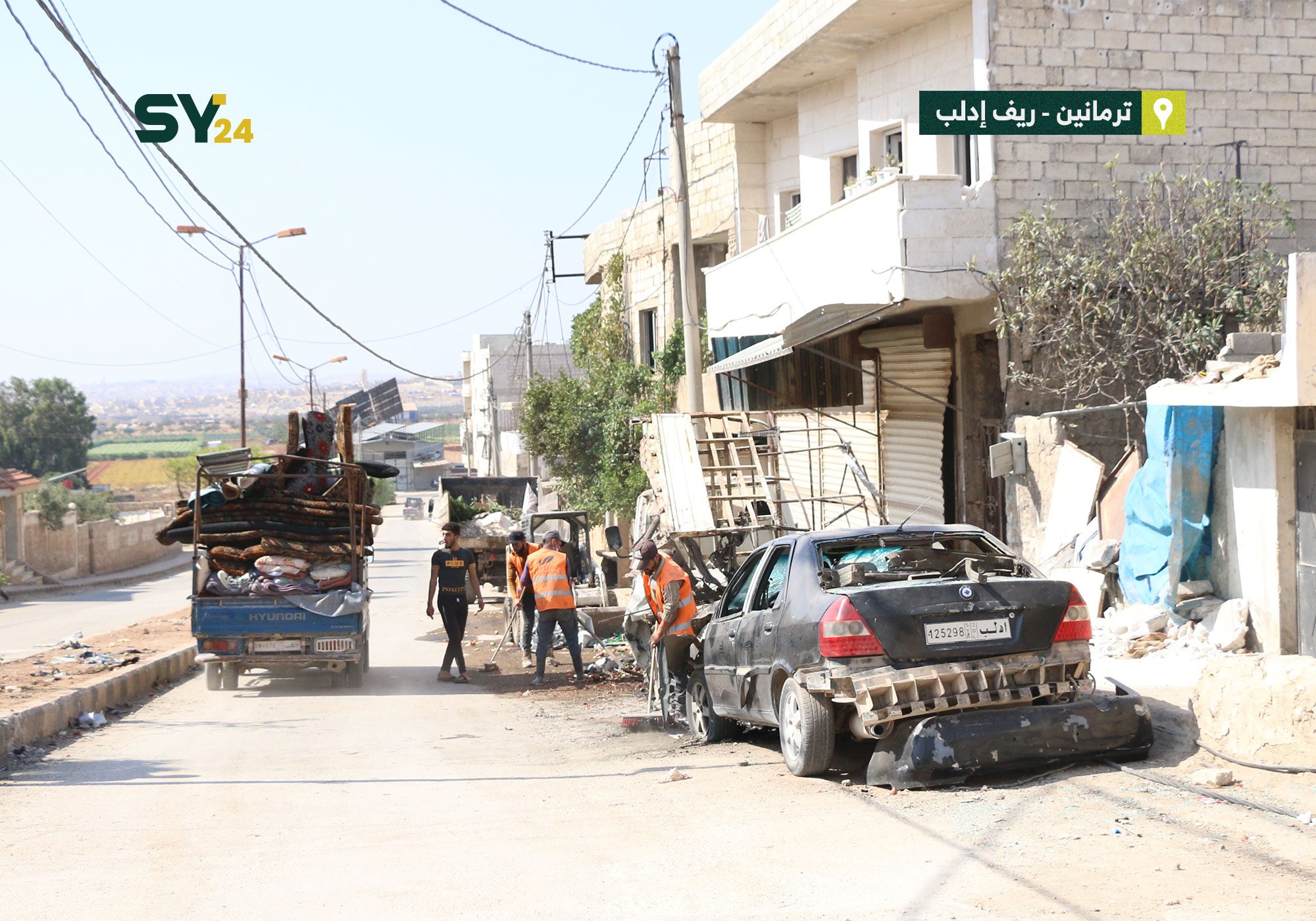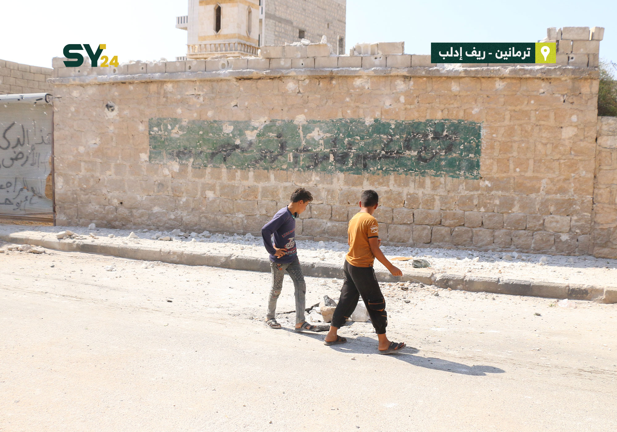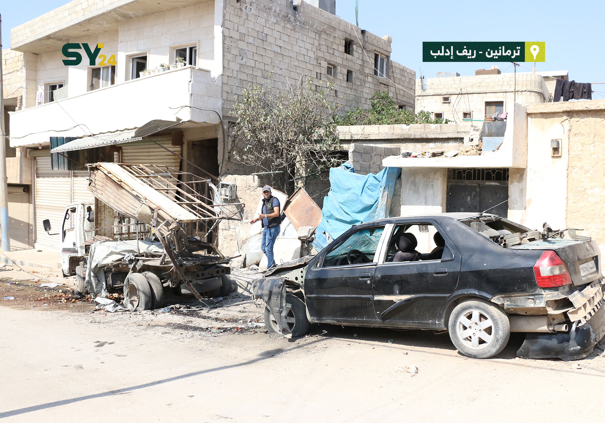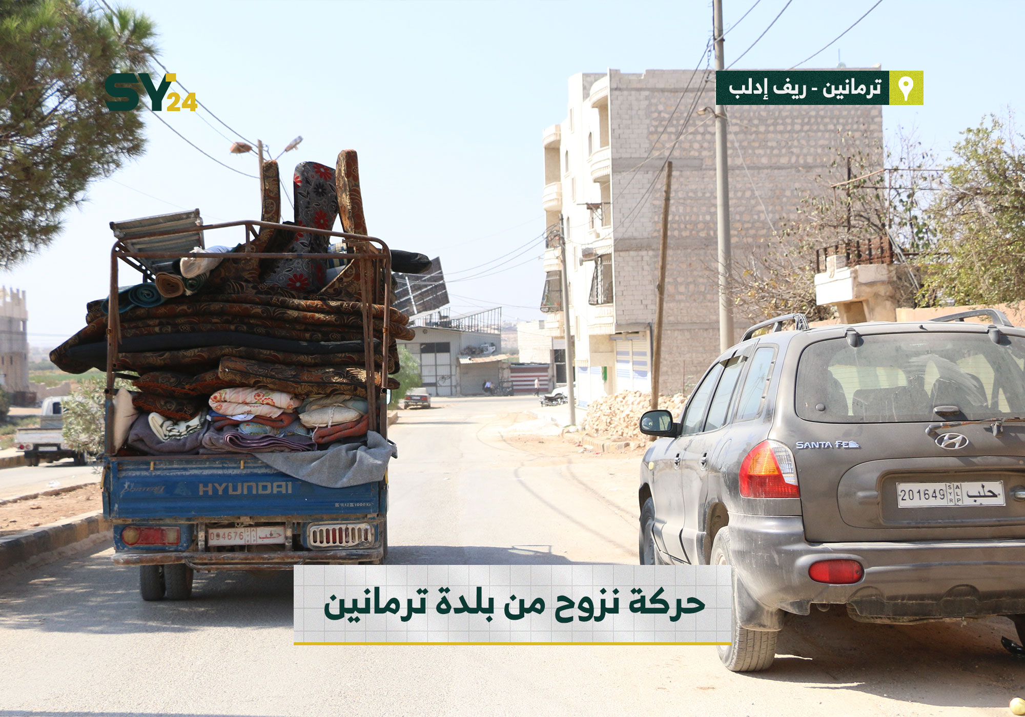 صور تظهر ما خلّفه قصف النظام السوري على بلدة ترمانين وحركة نزوح من البلدة