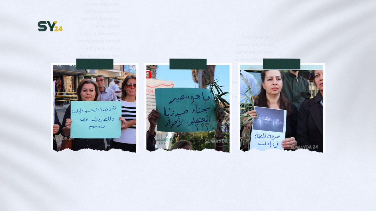 يستمر المحتجون في ساحة الكرامة وسط السويداء وفي ساحات أخرى من ريف المحافظة، بمحاولة صوت المعتقلين في سجون النظام السوري، إضافة إلى التنديد بحملة النظام العسكرية على منطقة إدلب.