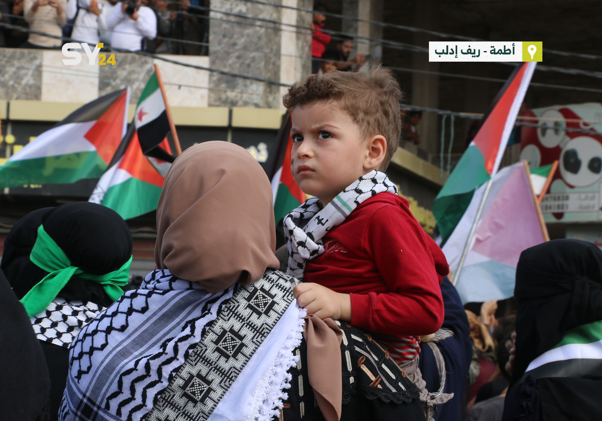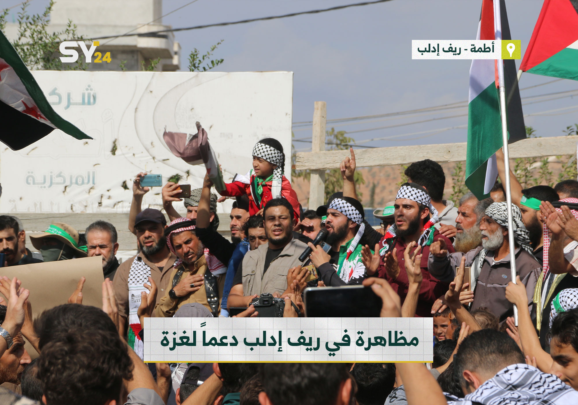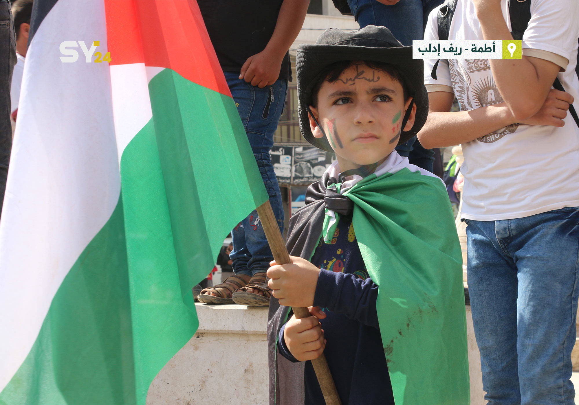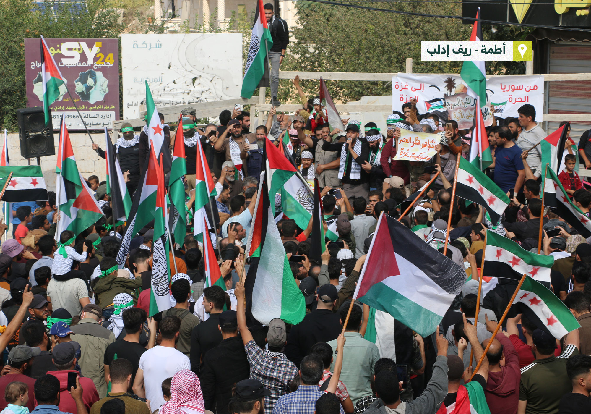 مظاهرة في بلدة أطمة بريف إدلب الشمالي تضامناً مع غزة