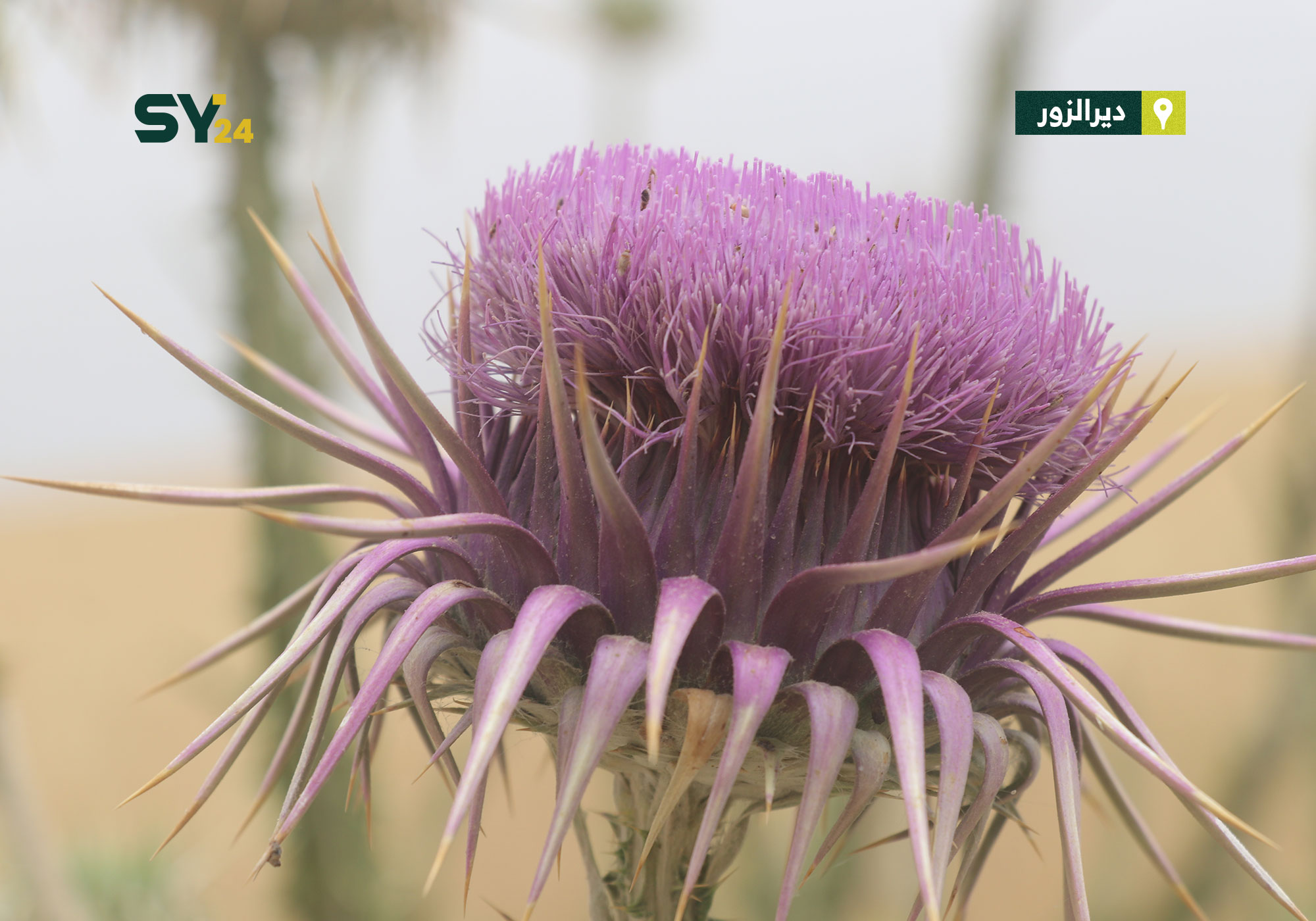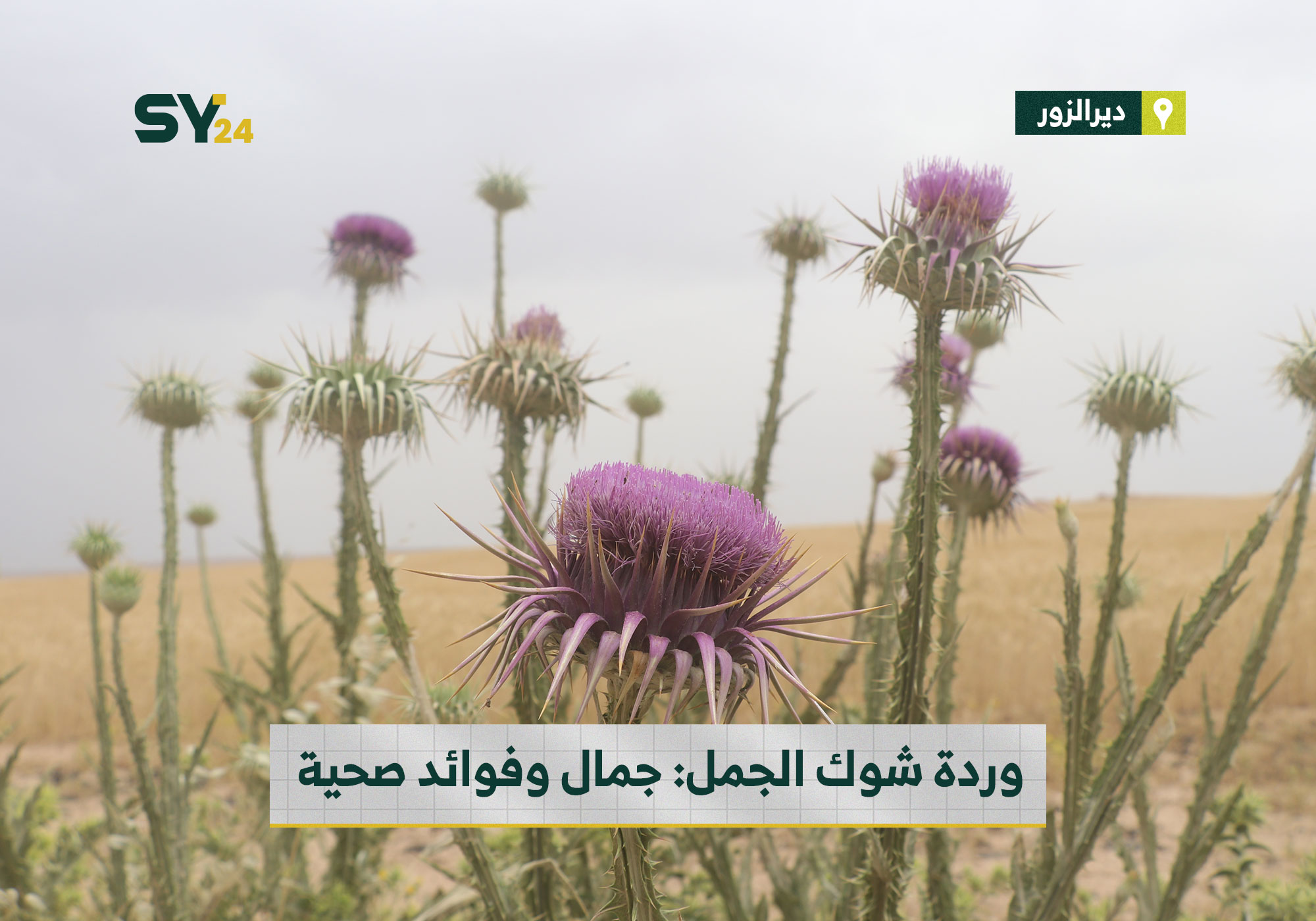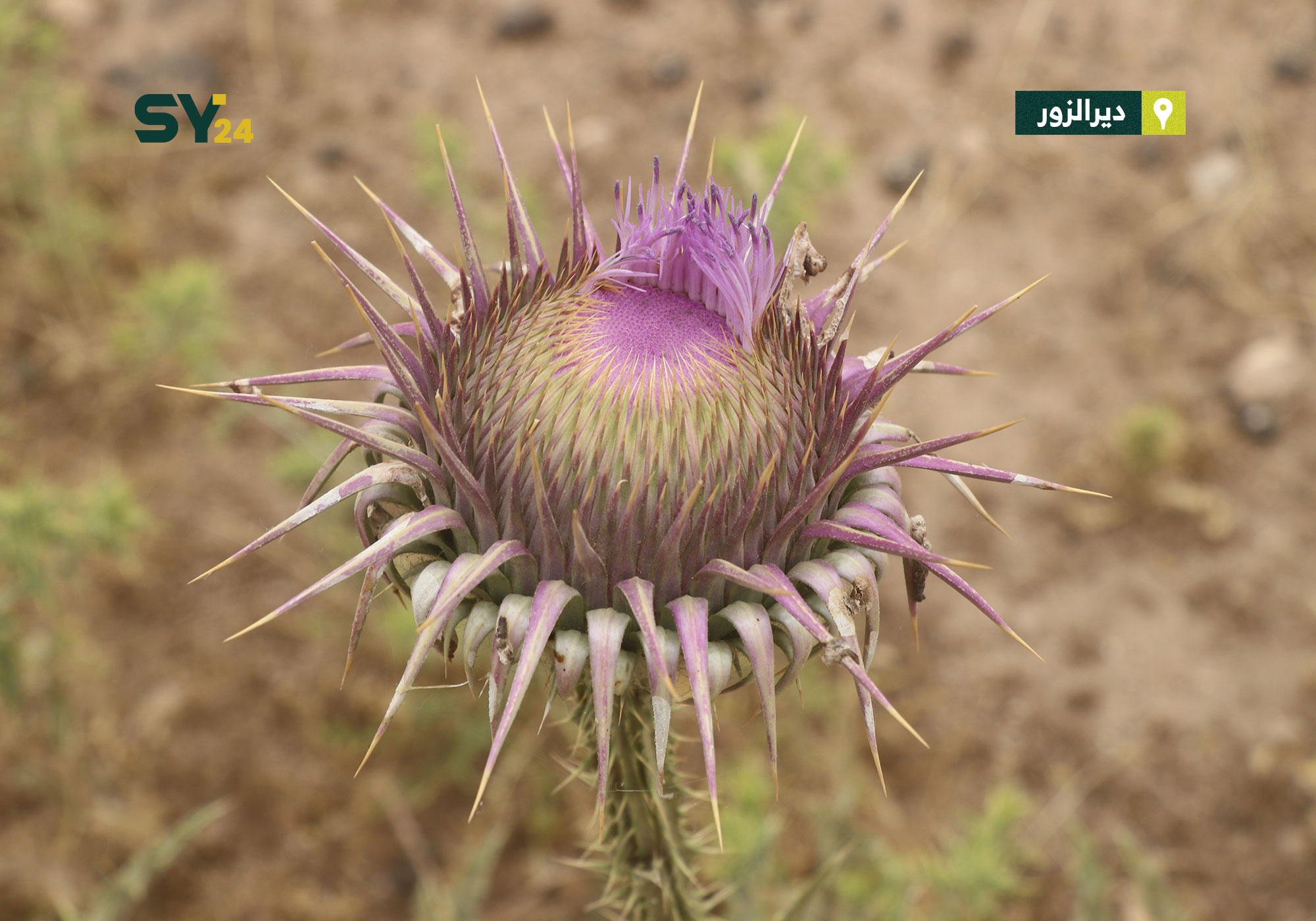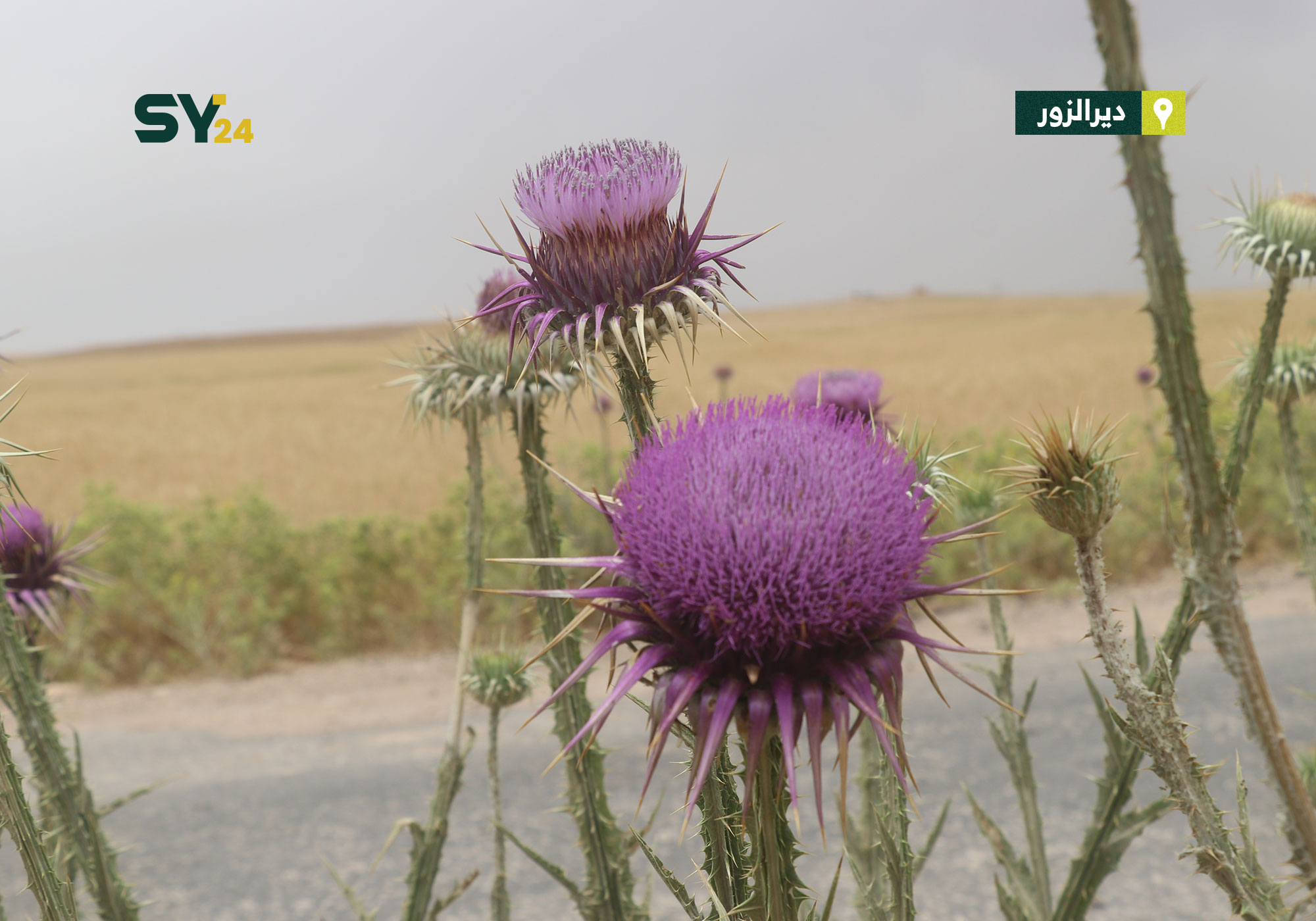 صور لوردة شوك الجمل التي تتميز بفوائدها الطبية وألوانها الزاهية في منطقة الكسرة بدير الزور.