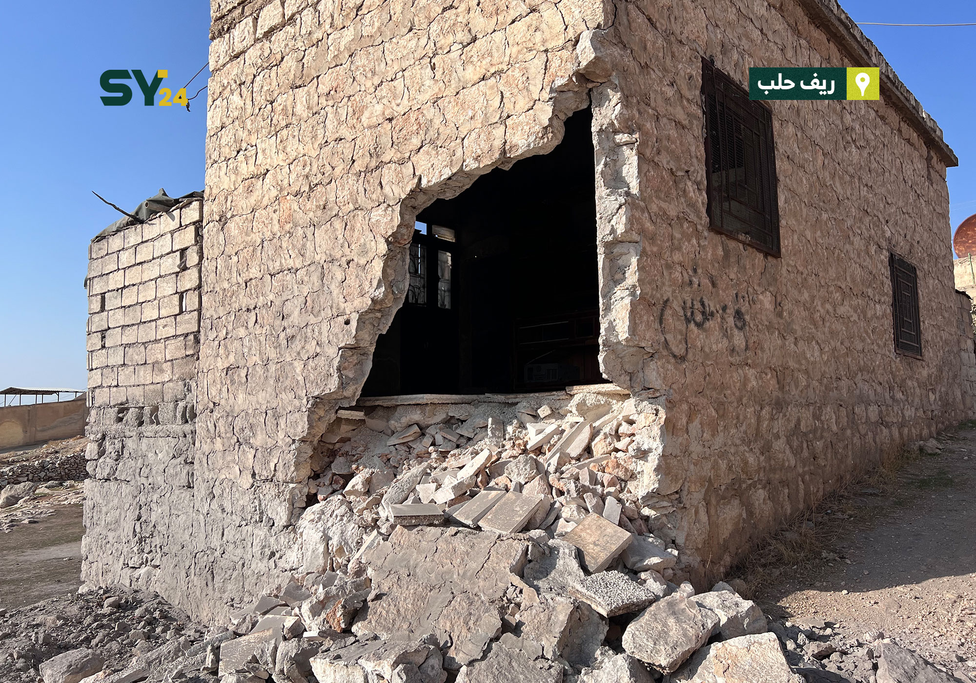 أضرار كبيرة تعرضت لها المدرسة الثانوية والأحياء السكنية في بلدة التوامة بريف حلب، جراء القصف الذي تعرضت له بالصواريخ الفراغية والقنابل الفوسفورية.