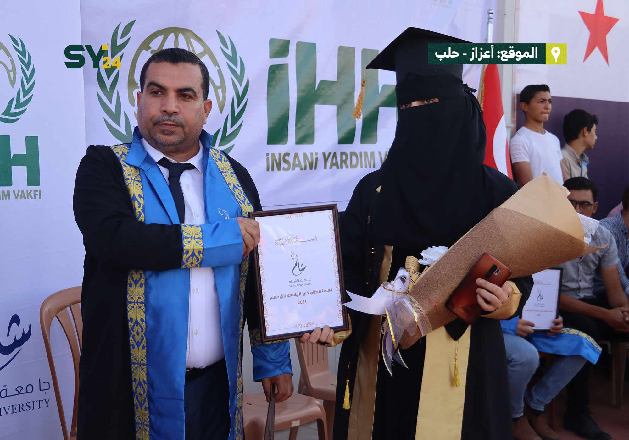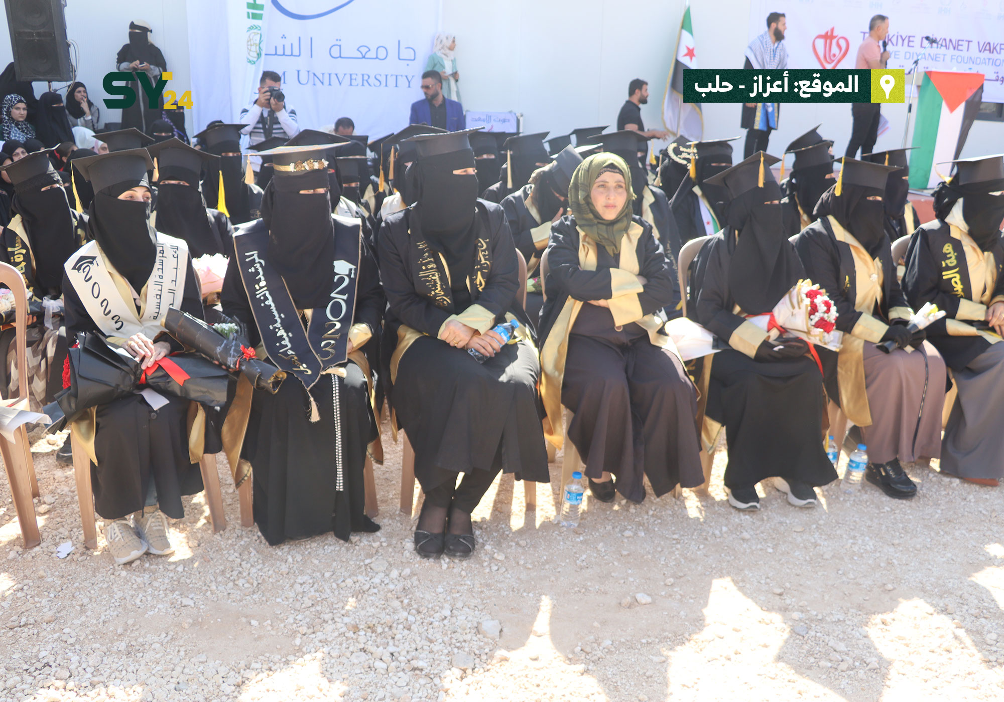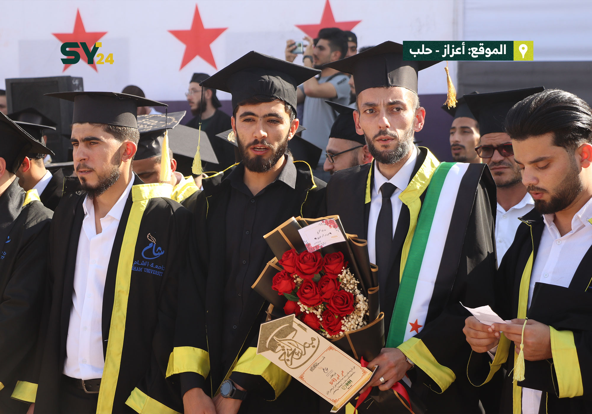 جامعة شام تحتفل بتخريج 239 طالبًا وطالبة في مدينة أعزاز بريف حلب الشمالي.