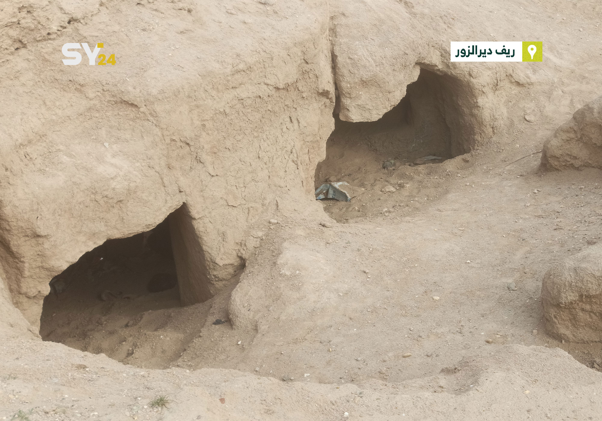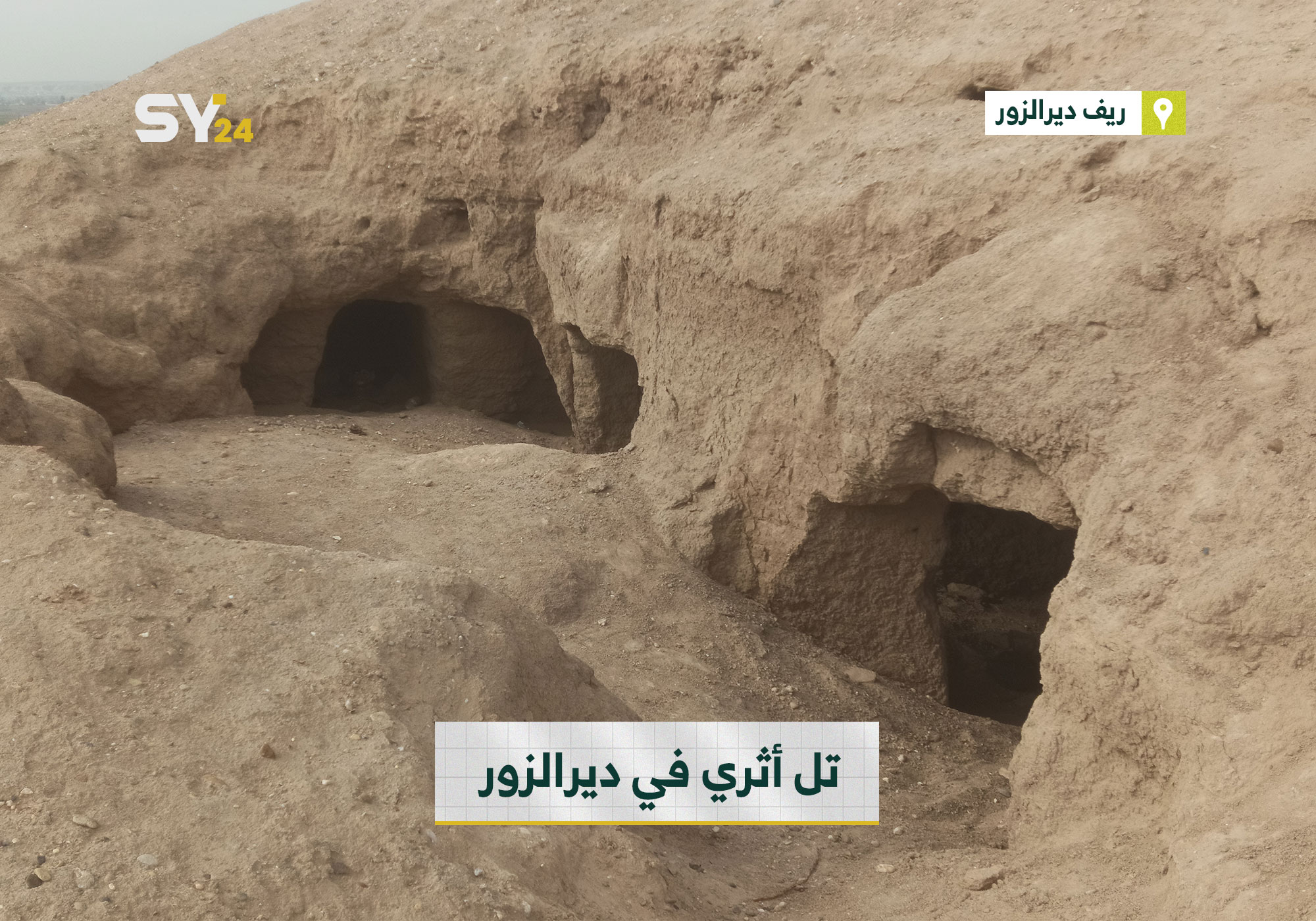 صور تظهر تل حوايج بومصعة الأثري في ريف ديرالزور، والذي تعرض للتخريب والنبش خلال السنوات الماضية.