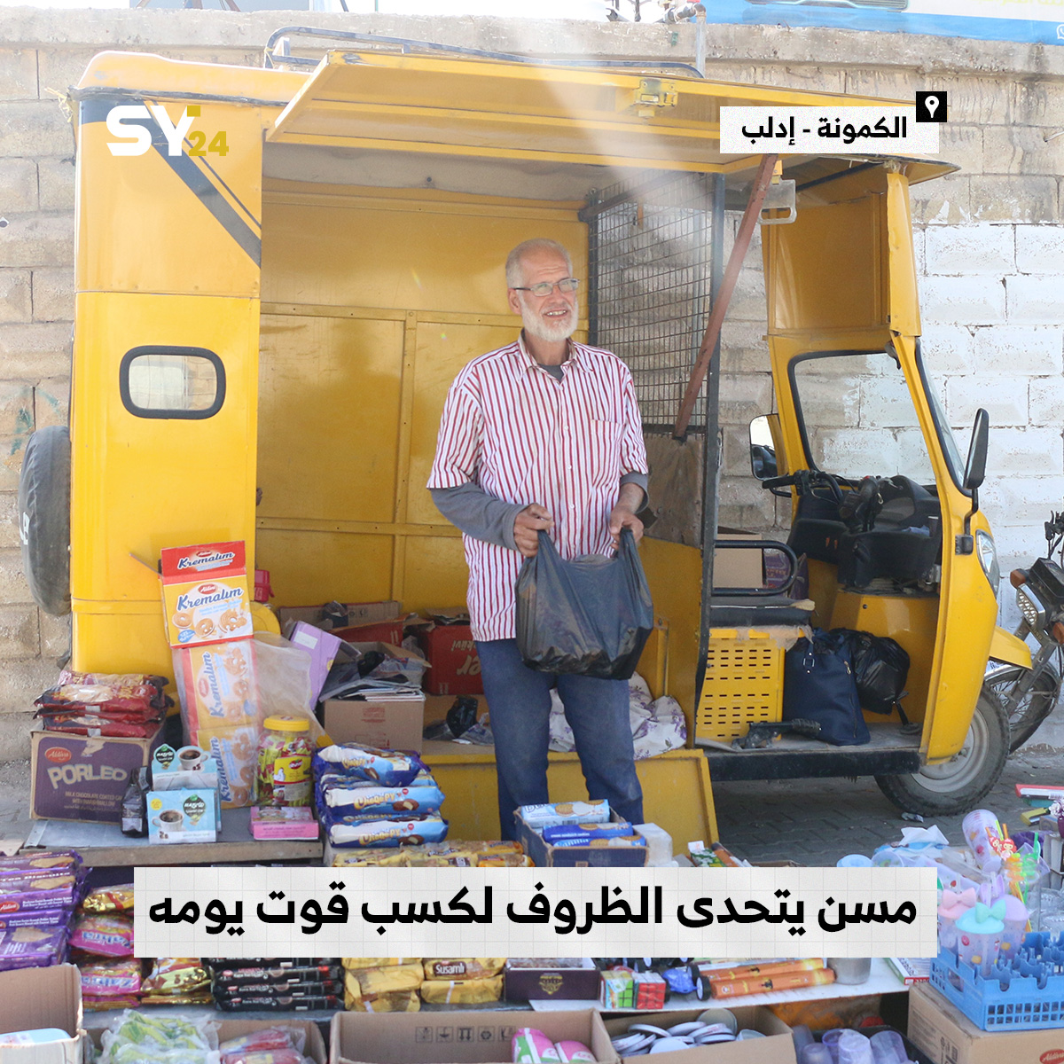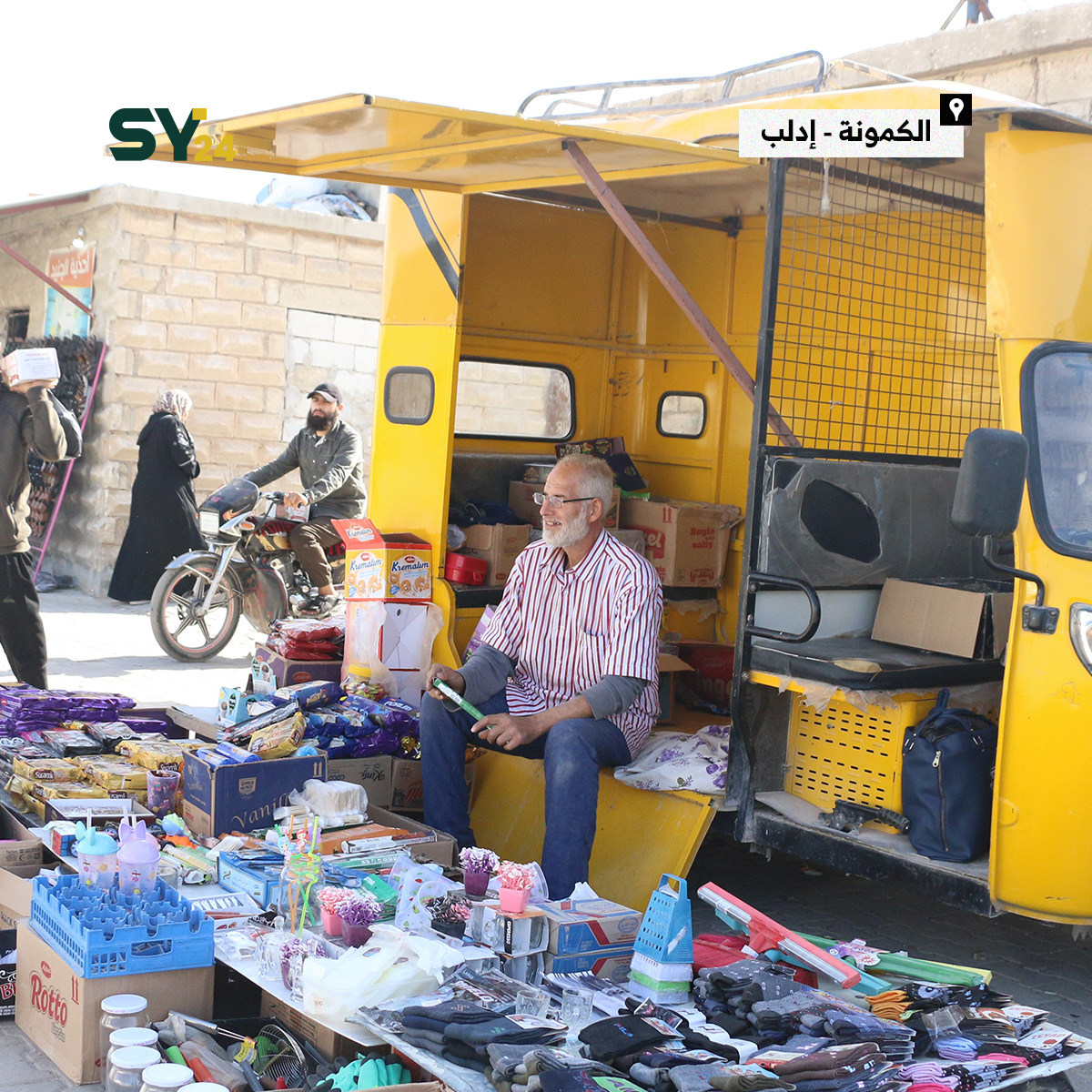 رجل مسن يبدأ مشروعه الصغير بعربة التيك توك في مخيمات كمونة بريف إدلب