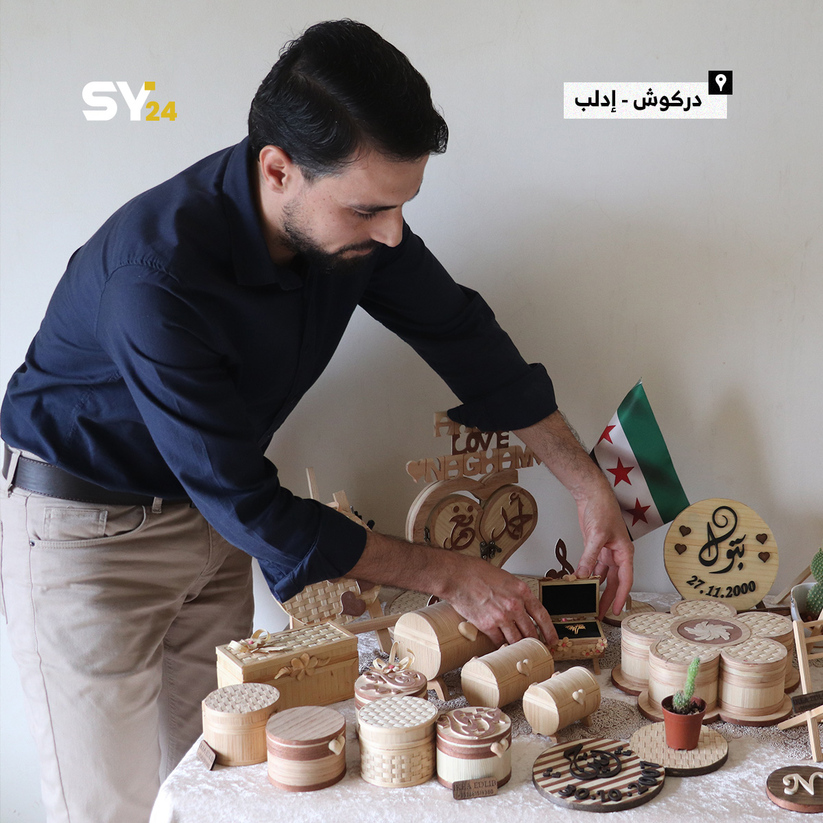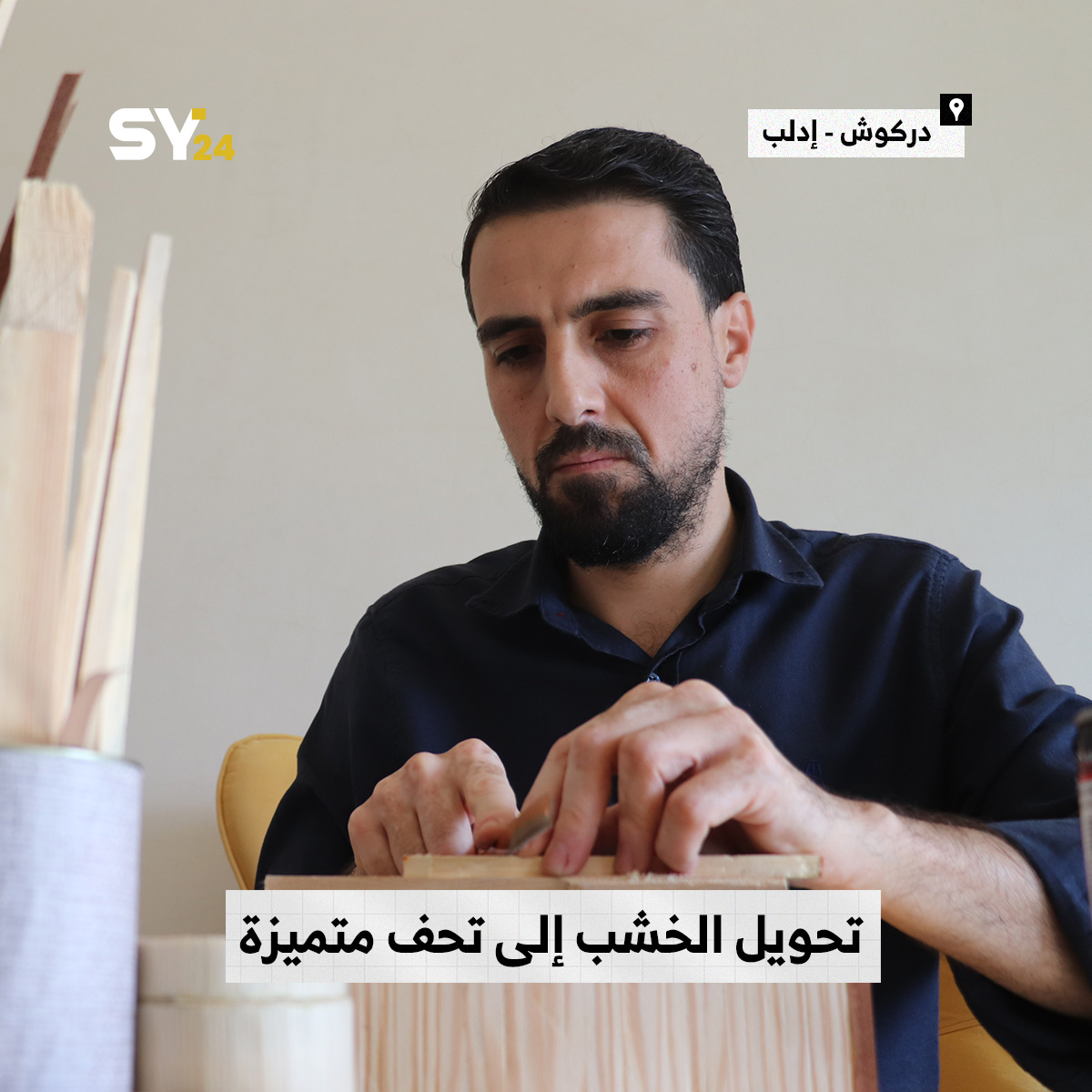 الشاب أحمد من ريف دمشق يبدع في فن تصميم القطع الخشبية بأشكال رائعة وفريدة.
