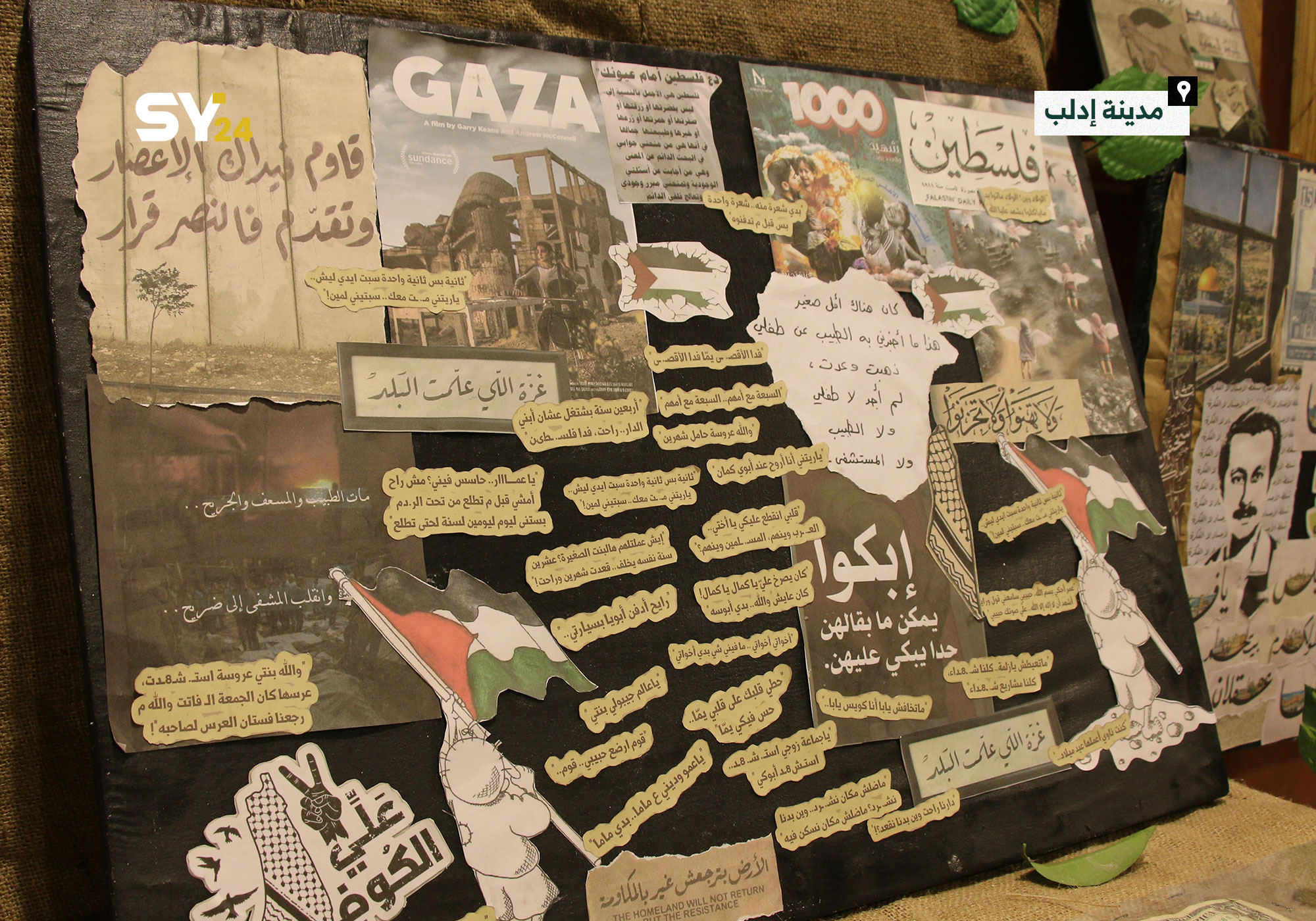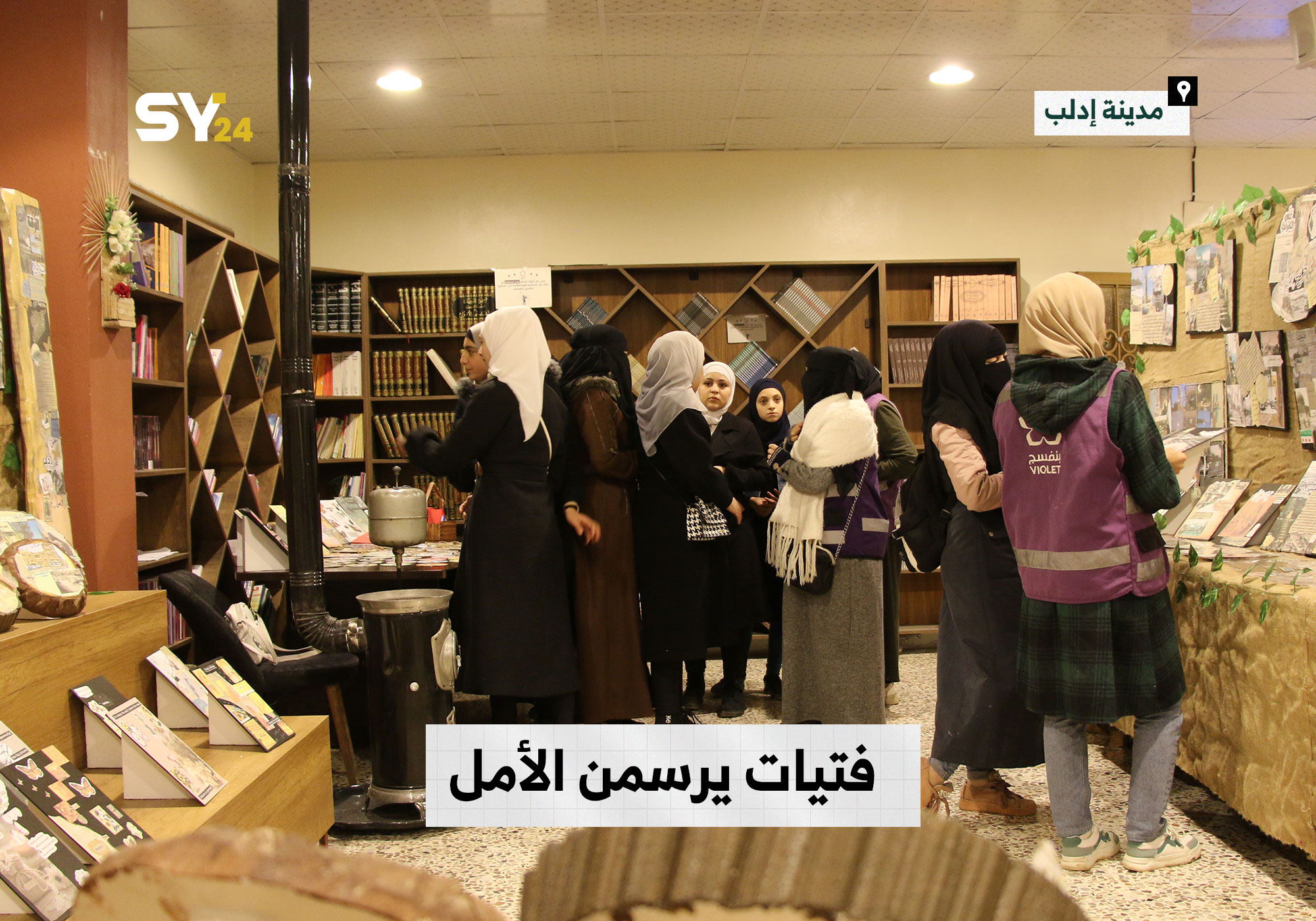 معرض “إشراقات” يضم لوحات فن الجورنال، وهي عبارة عن قصاصات حائط صُنعت بأيدي فتيات، بالإضافة إلى بعض اللوحات الفسيفسائية والخط العربي.