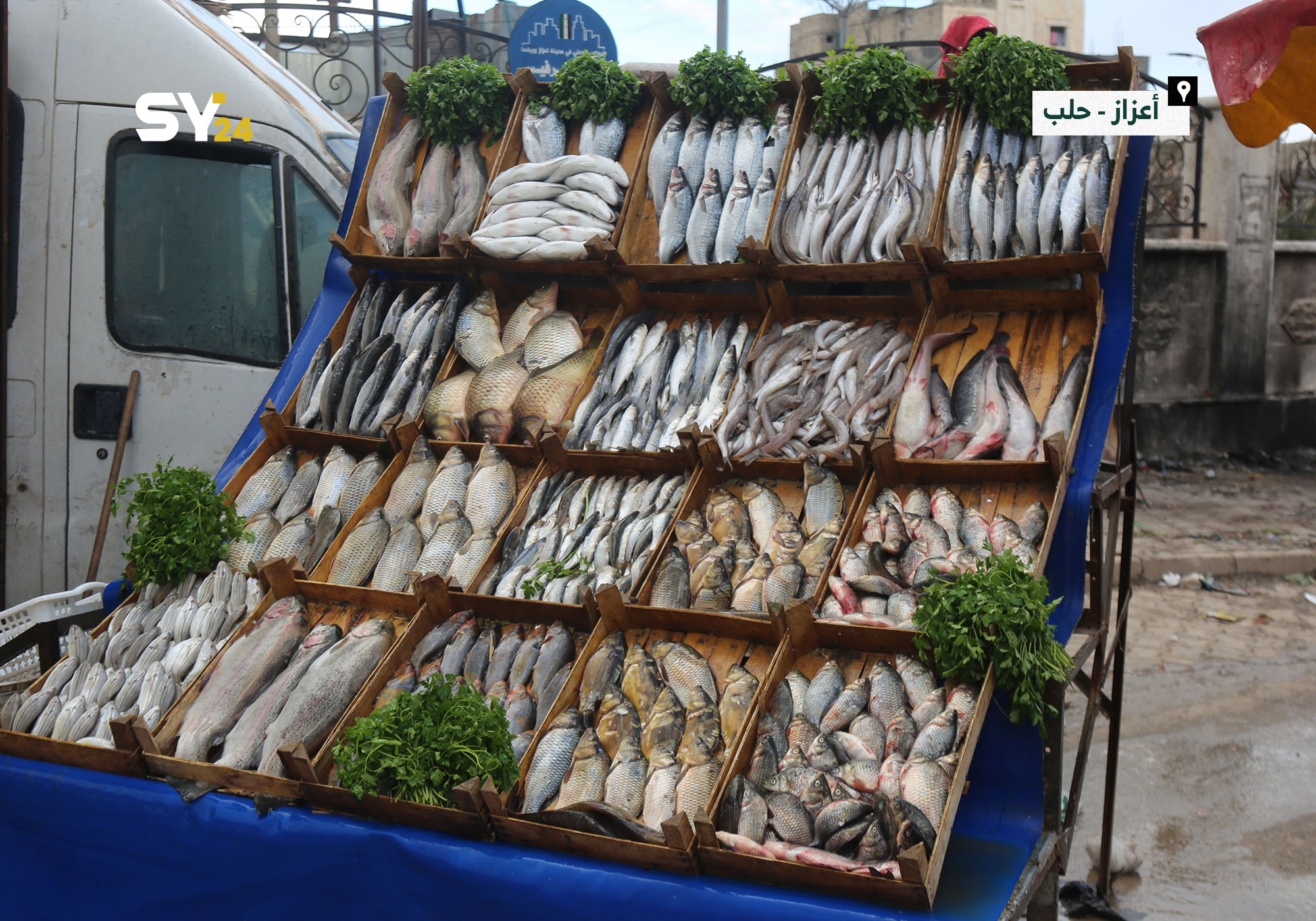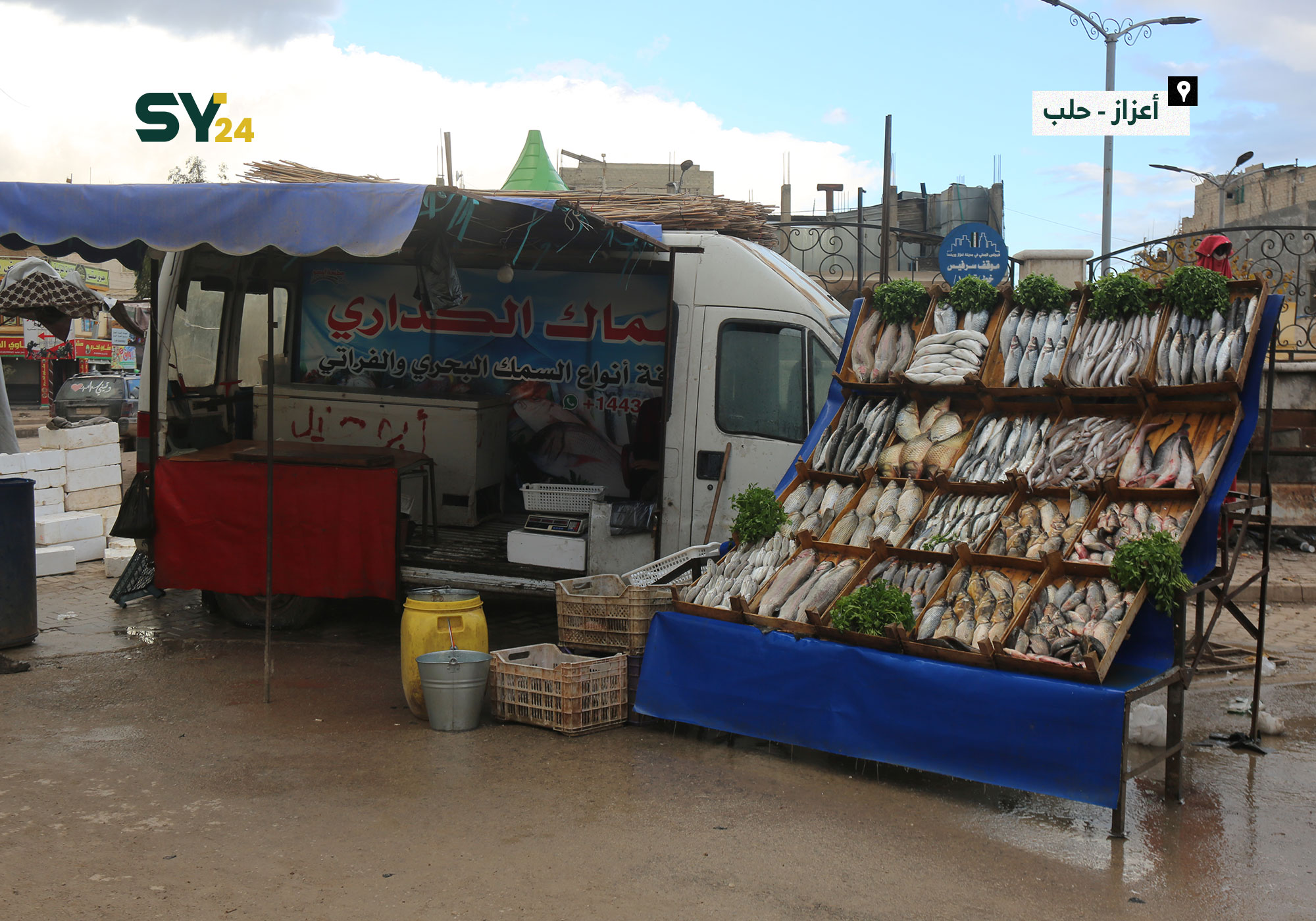 بسطة لبيع الأسماك في مدينة أعزاز شمال حلب