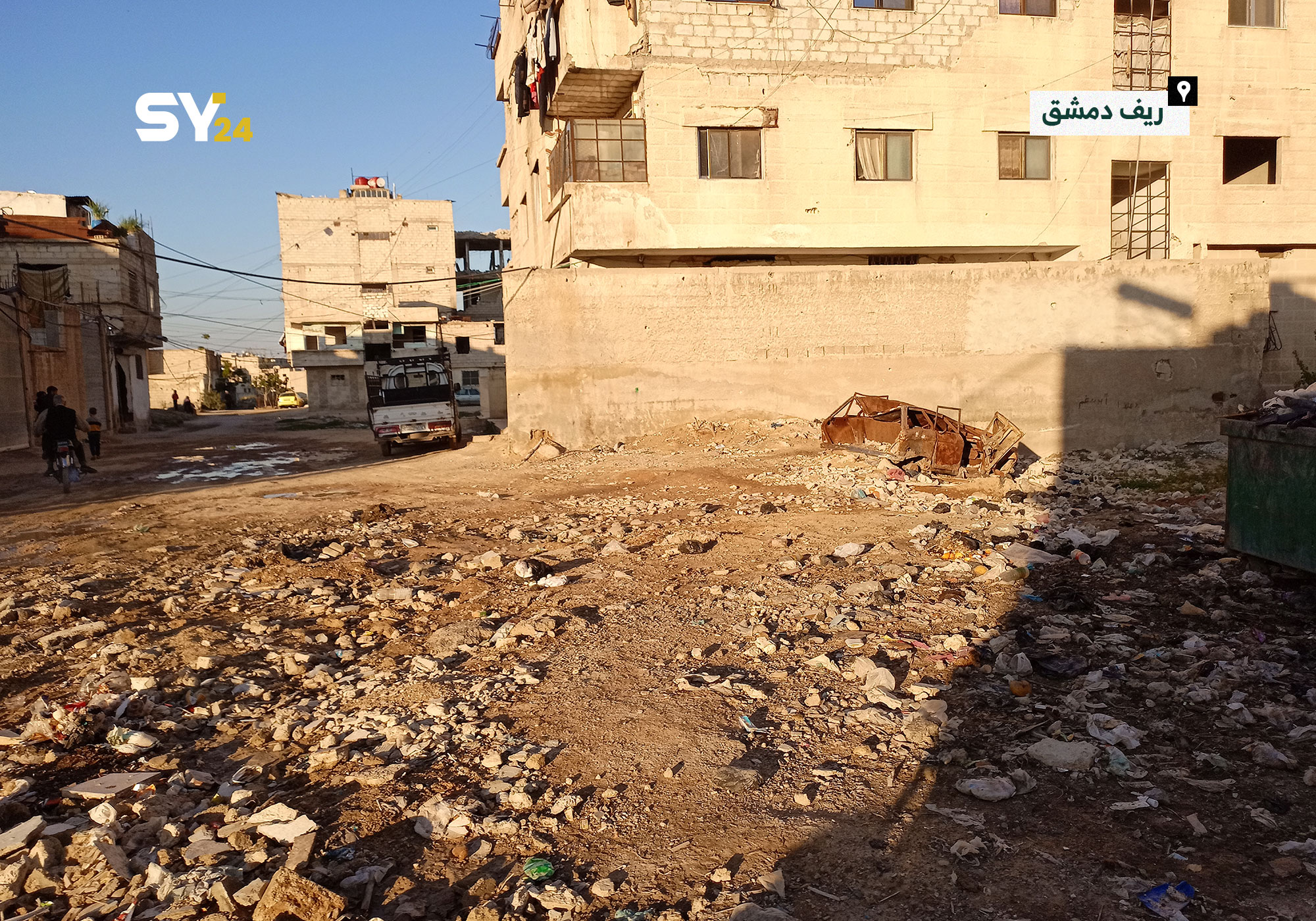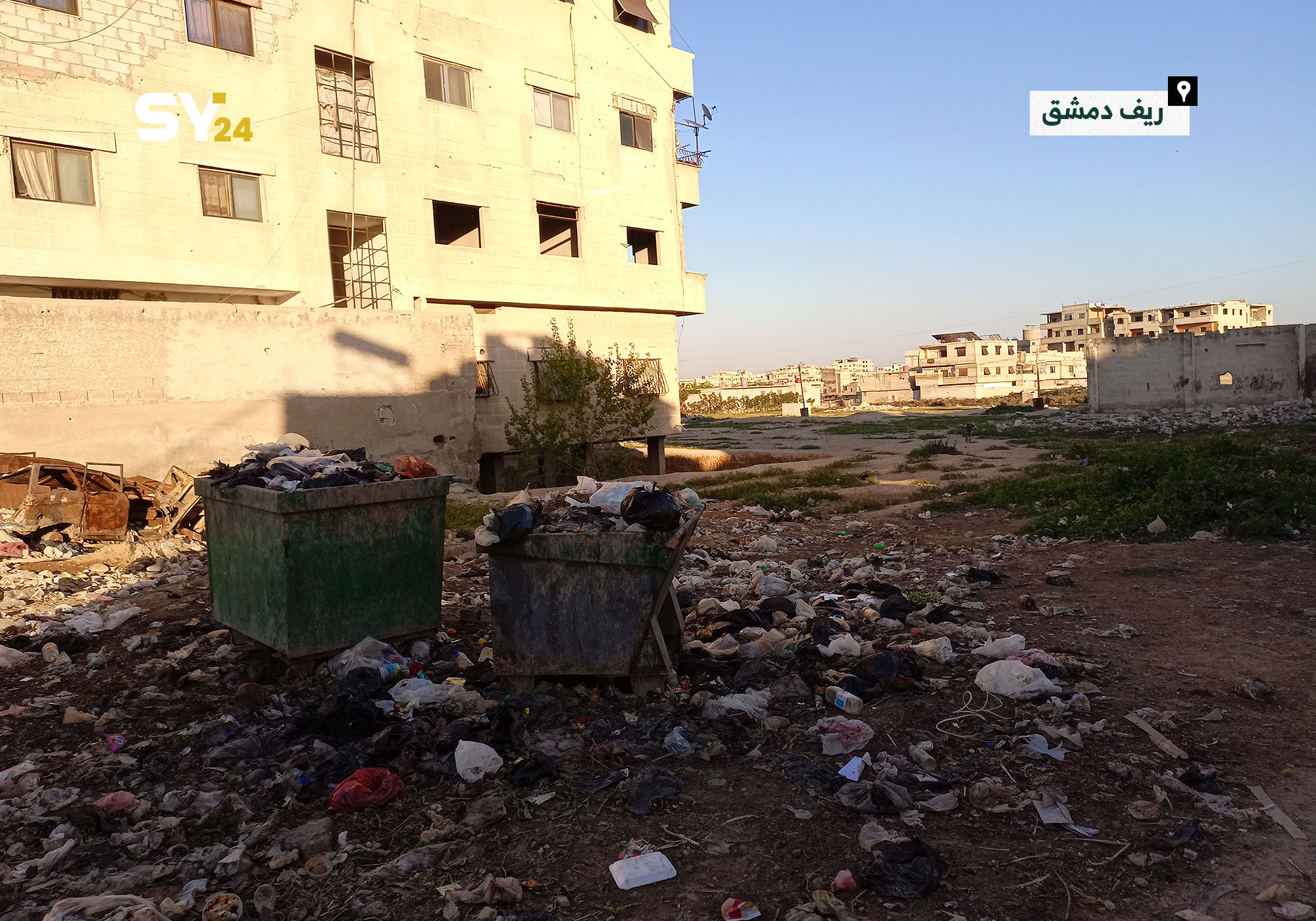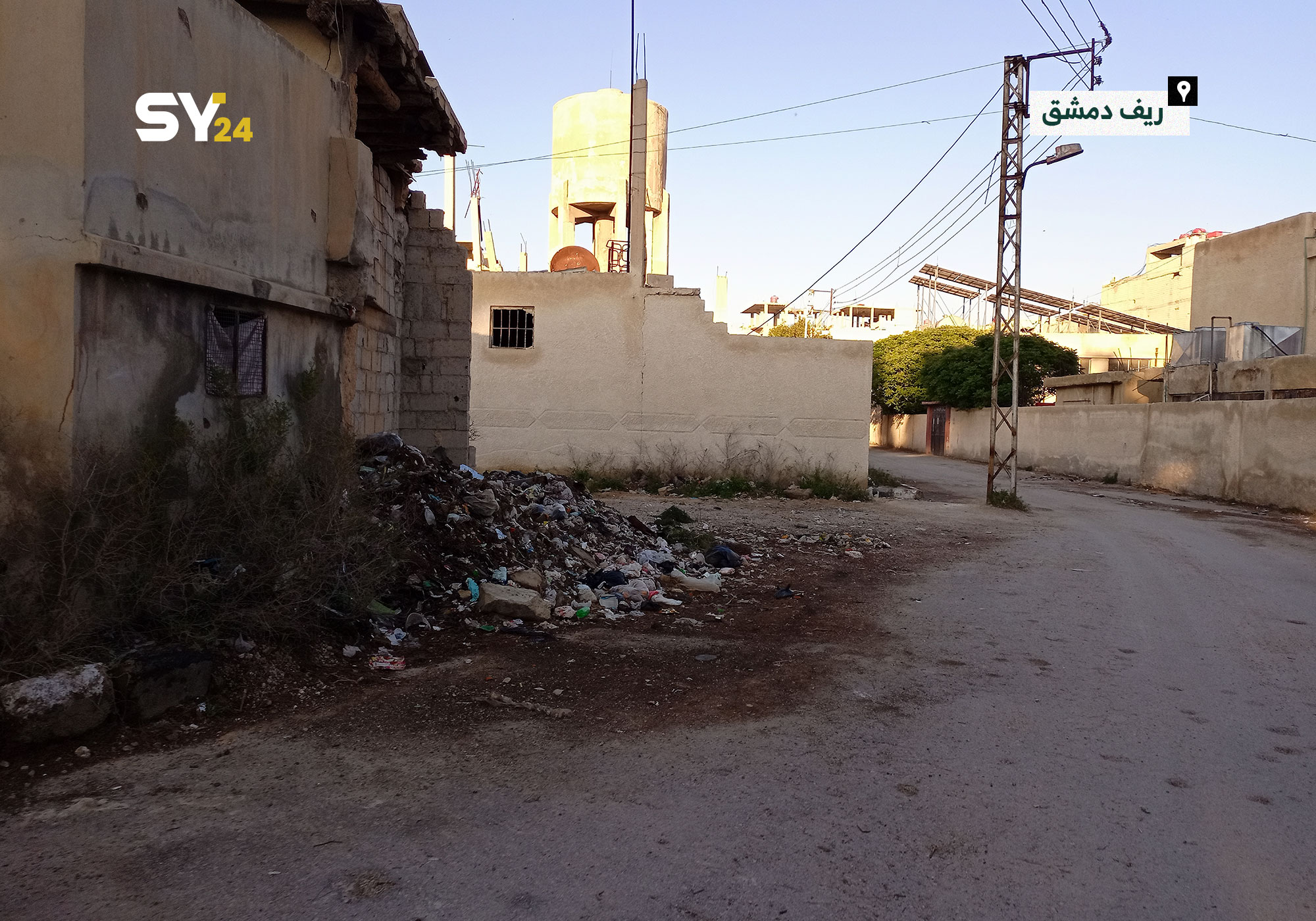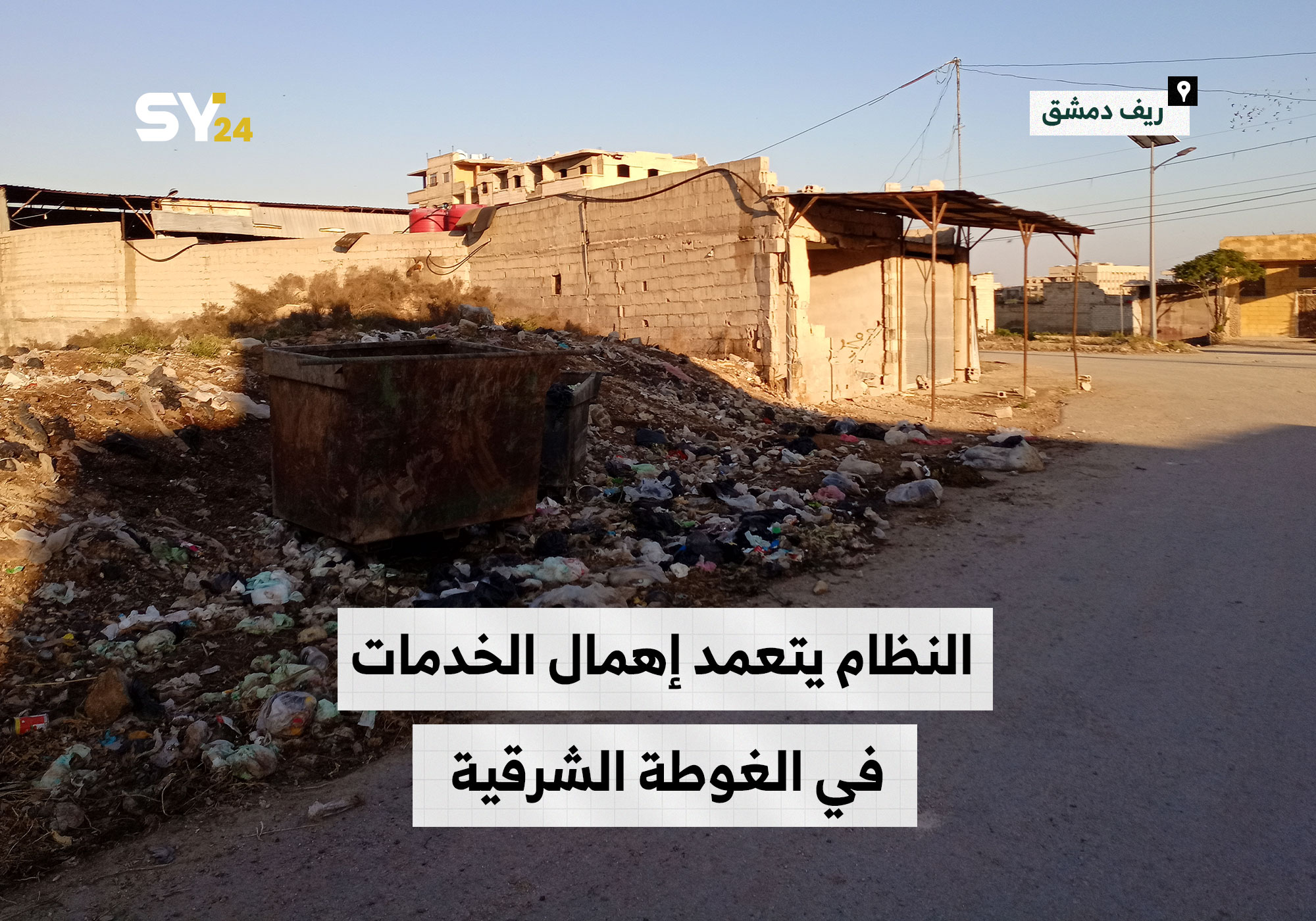 إنتشار القمامة والأوساخ داخل الأحياء السكنية في بلدة “حزة” بالغوطة الشرقية يُظهر إهمال مؤسسات النظام في تقديم خدماتها.