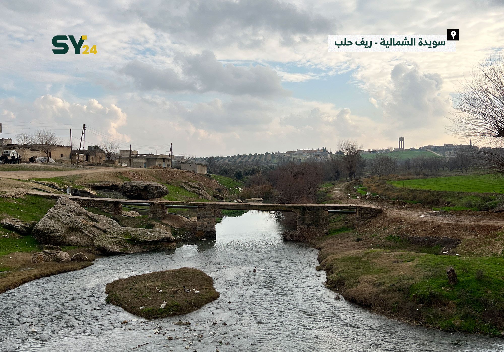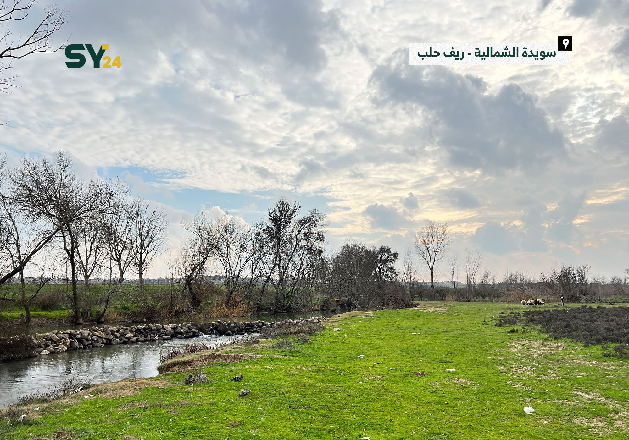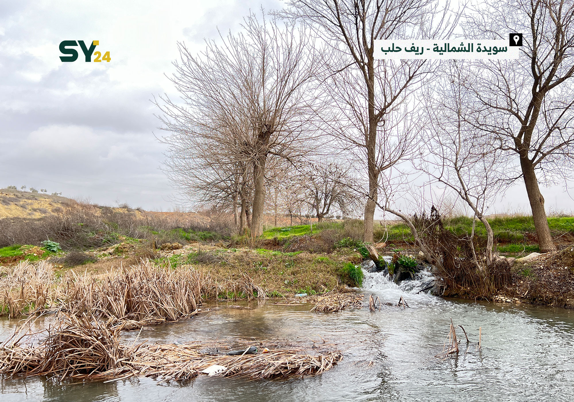 صور من على ضفاف نهر الساجور بالقرب من منطقة الغندورة في ريف حلب الشرقي.
