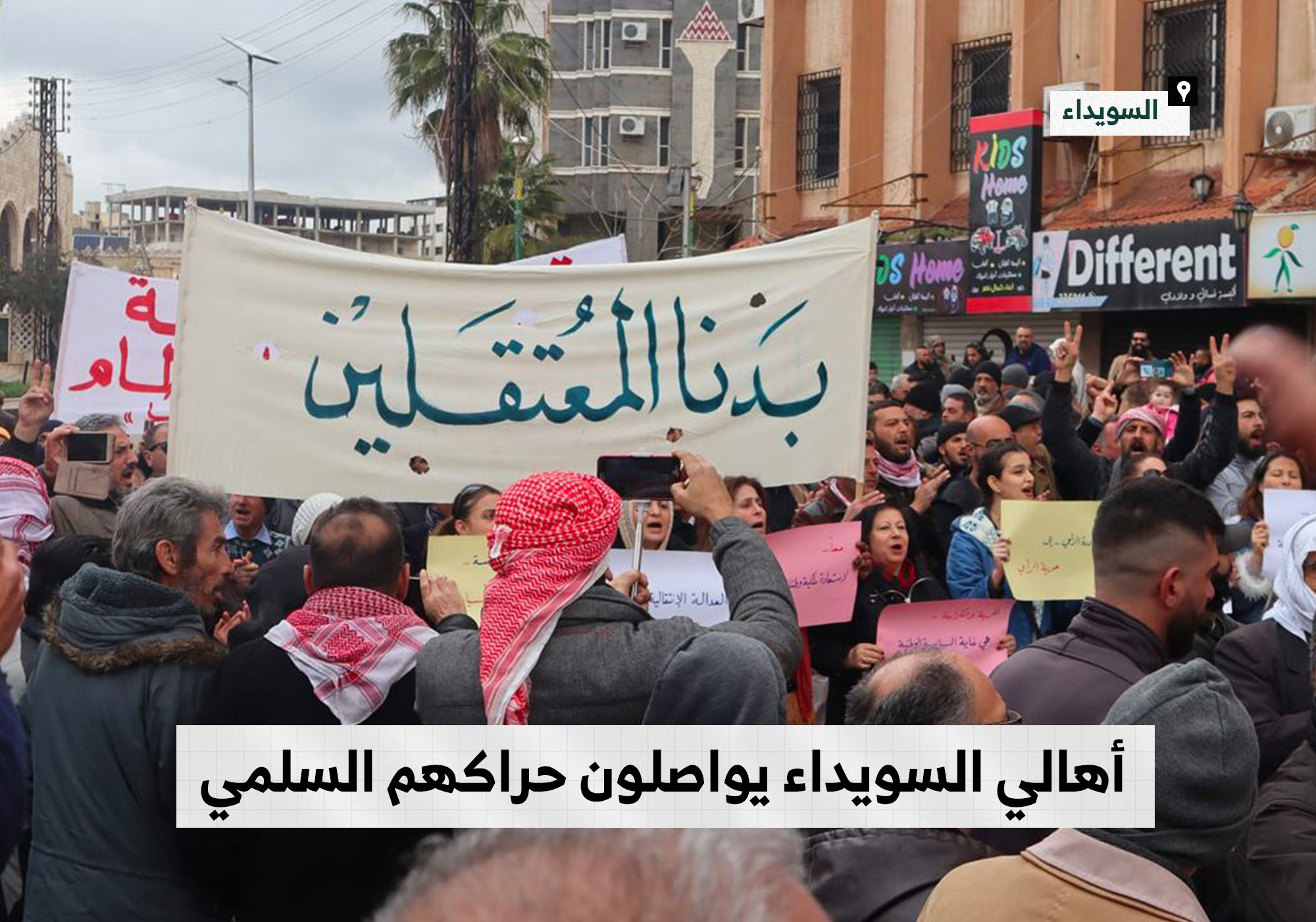 استمرار الاحتجاجات الشعبية في مدينة السويداء للمطالبة بالتغيير السياسي وتطبيق القرار الدولي 2254 وإطلاق سراح المعتقلين مصدر الصور: السويداء 24