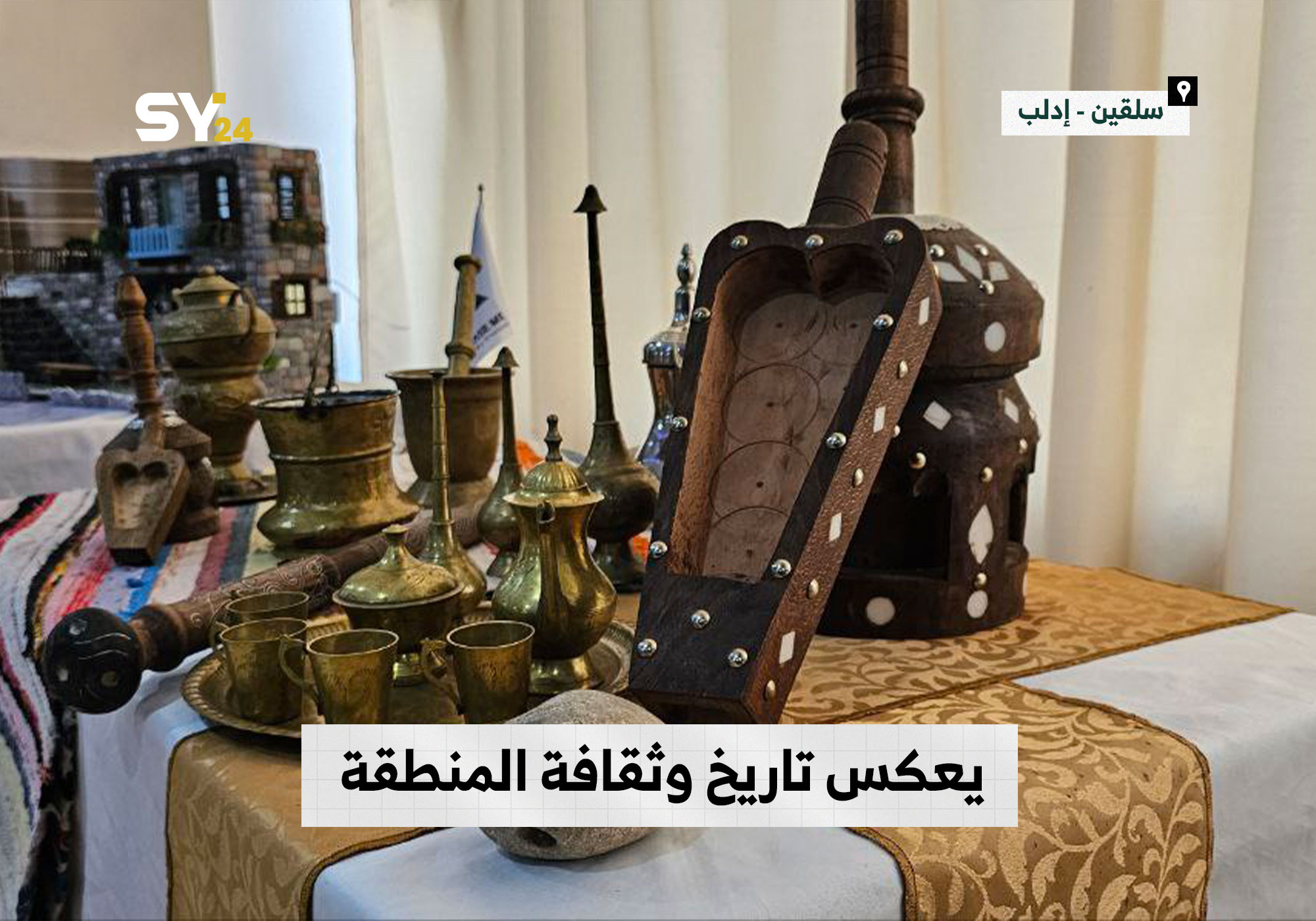 معرض التراث السوري في ريف إدلب، يضم رسومات للمعالم الأثرية وأصناف من الأكلات السورية التقليدية.