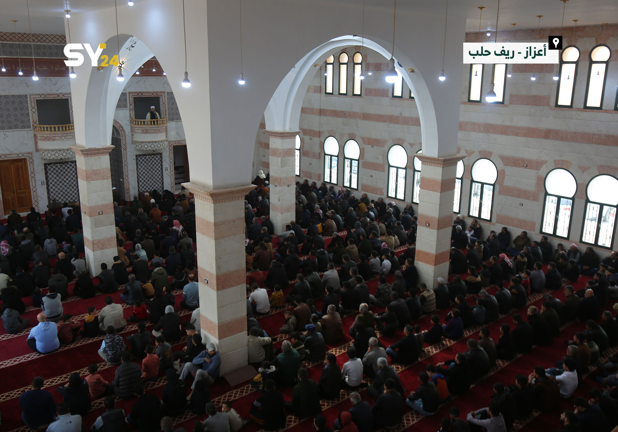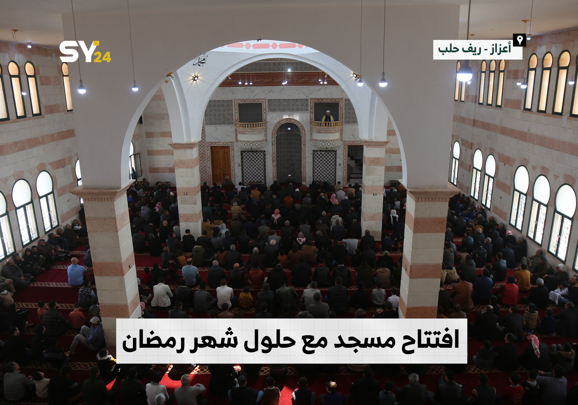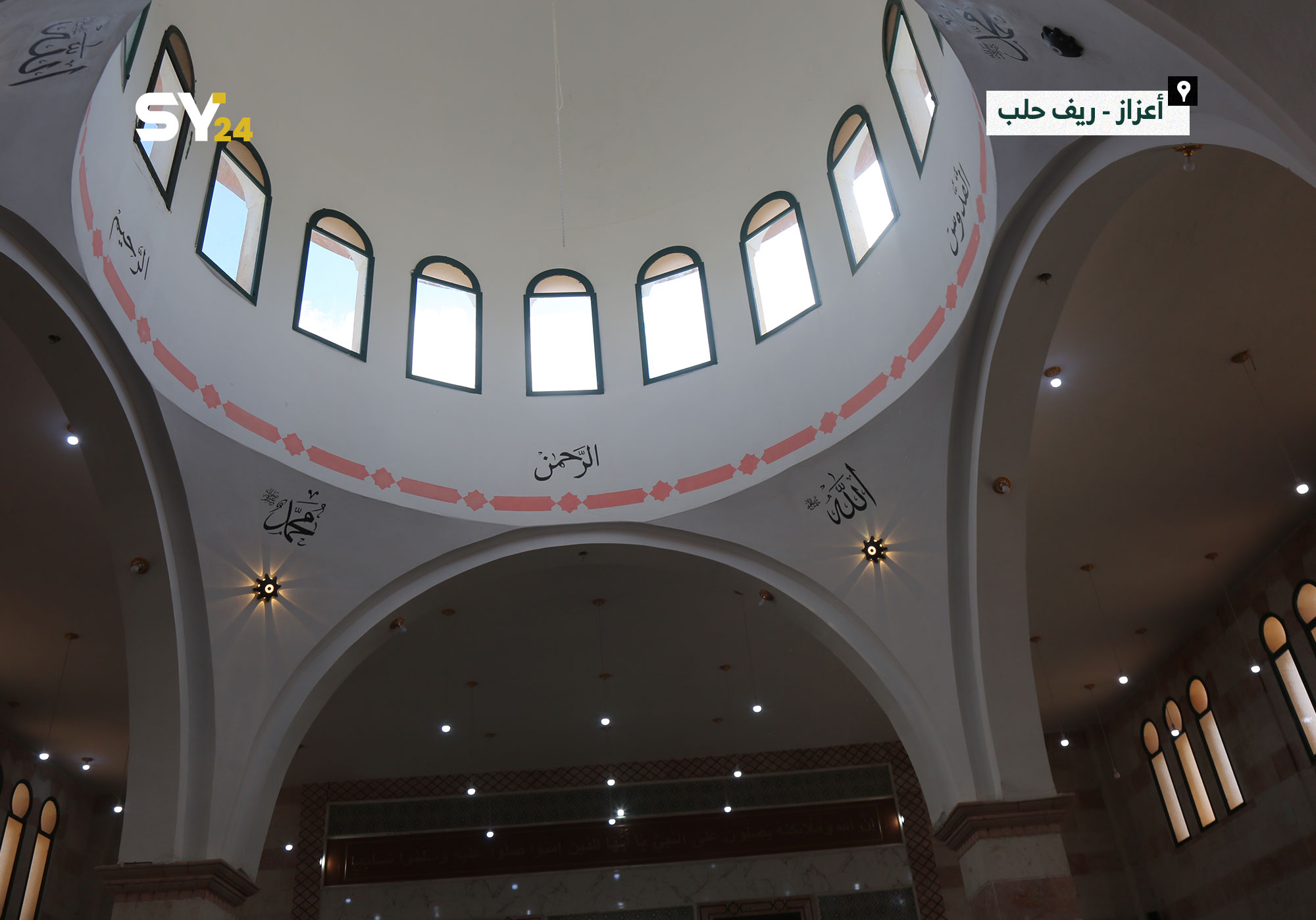 إعادة افتتاح جامع السيدة خديجة في مدينة أعزاز بريف حلب الذي تم تدمير أجزاء كبيرة منه سابقاً