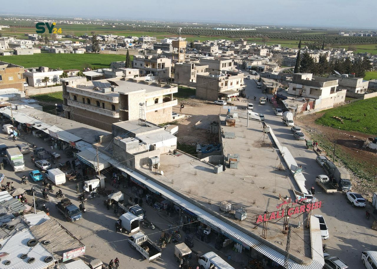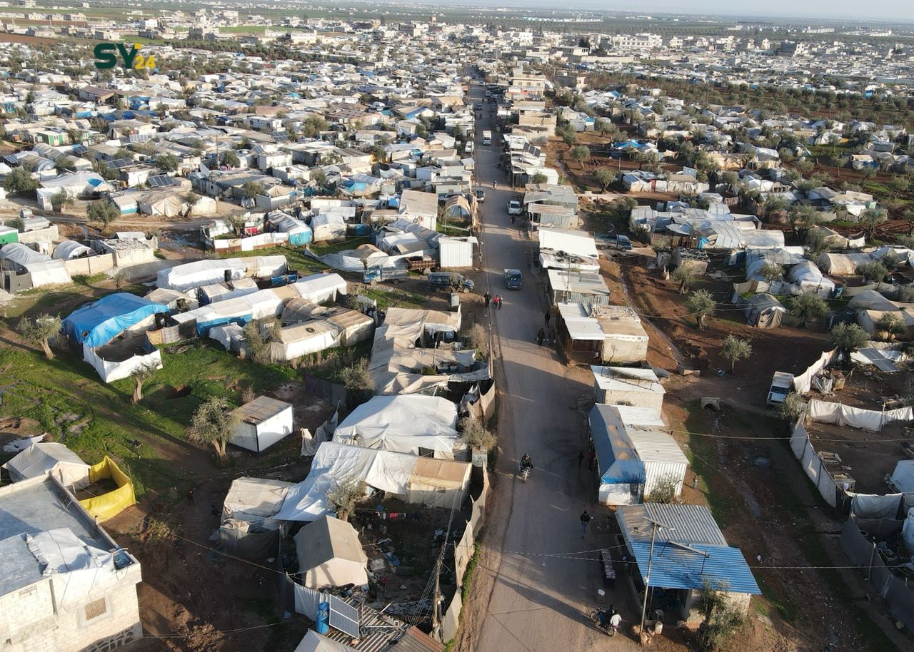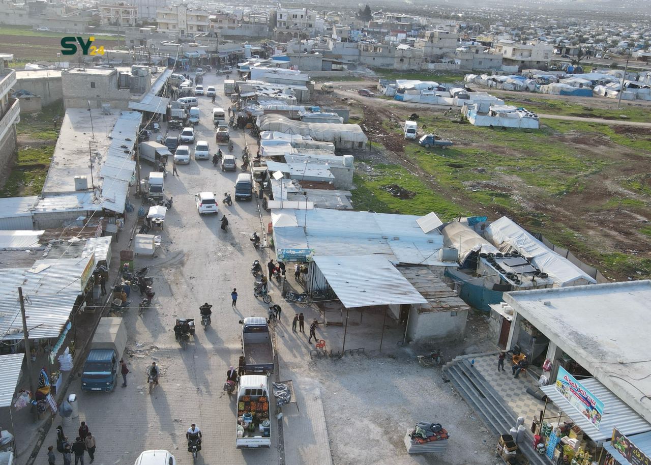 صور جوية لسوق بلدة سجو ومخيم يازي باغ على الحدود السورية التركية.