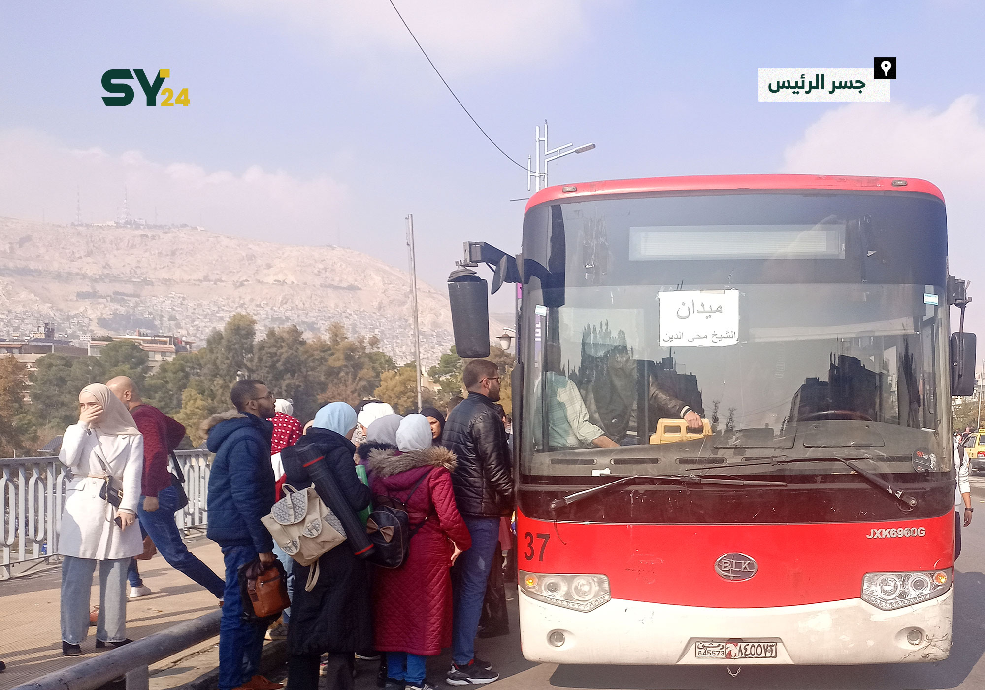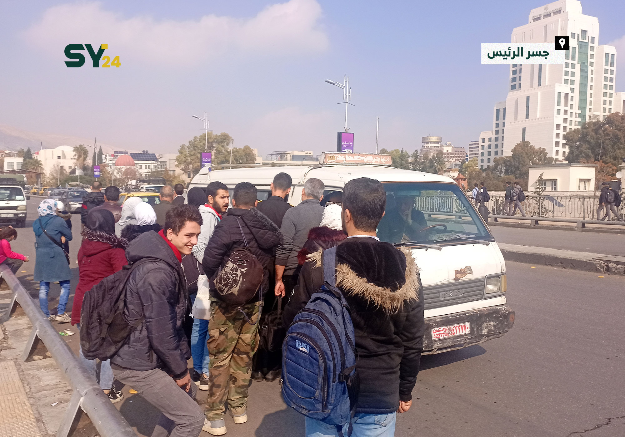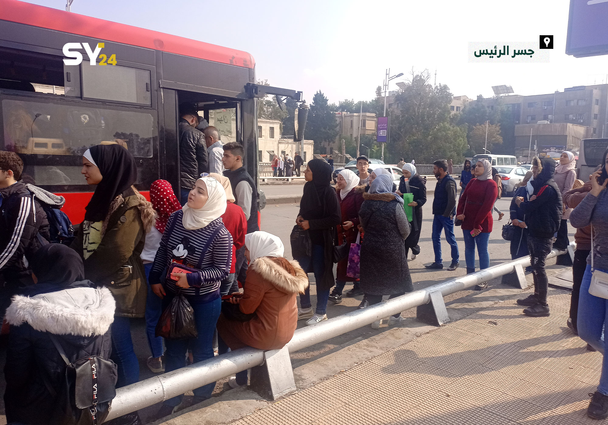 صور تكشف عن معاناة المدنيين بسبب أزمة المواصلات في دمشق.