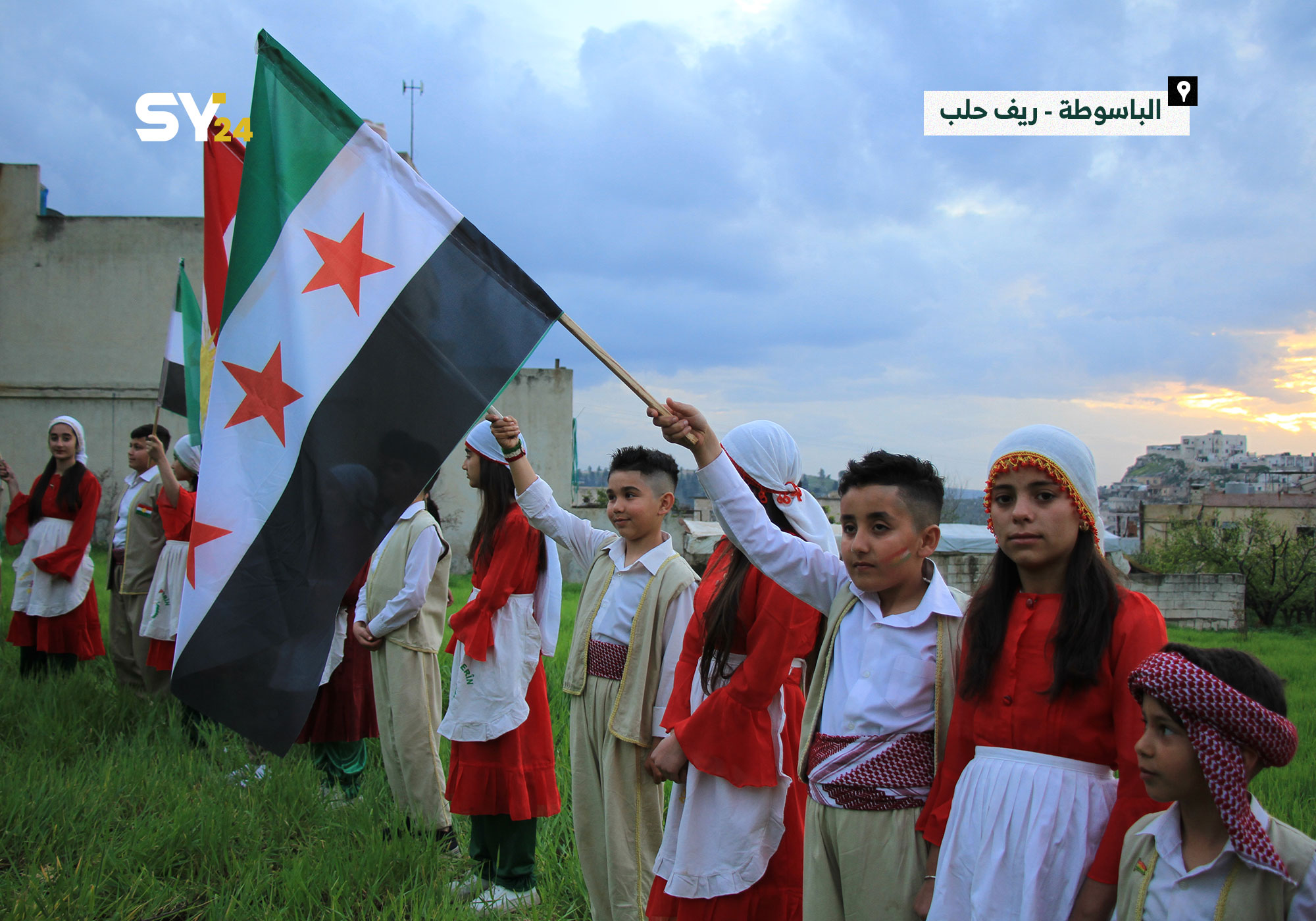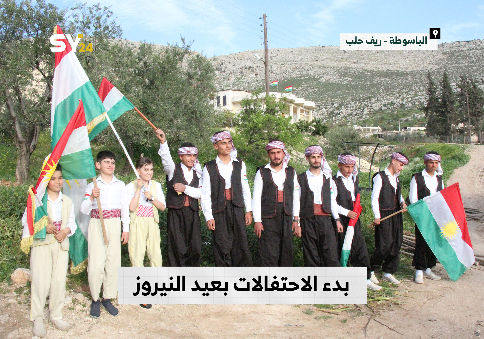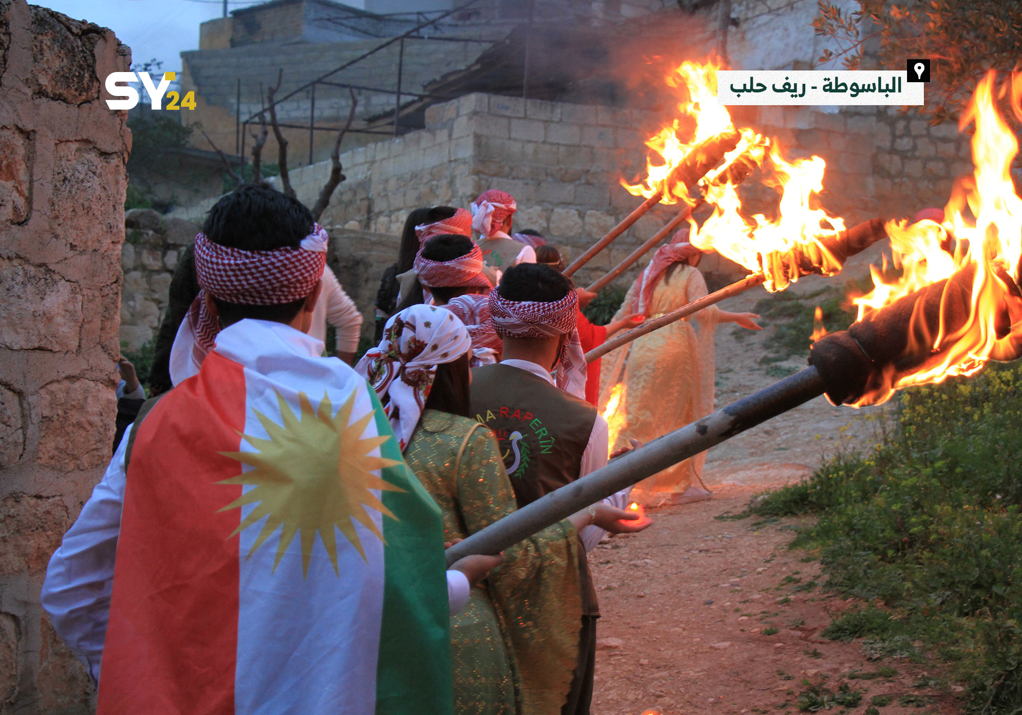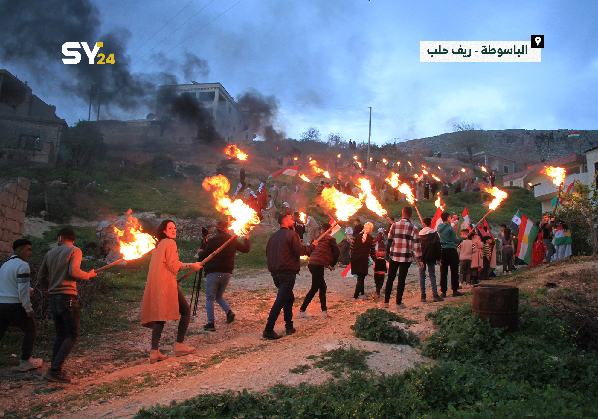 أهالي بلدة الباسوطة في عفرين بريف حلب يقومون بإشعال نار النيروز ليعلنوا بدء الاحتفالات