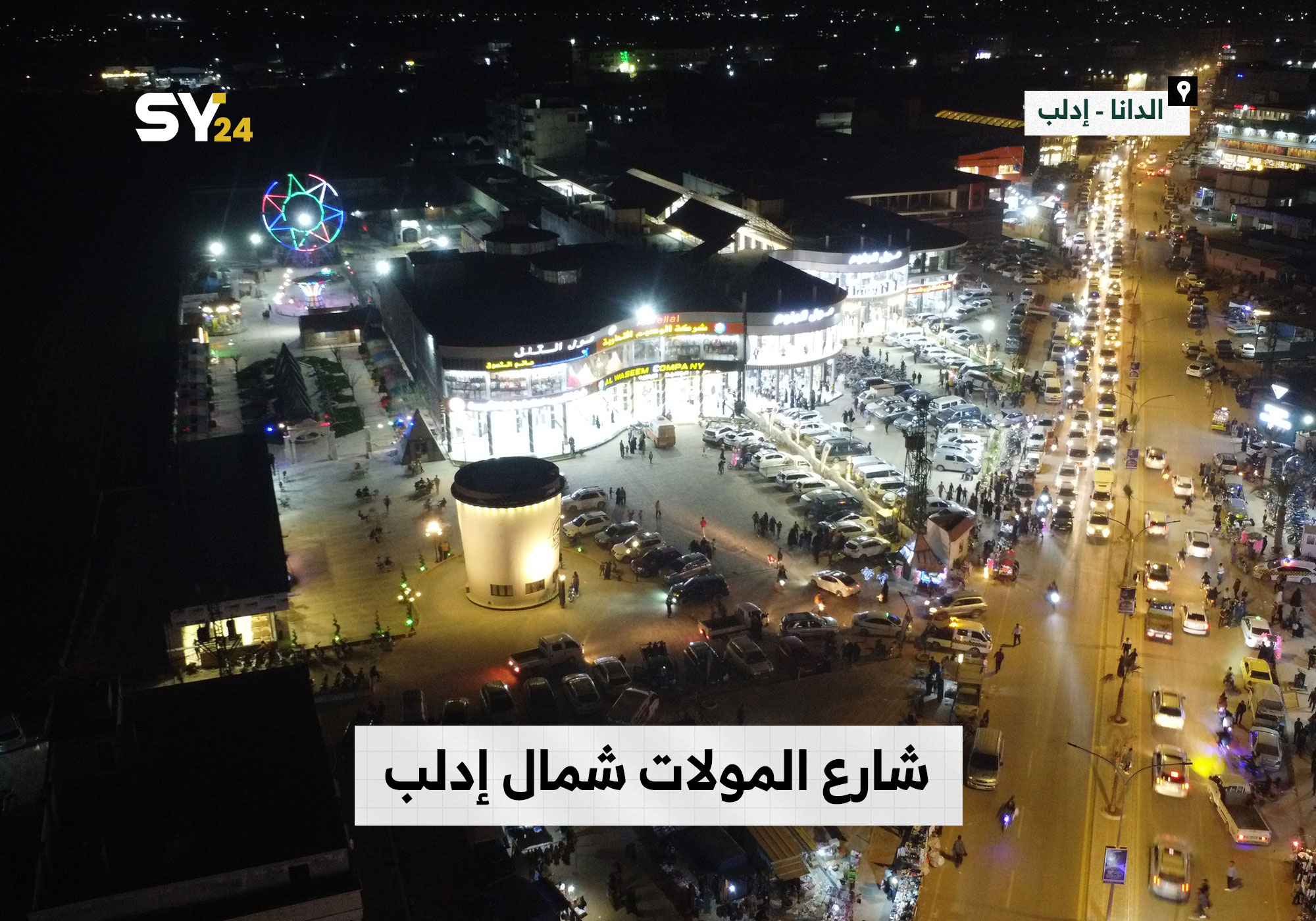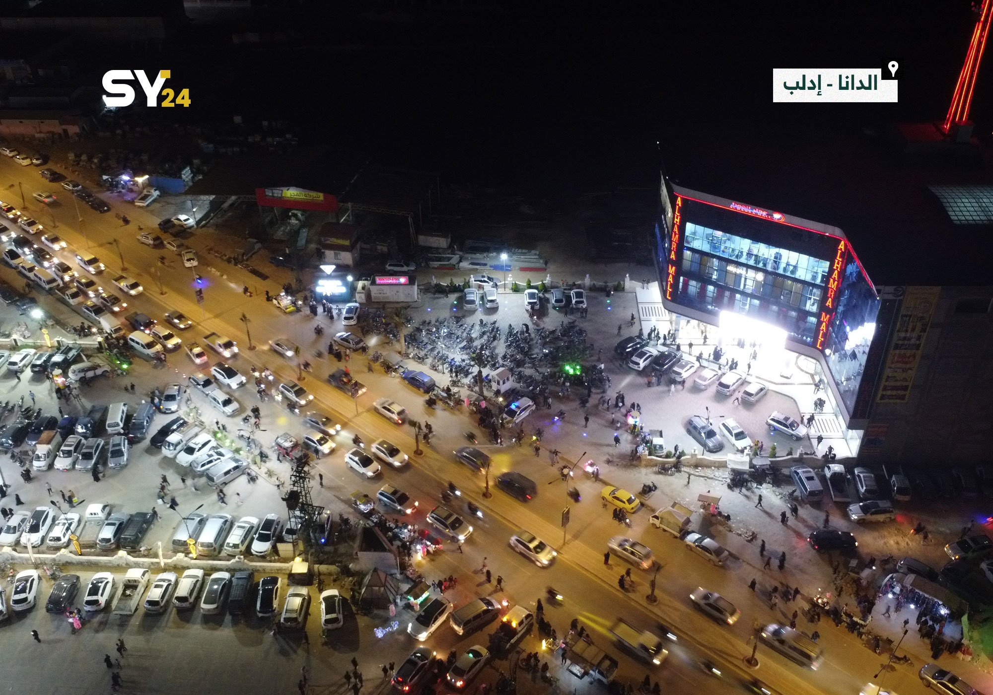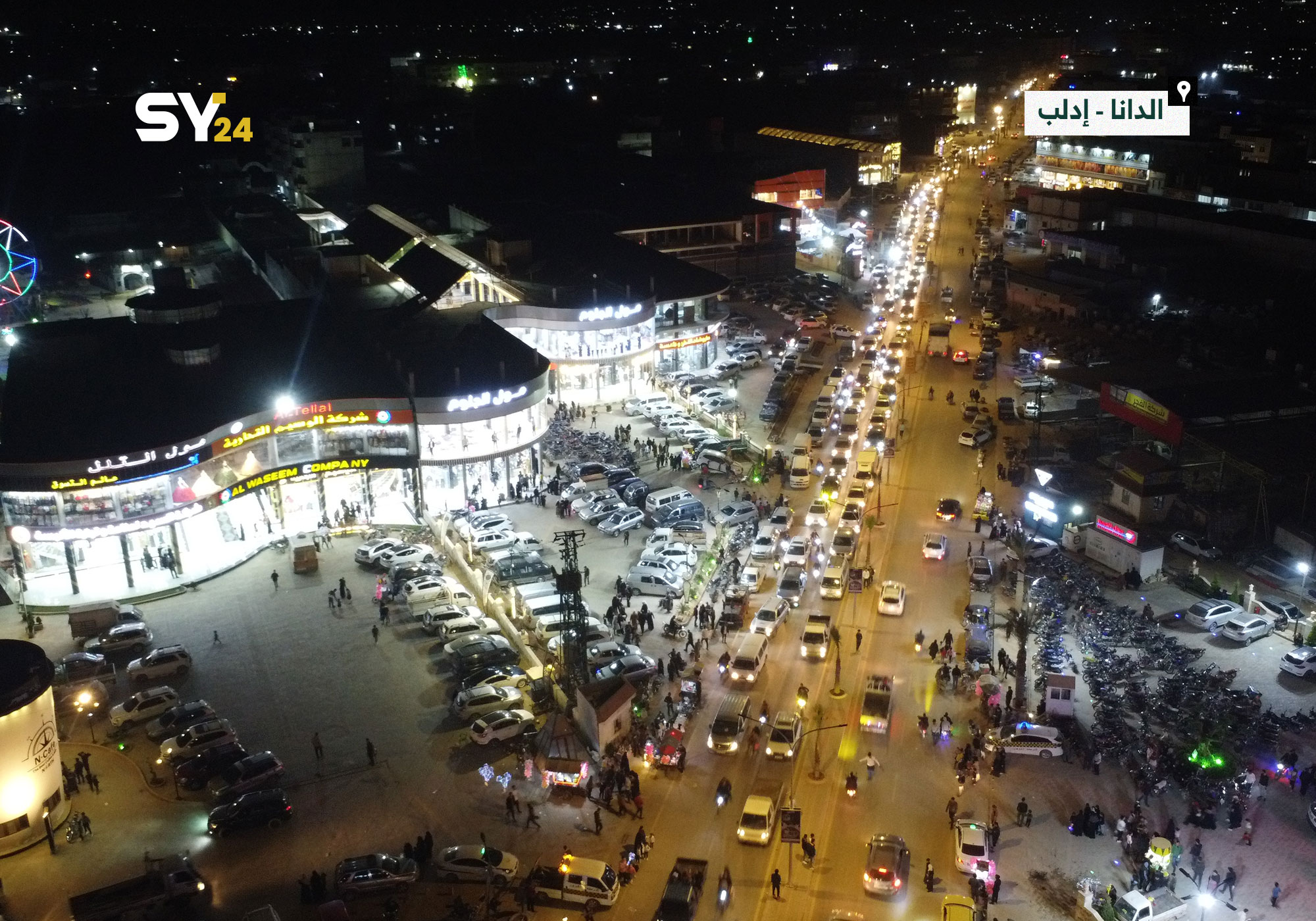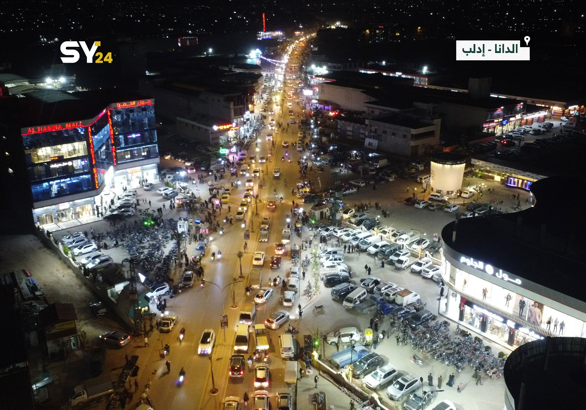 صور جوية لحركة الأسواق على طول شارع المولات في مدينة الدانا بريف إدلب الشمالي.