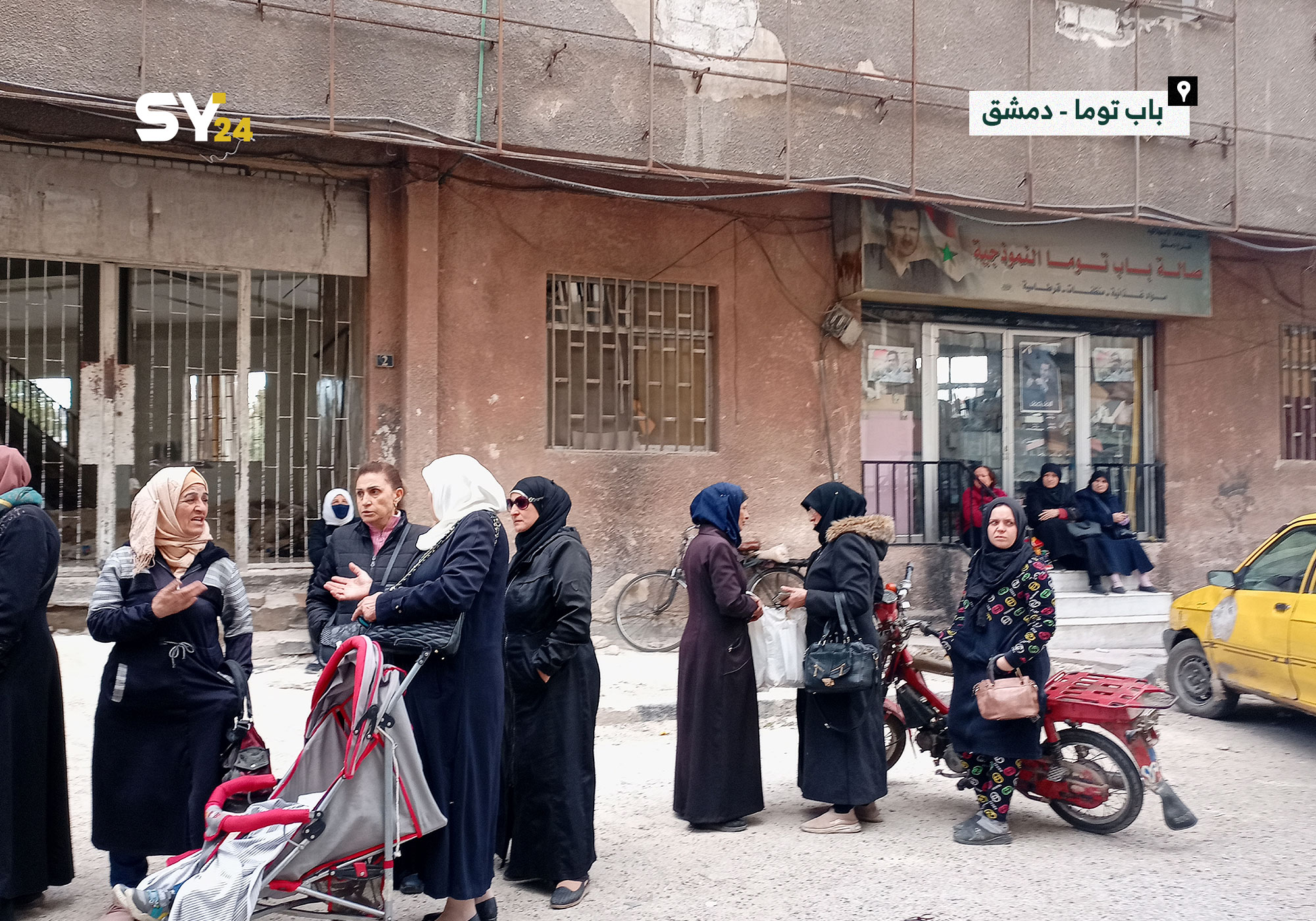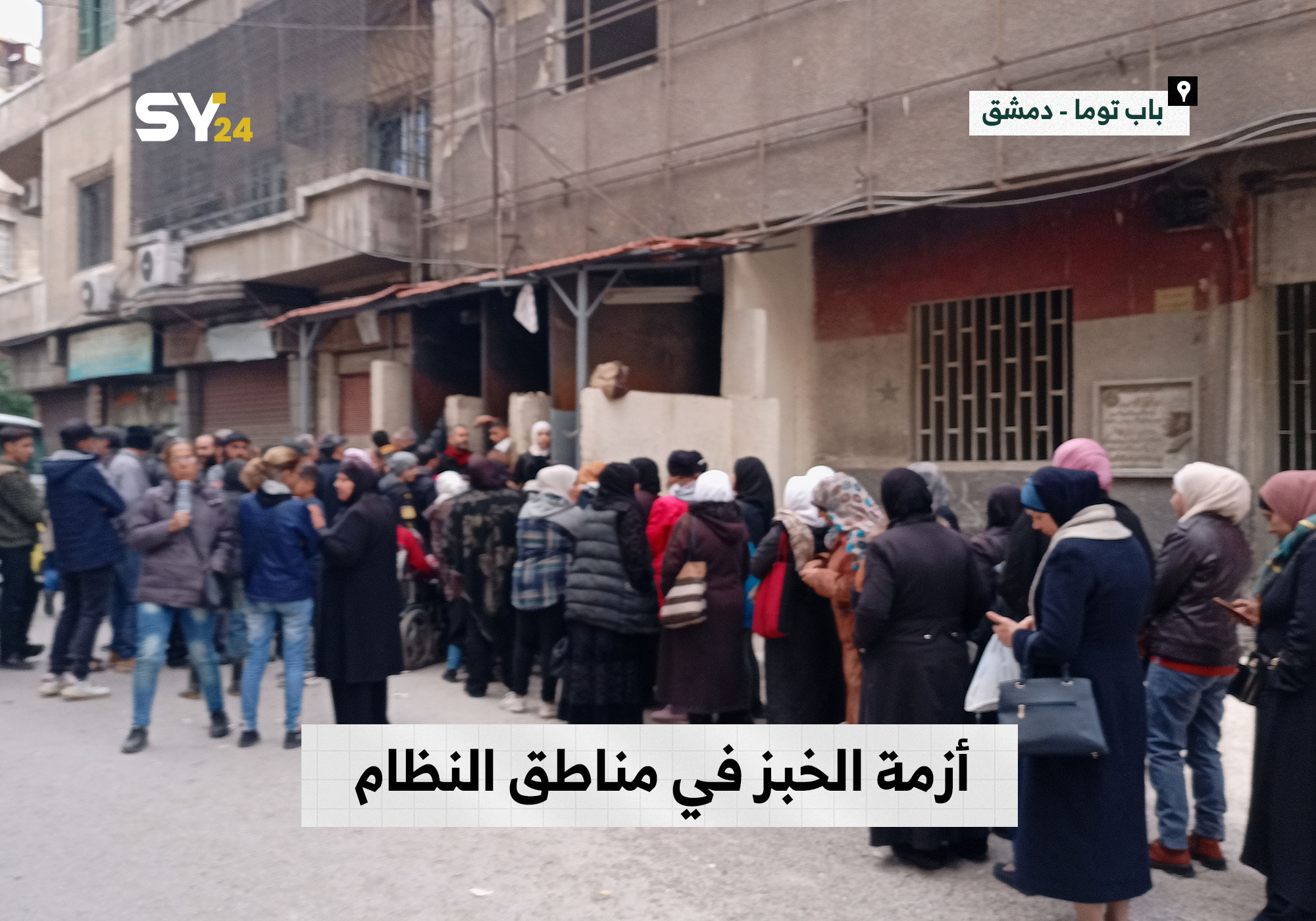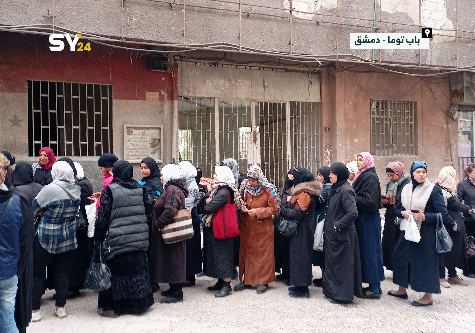 طوابير الانتظار أمام فرن باب توما في دمشق، من أجل الحصول على ربطة الخبز.
