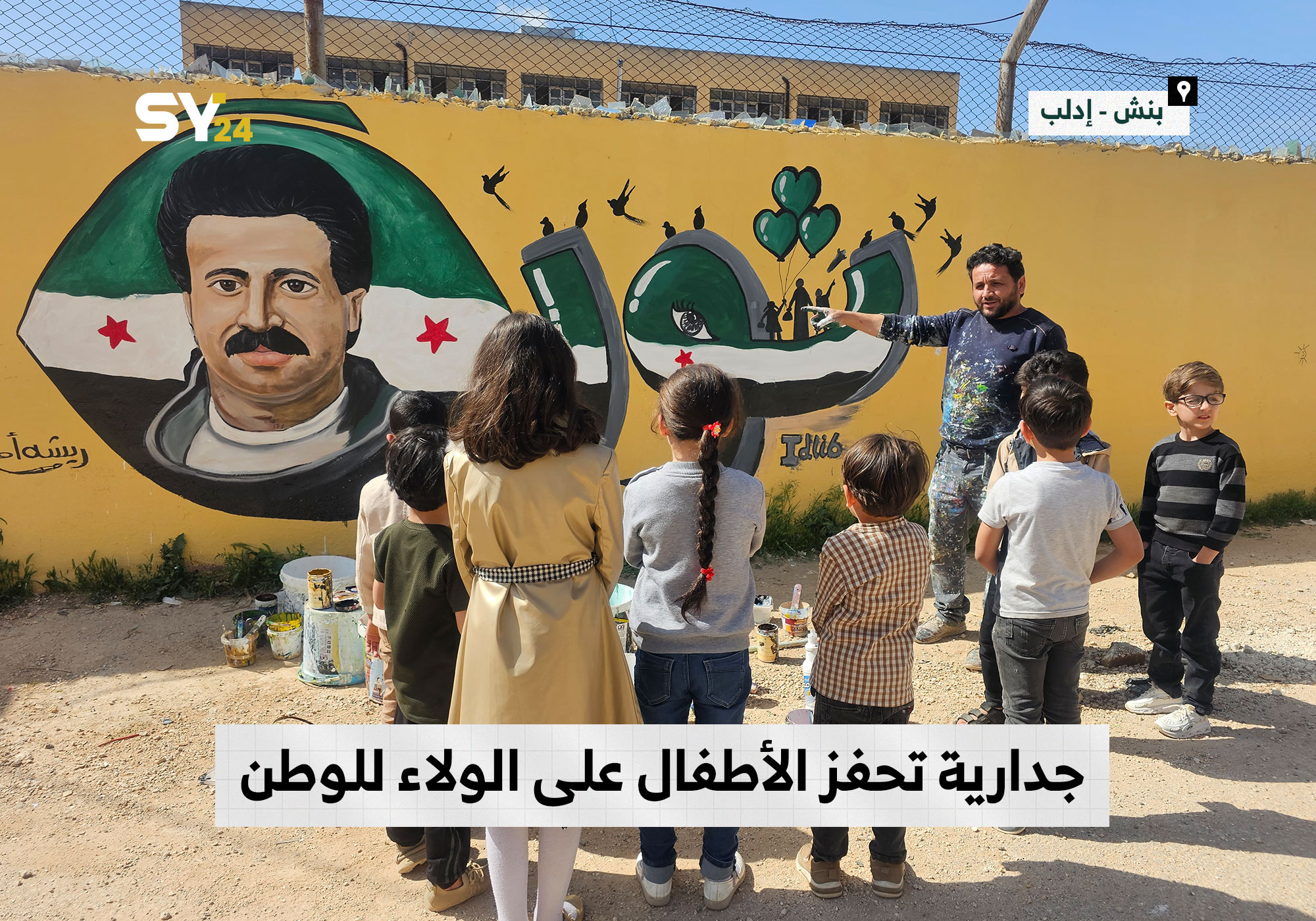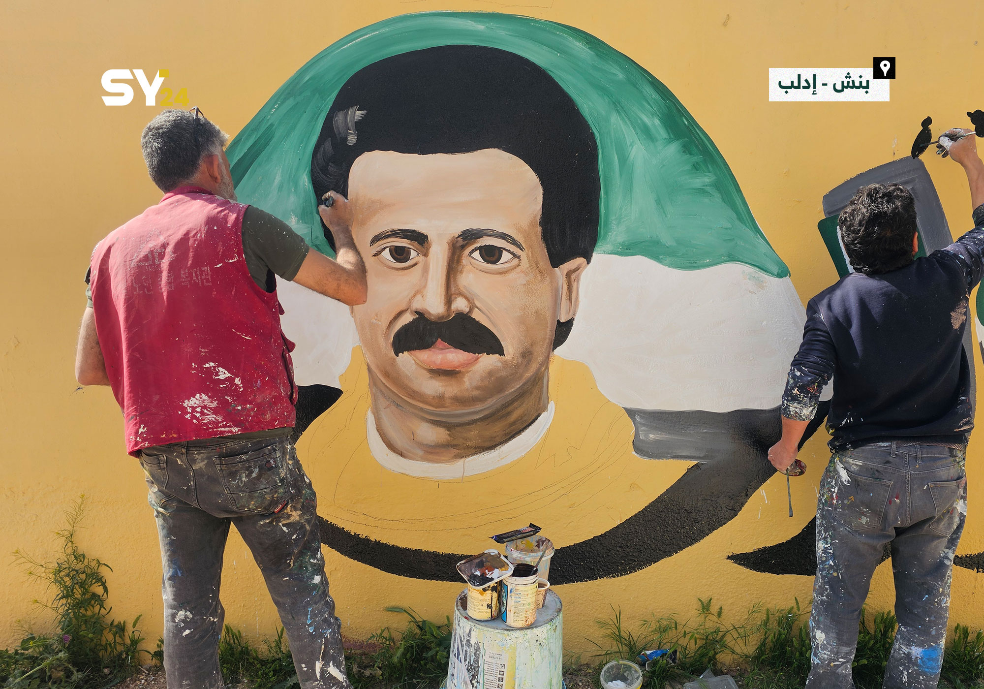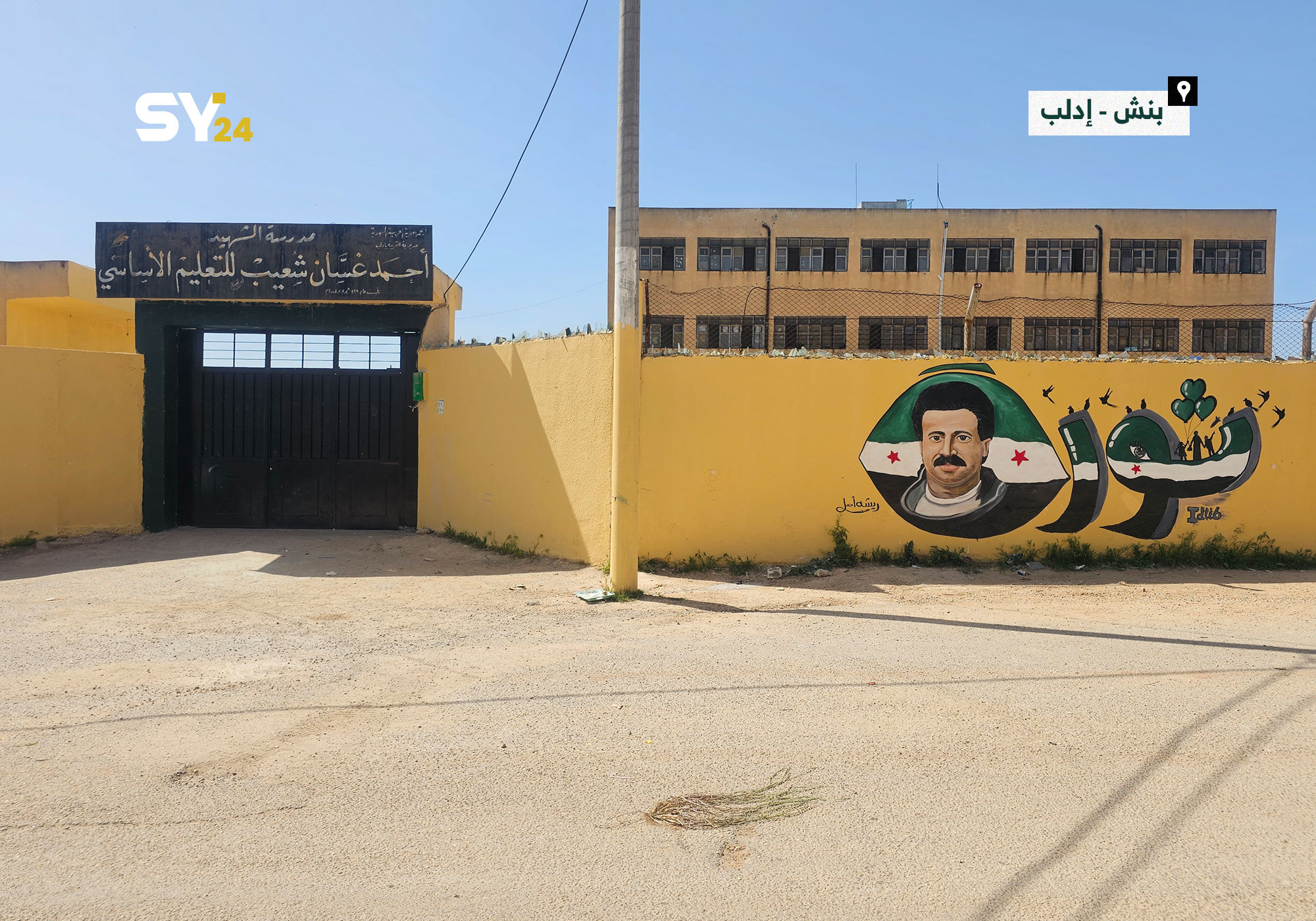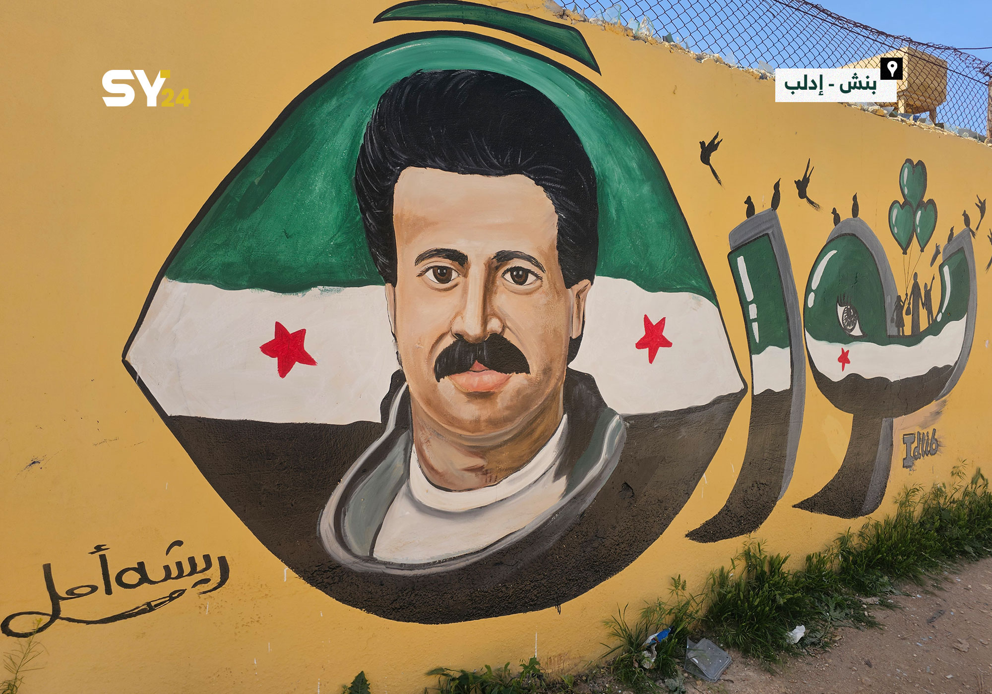 رسم جدارية للراحل اللواء “محمد الفارس” على جدار مدرسة للأطفال في مدينة بنش بريف إدلب.