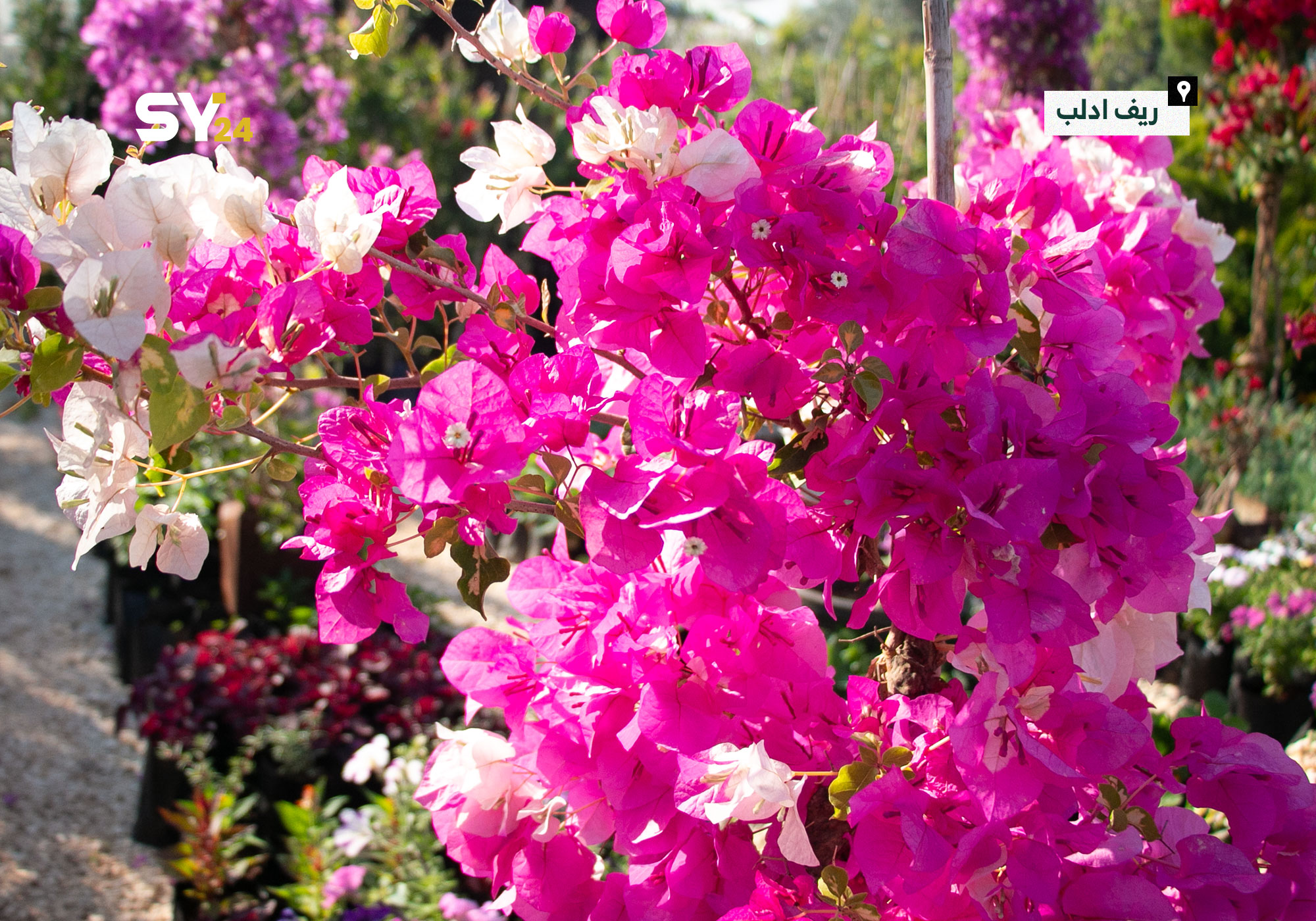 الورود المتنوعة تملأ بستان الحلبي في قرية ست عاتكة بريف إدلب.