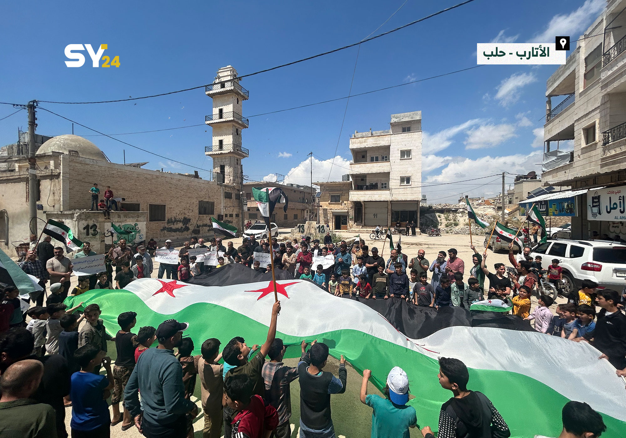 خروج مظاهرة في مدينة الأتارب للمطالبة بالإفراج عن المعتقلين في إدلب، والتأكيد على دعم الحراك السلمي في السويداء.