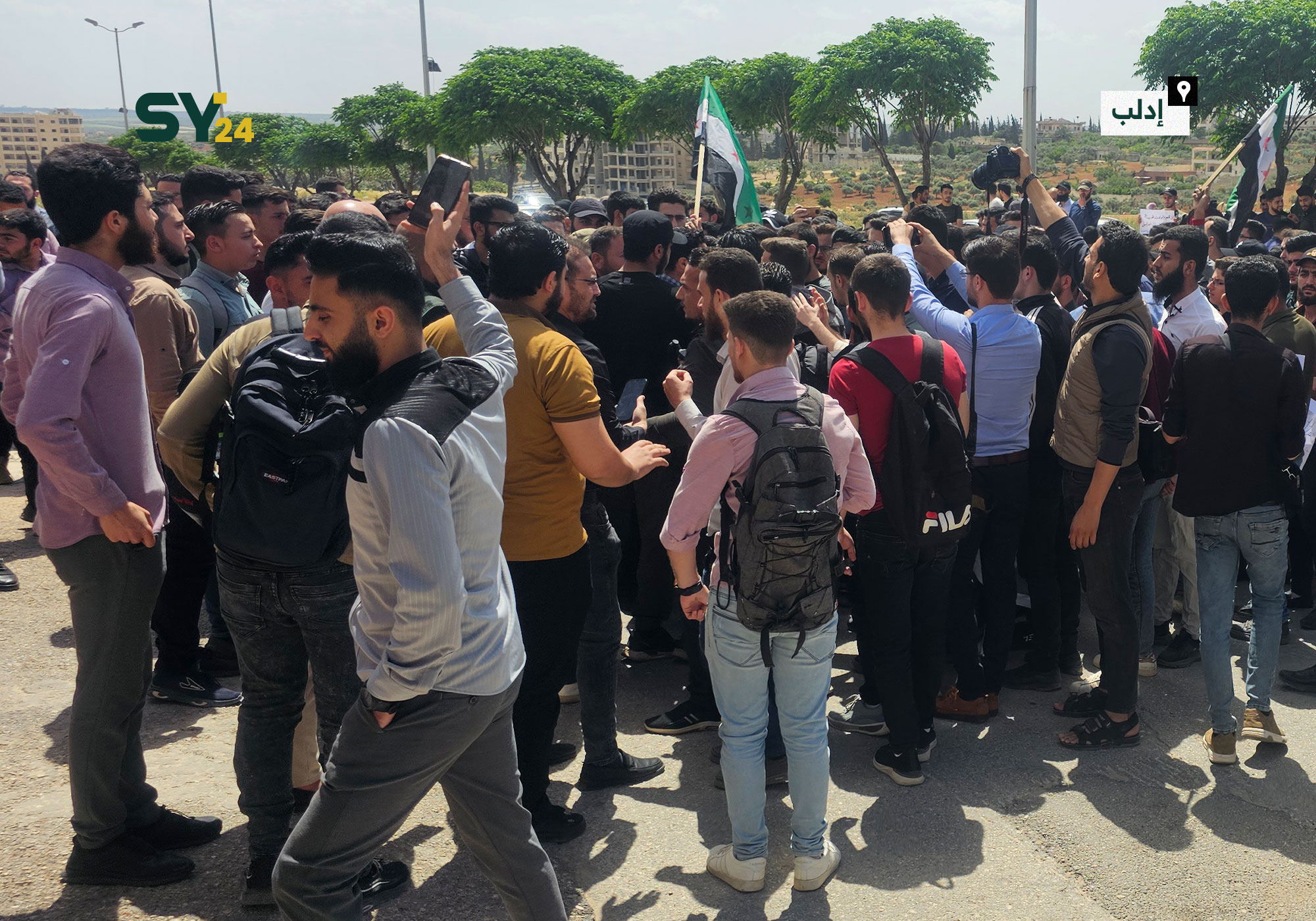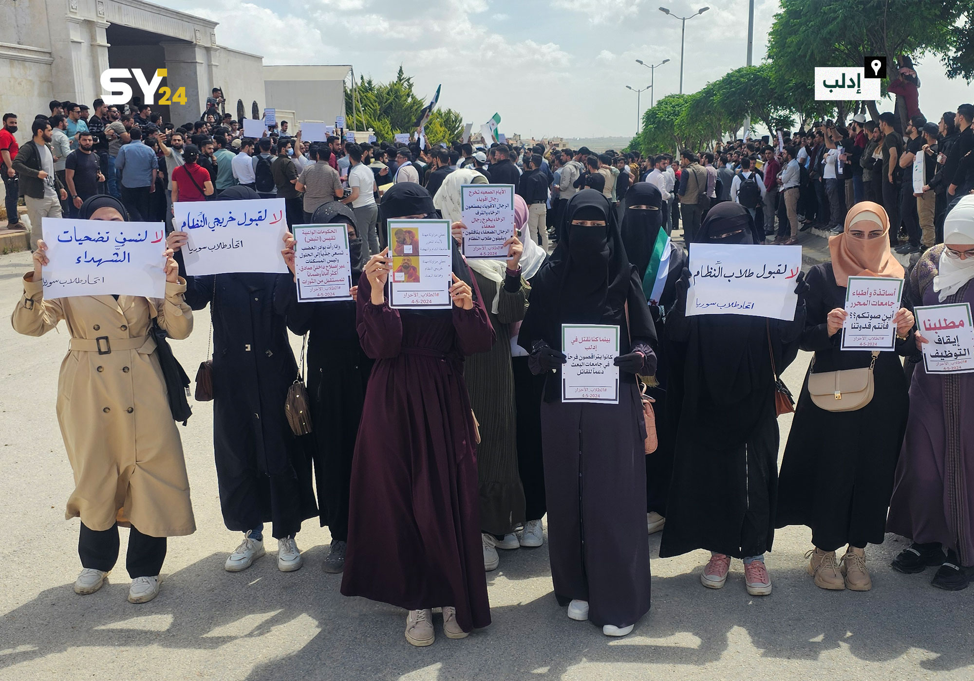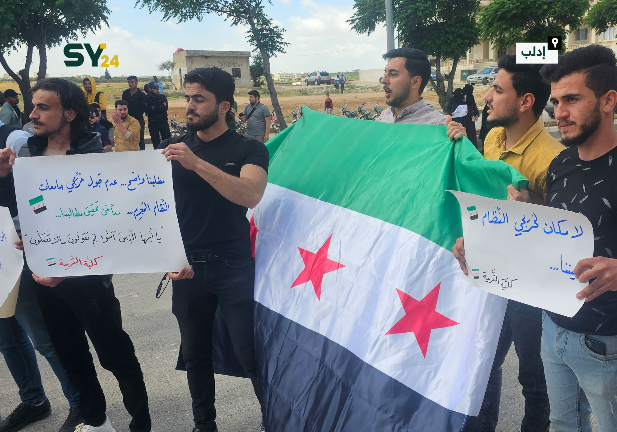 وقفة احتجاجية لطلاب جامعة إدلب أمام قصر المحافظ بمدينة إدلب احتجاجاً على قبول خرّيجي جامعات النظام السوري.