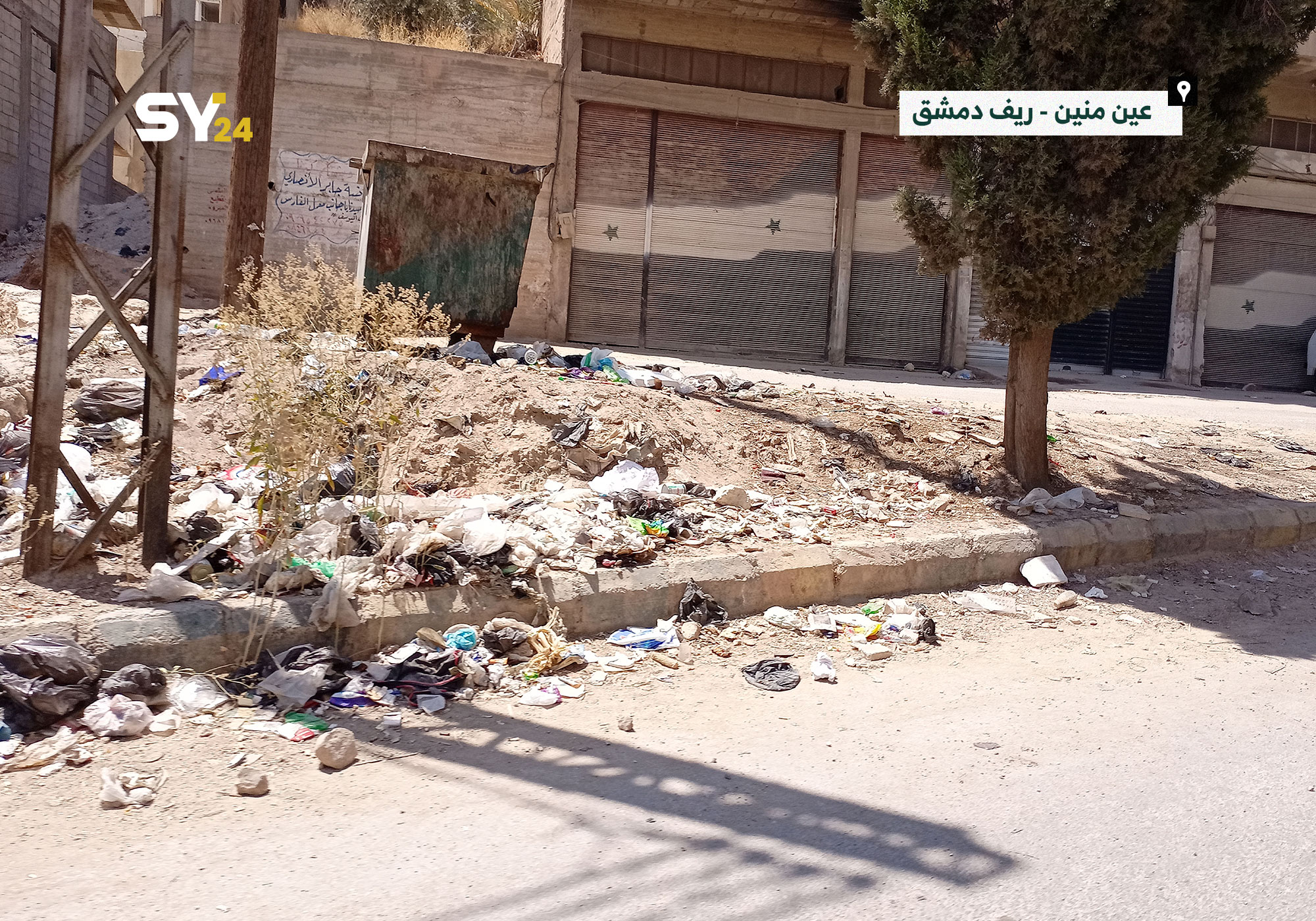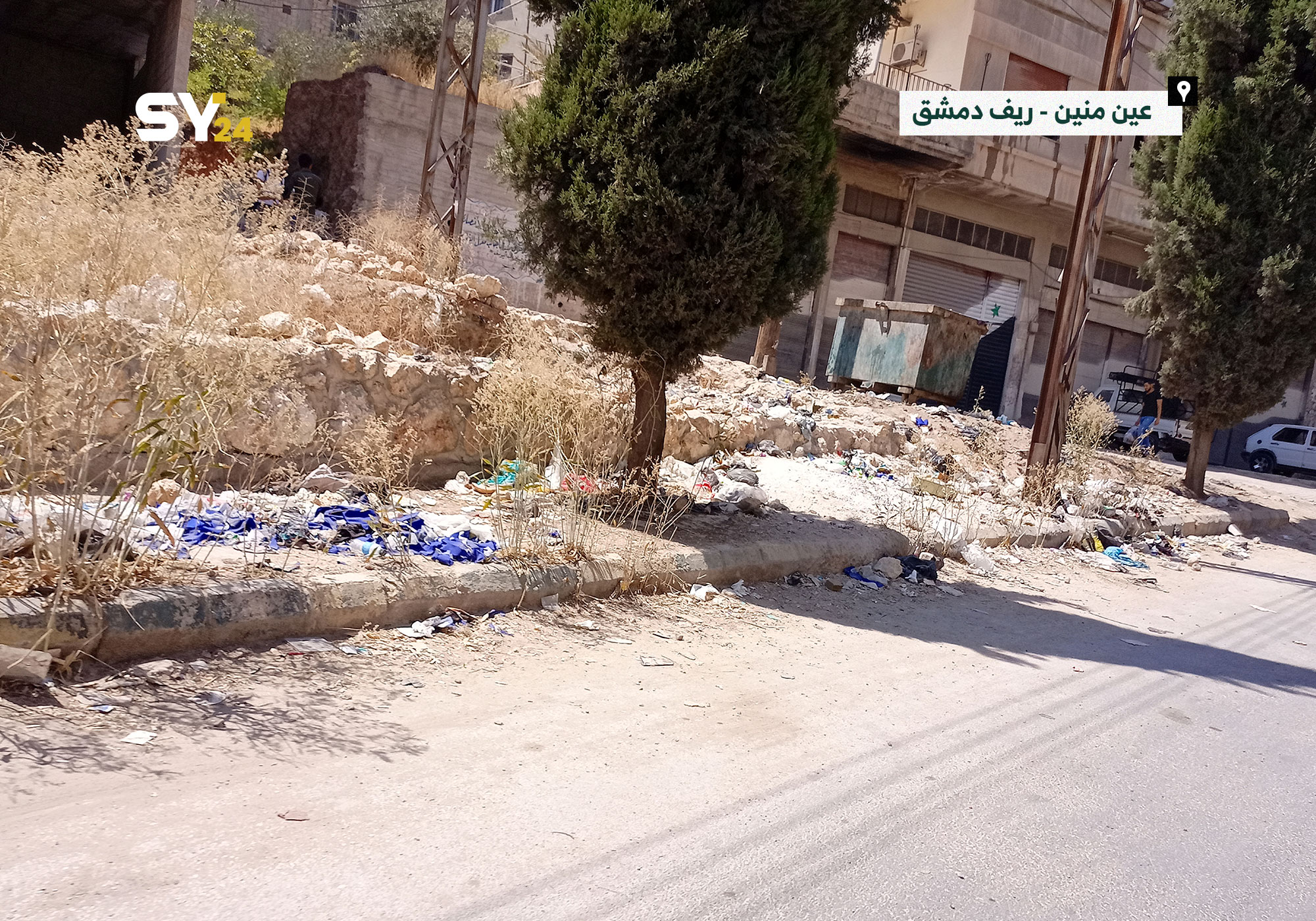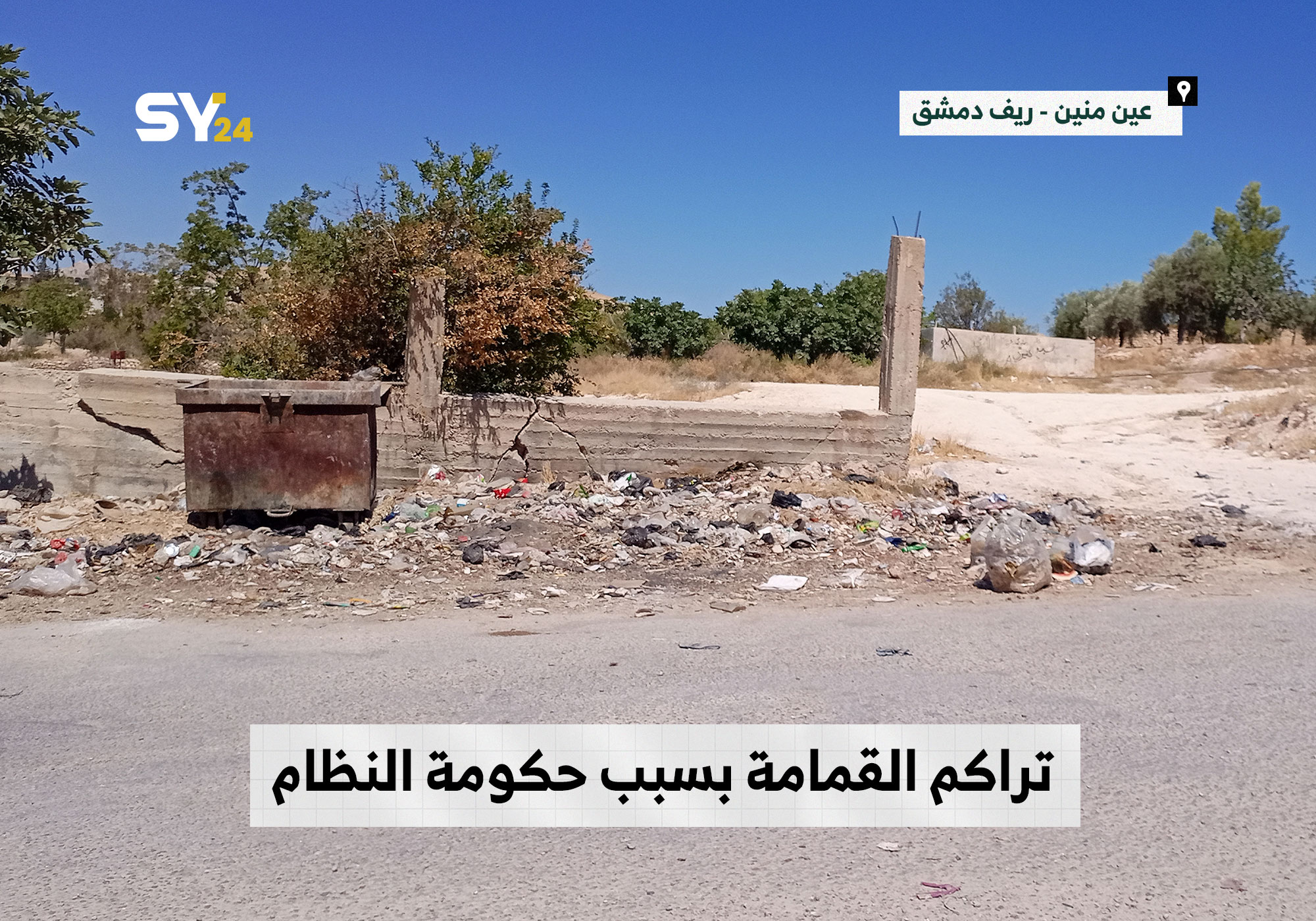 انتشار القمامة في الطرقات الرئيسية بريف دمشق، يُظهر الإهمال الواضح من قبل مؤسسات النظام في تقديم الخدمات الأساسية.