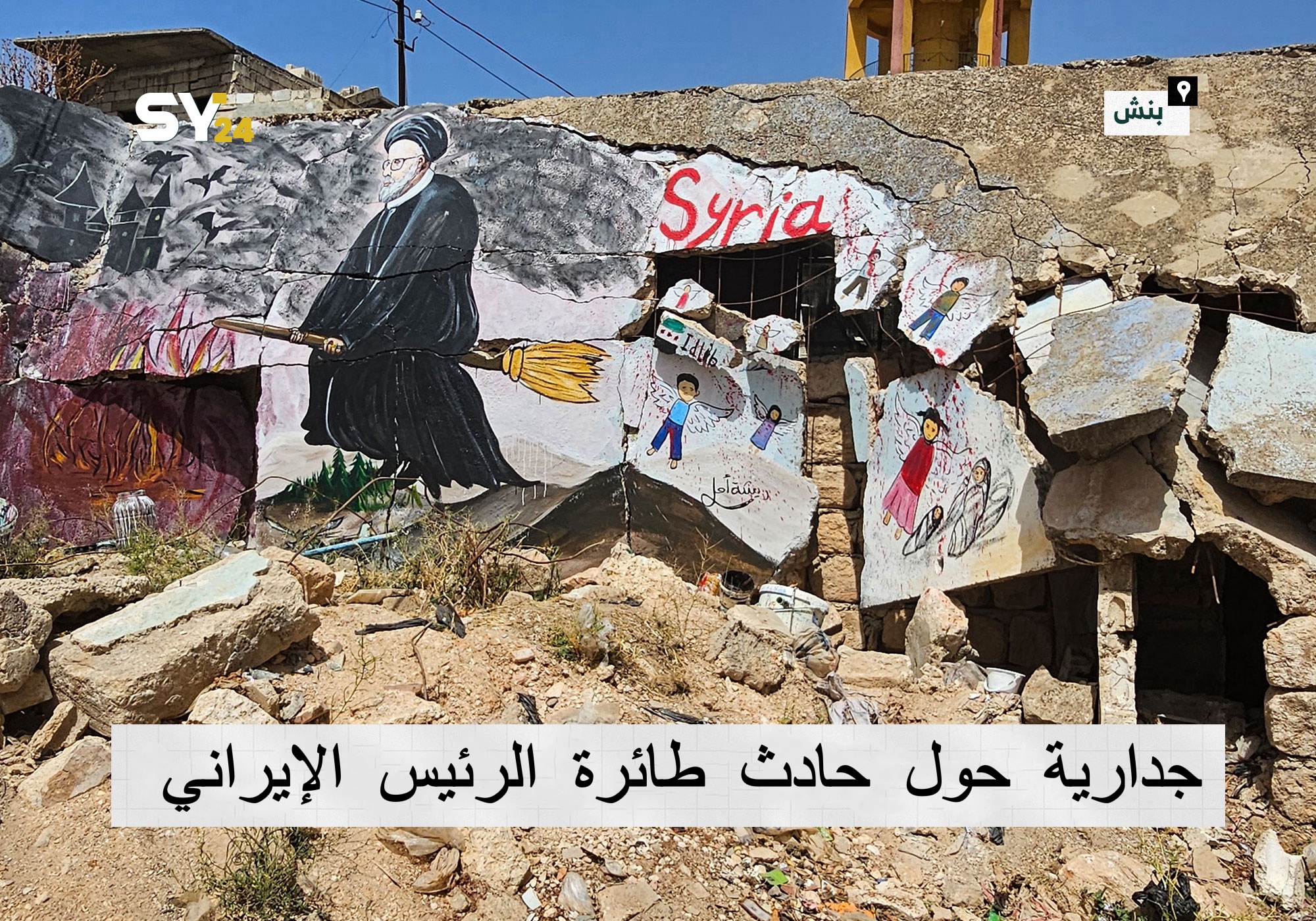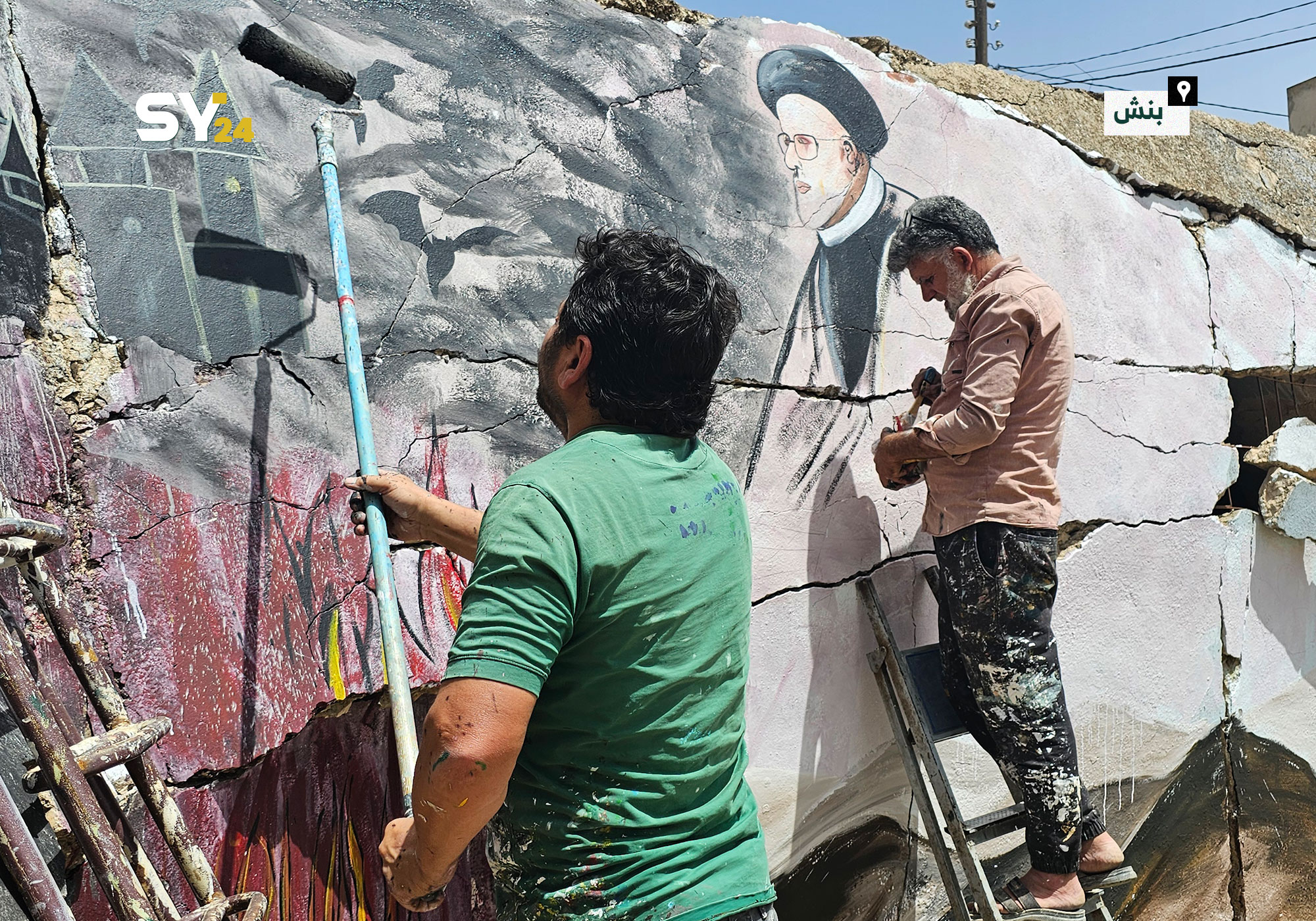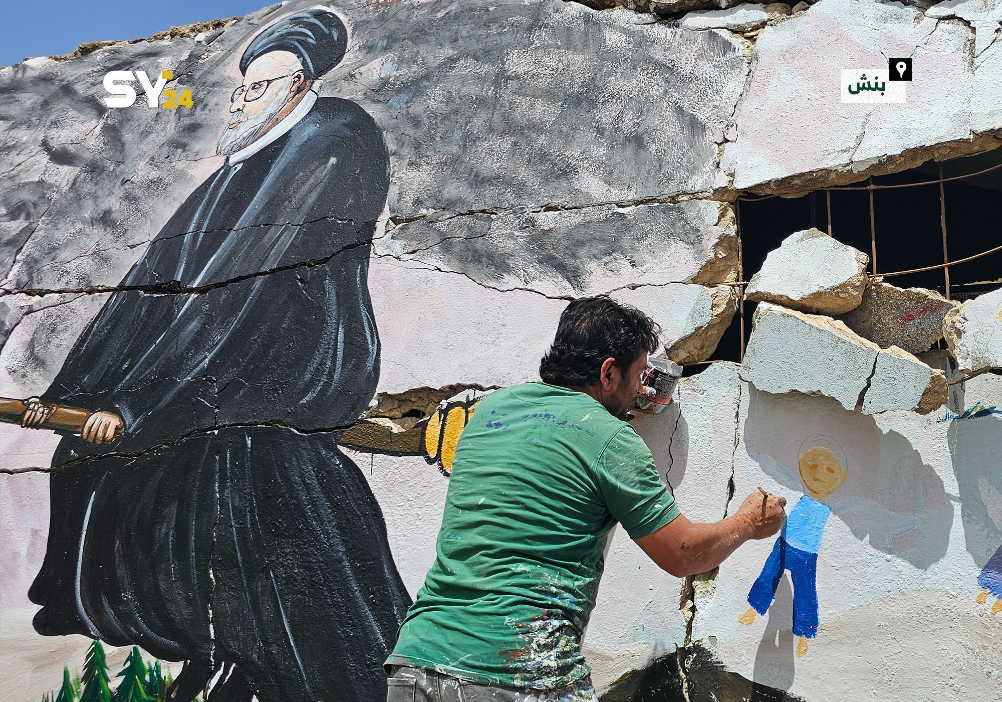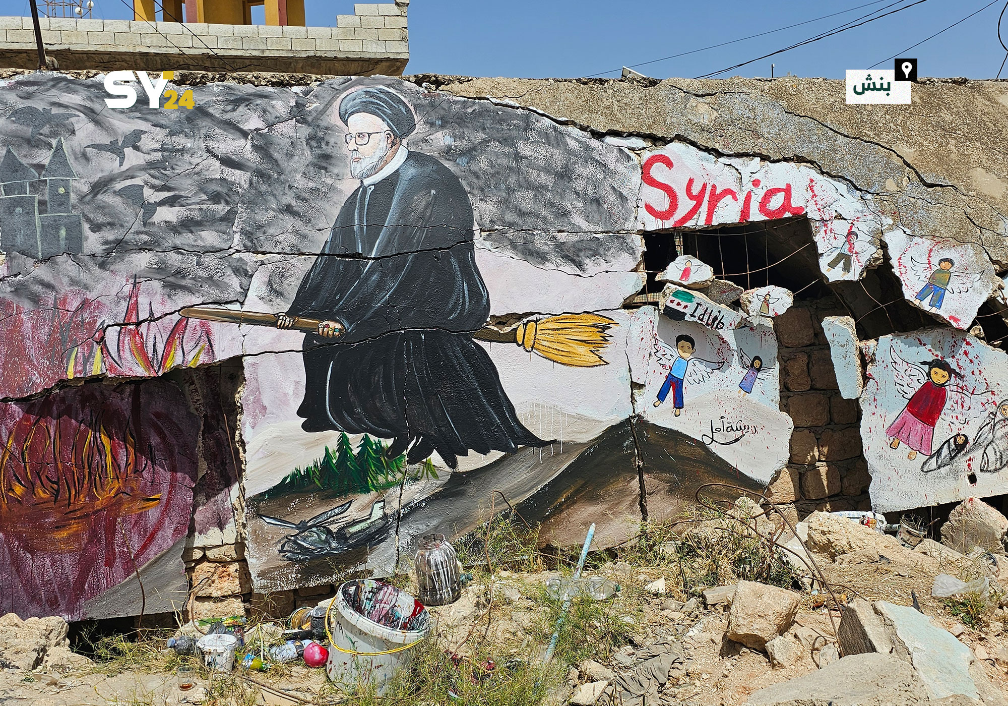 جدارية في مدينة بنش على أحد الجدران المدمرة