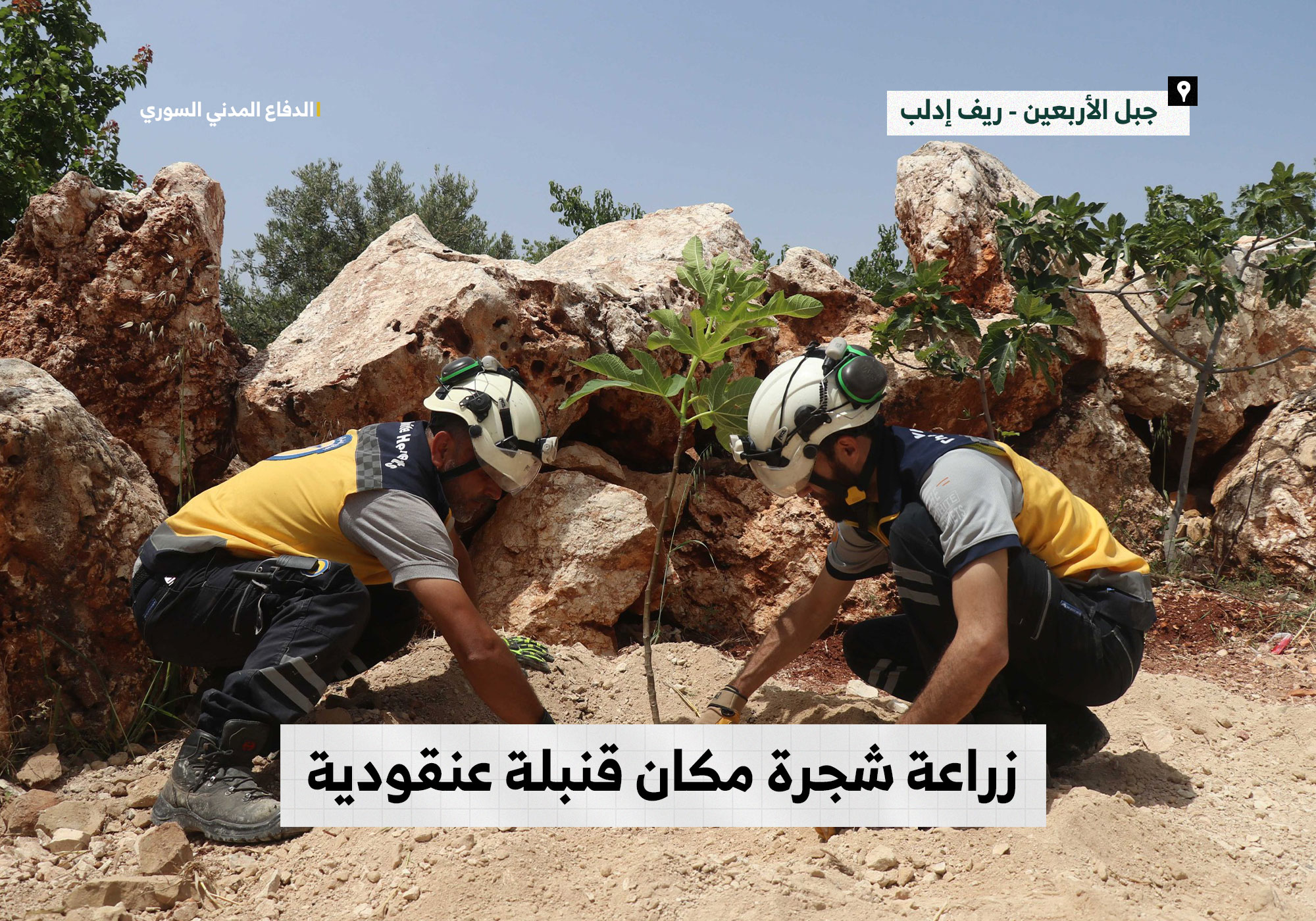 “رمز للحياة والسلام”.. الدفاع المدني يغرس شجرة مكان قنبلة عنقودية من مخلفات الحرب