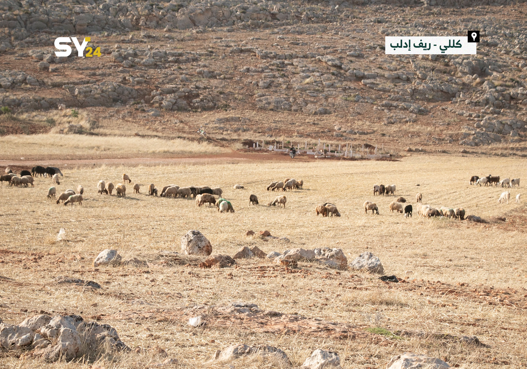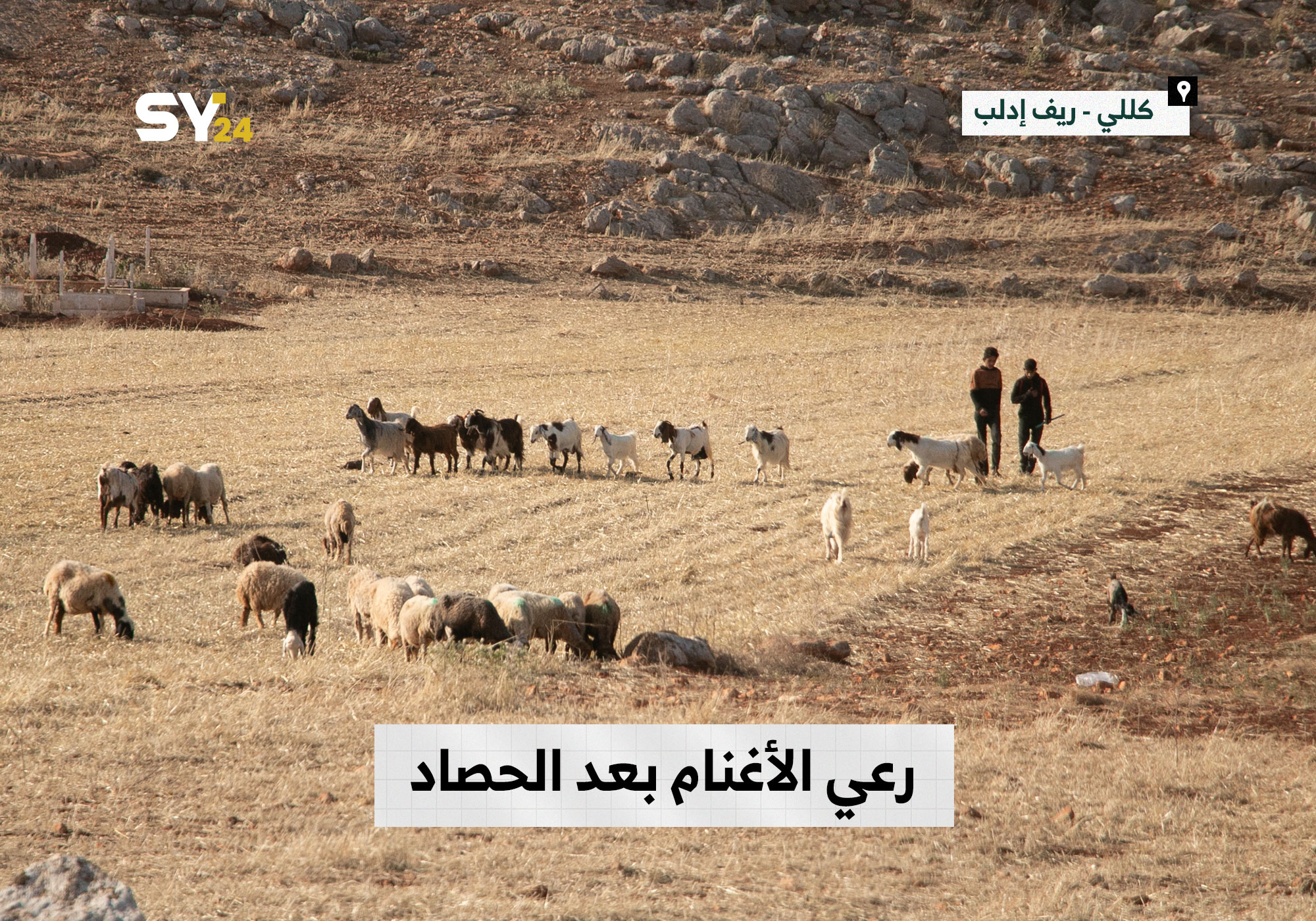 رعي الأغنام في حقول إدلب بعد موسم الحصاد