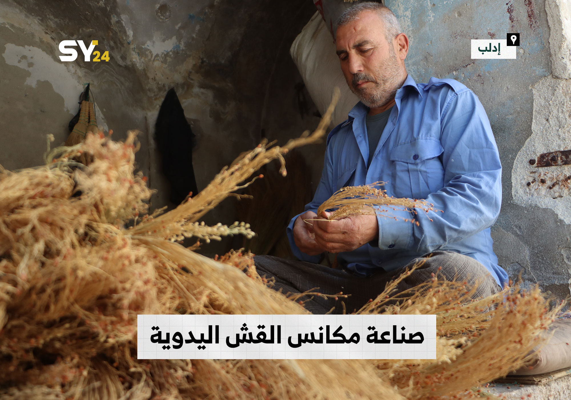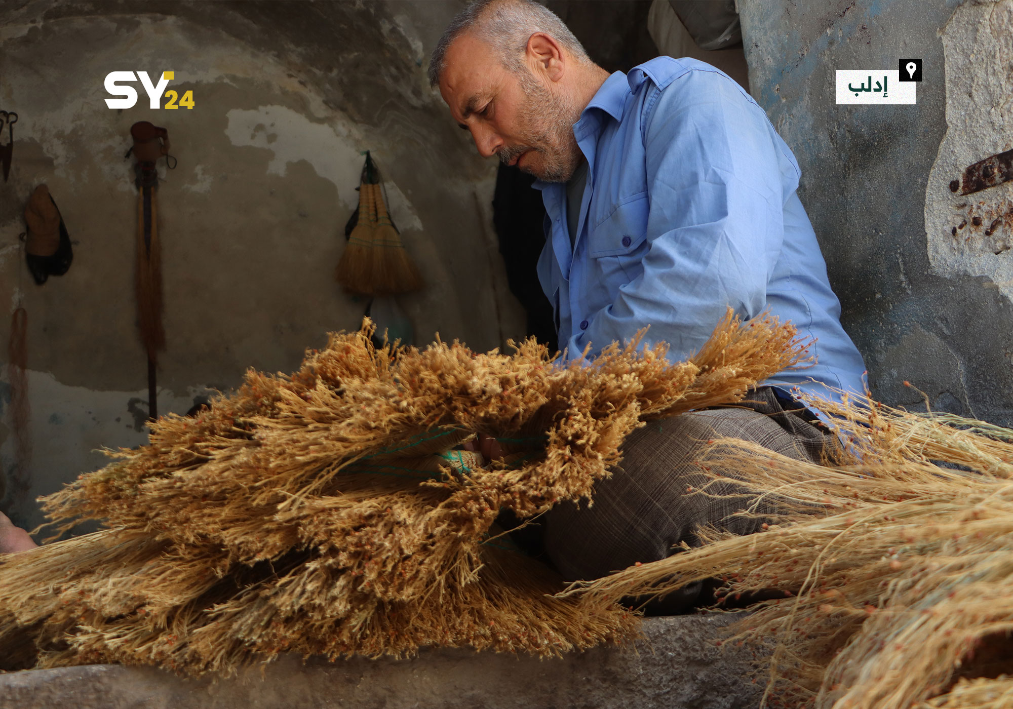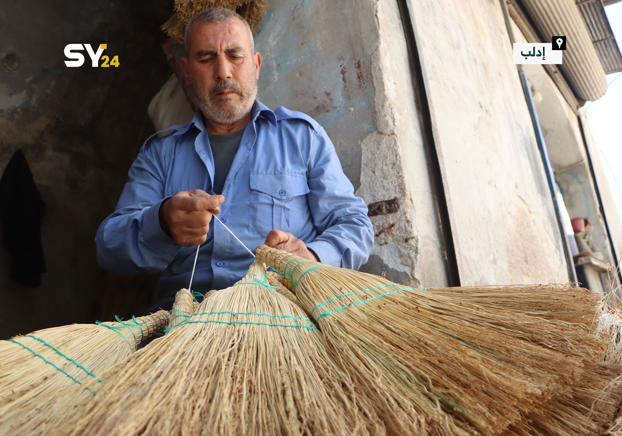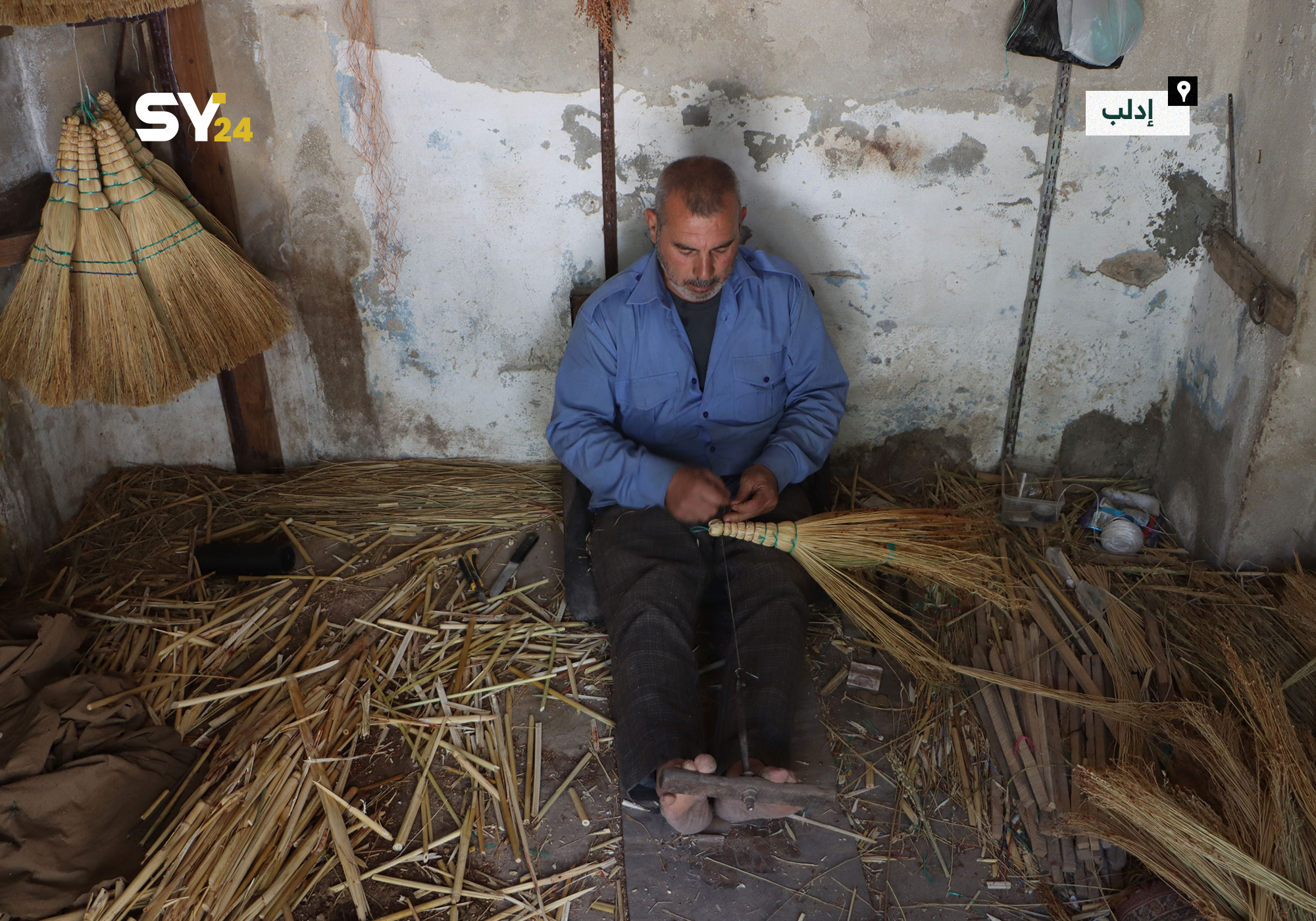 كمال خربوط يعمل في صناعة مكانس القش منذ 35 عاماً في خارات إدلب القديمة