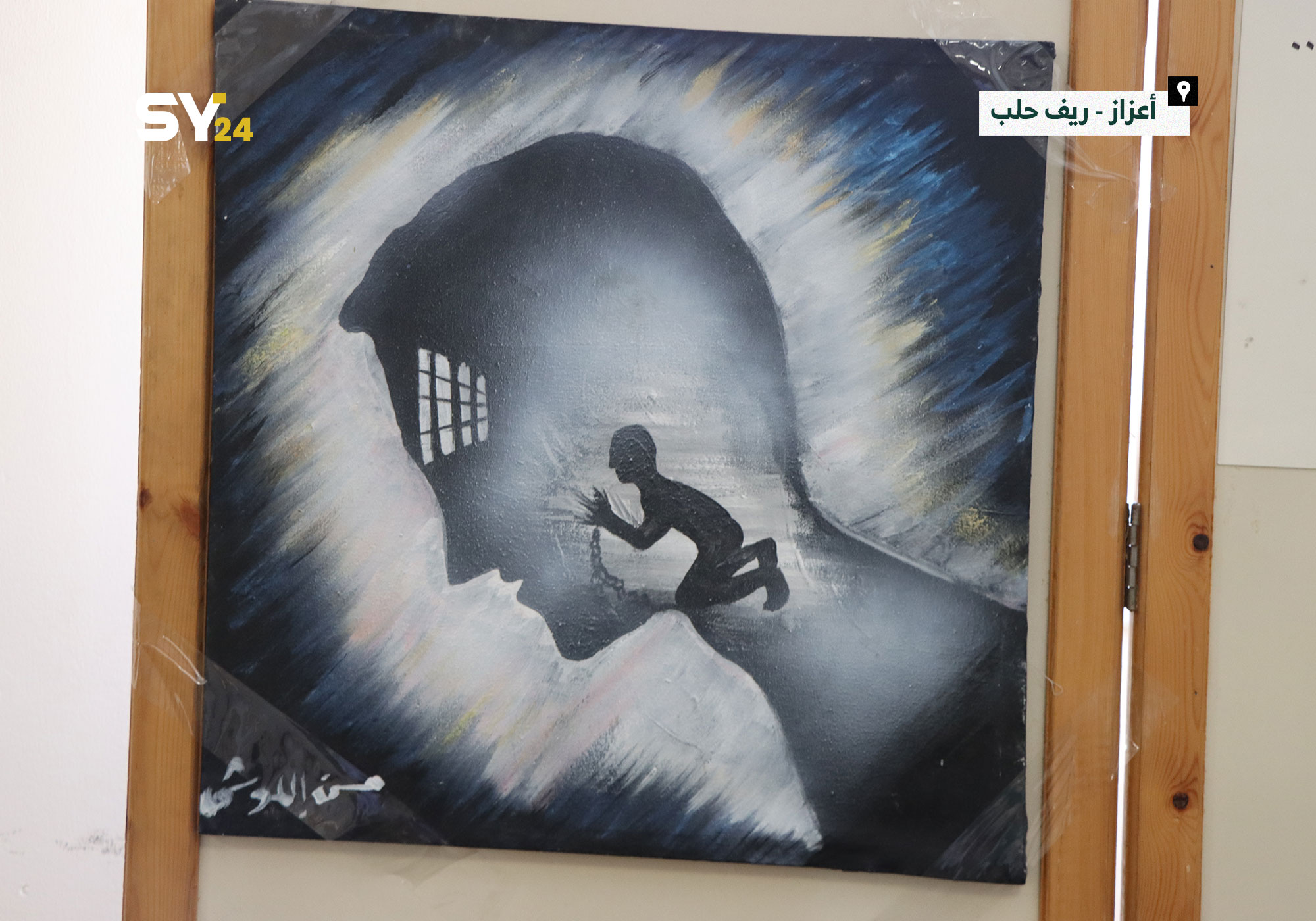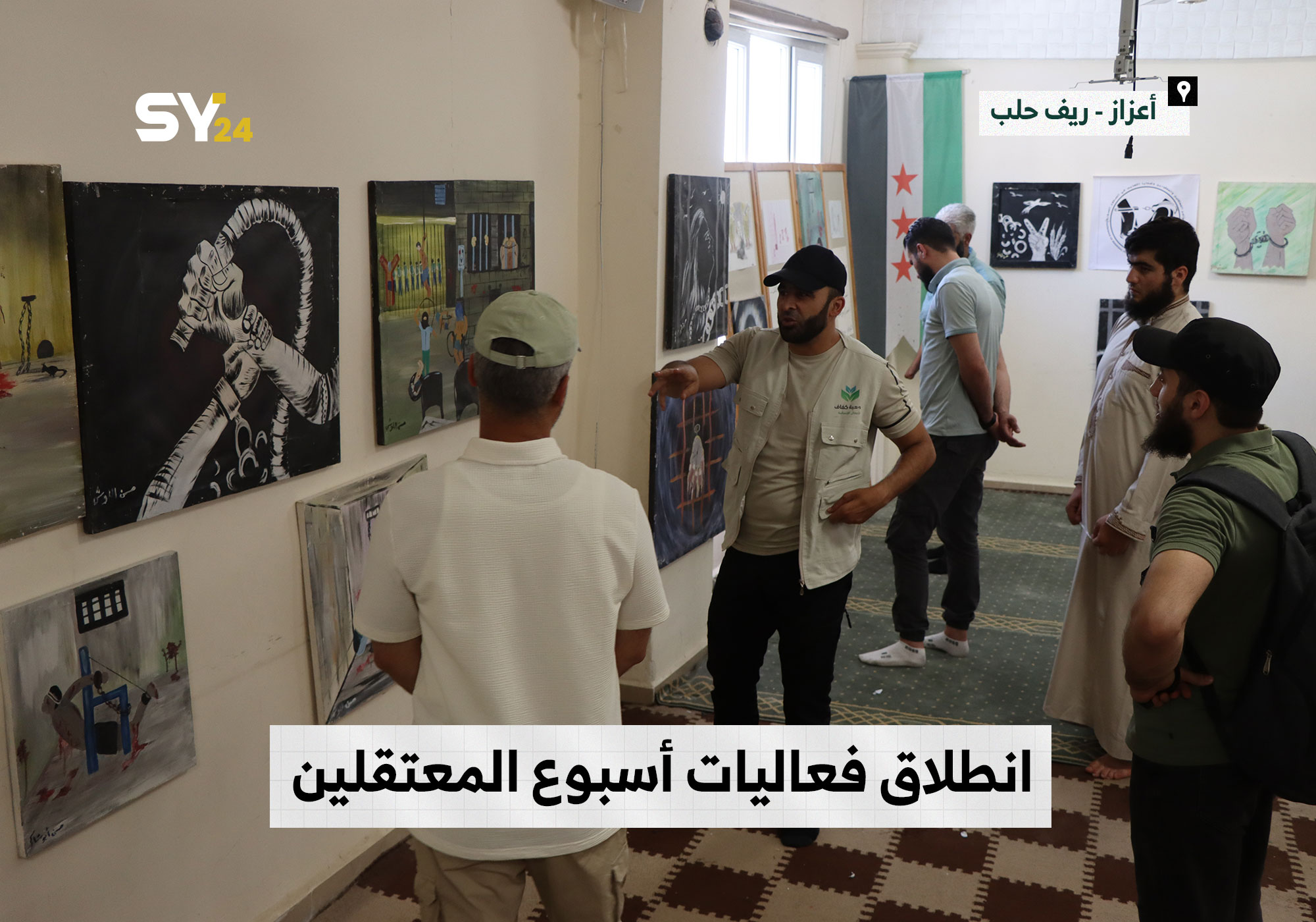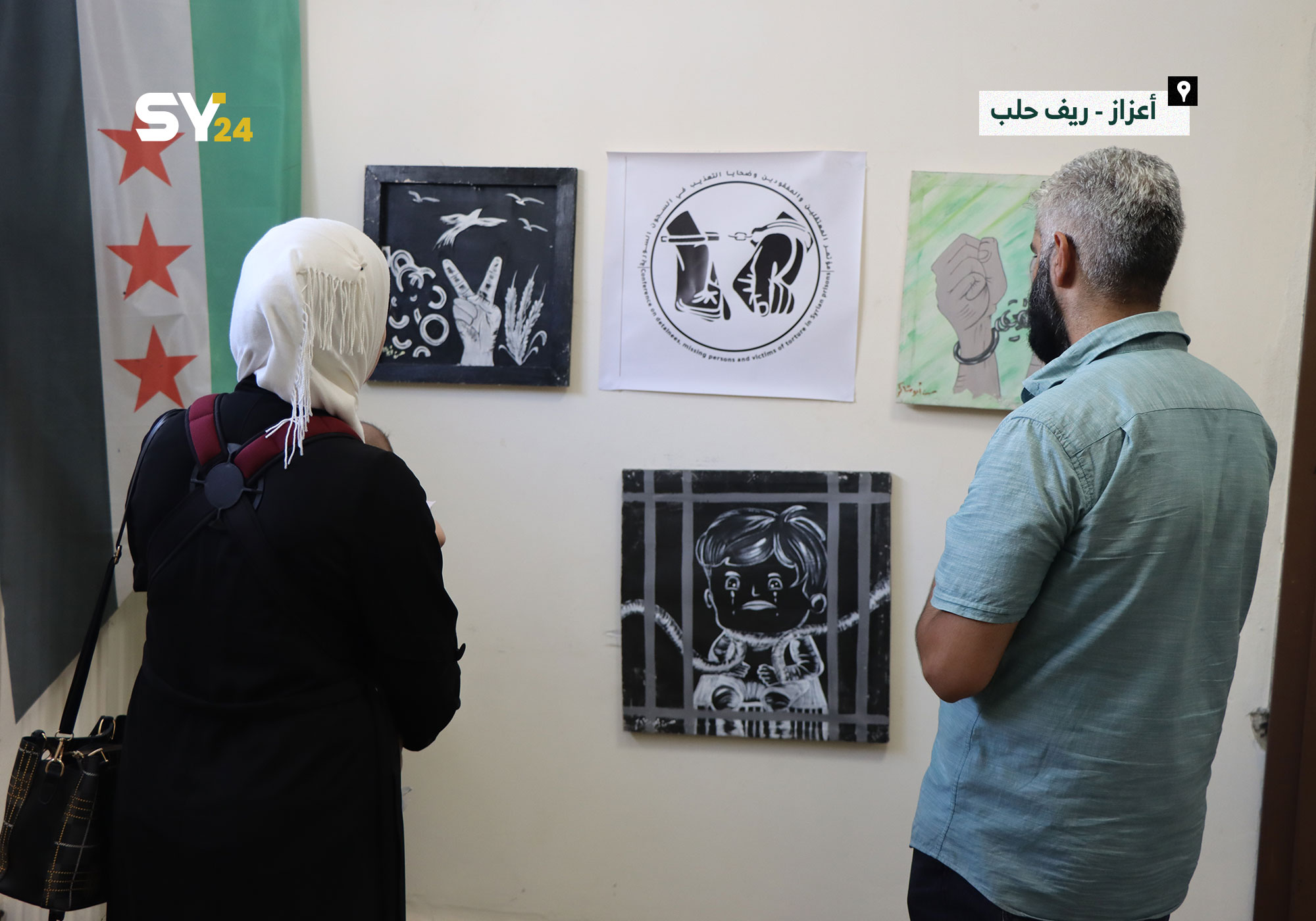 معرض في مدينة أعزاز بريف حلب لرسومات تحاكي المعاناة والتعذيب الذي يتعرض له المعتقلون داخل السجون السورية