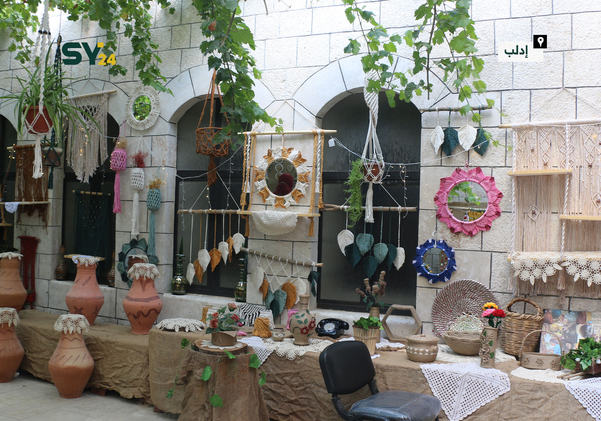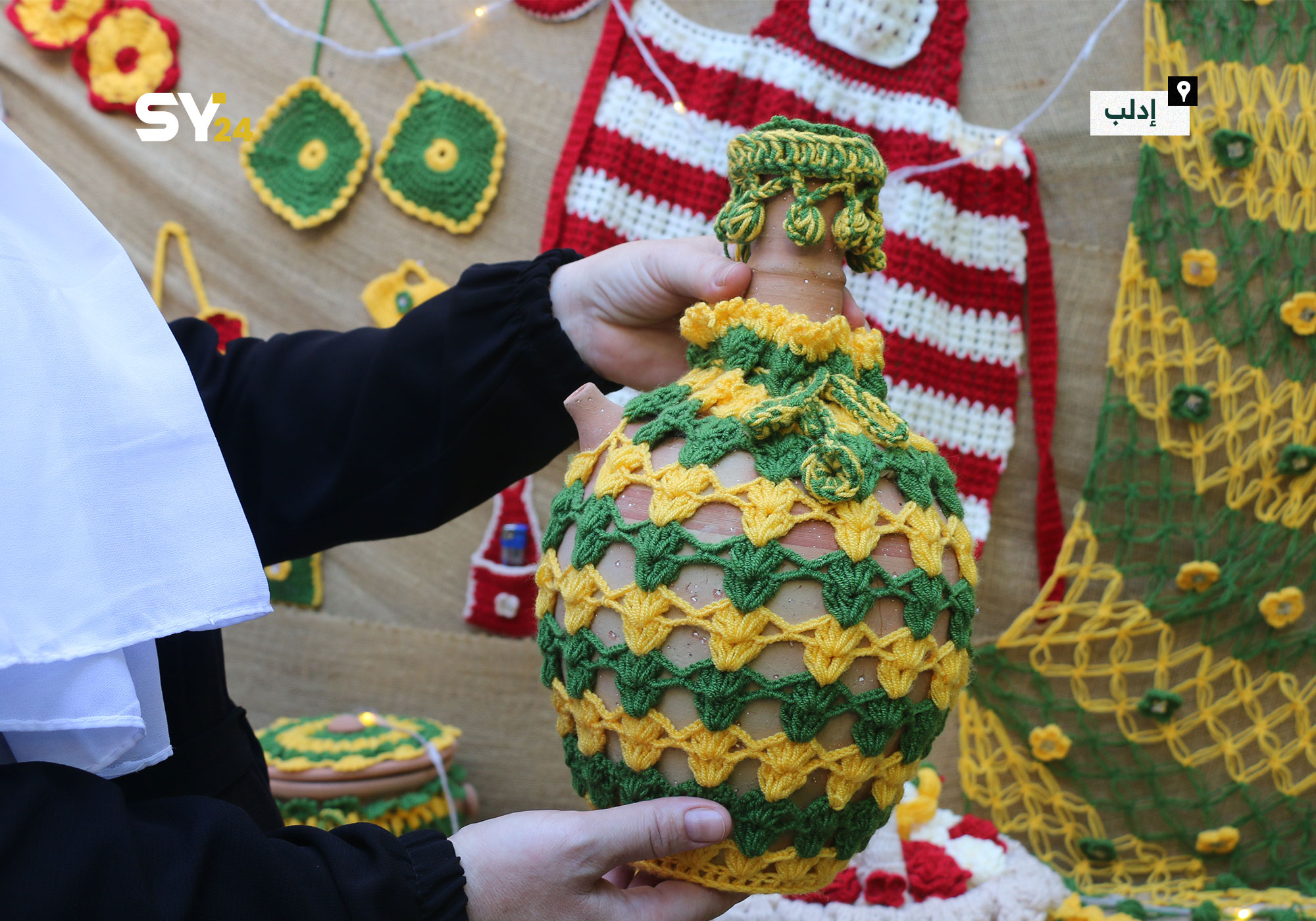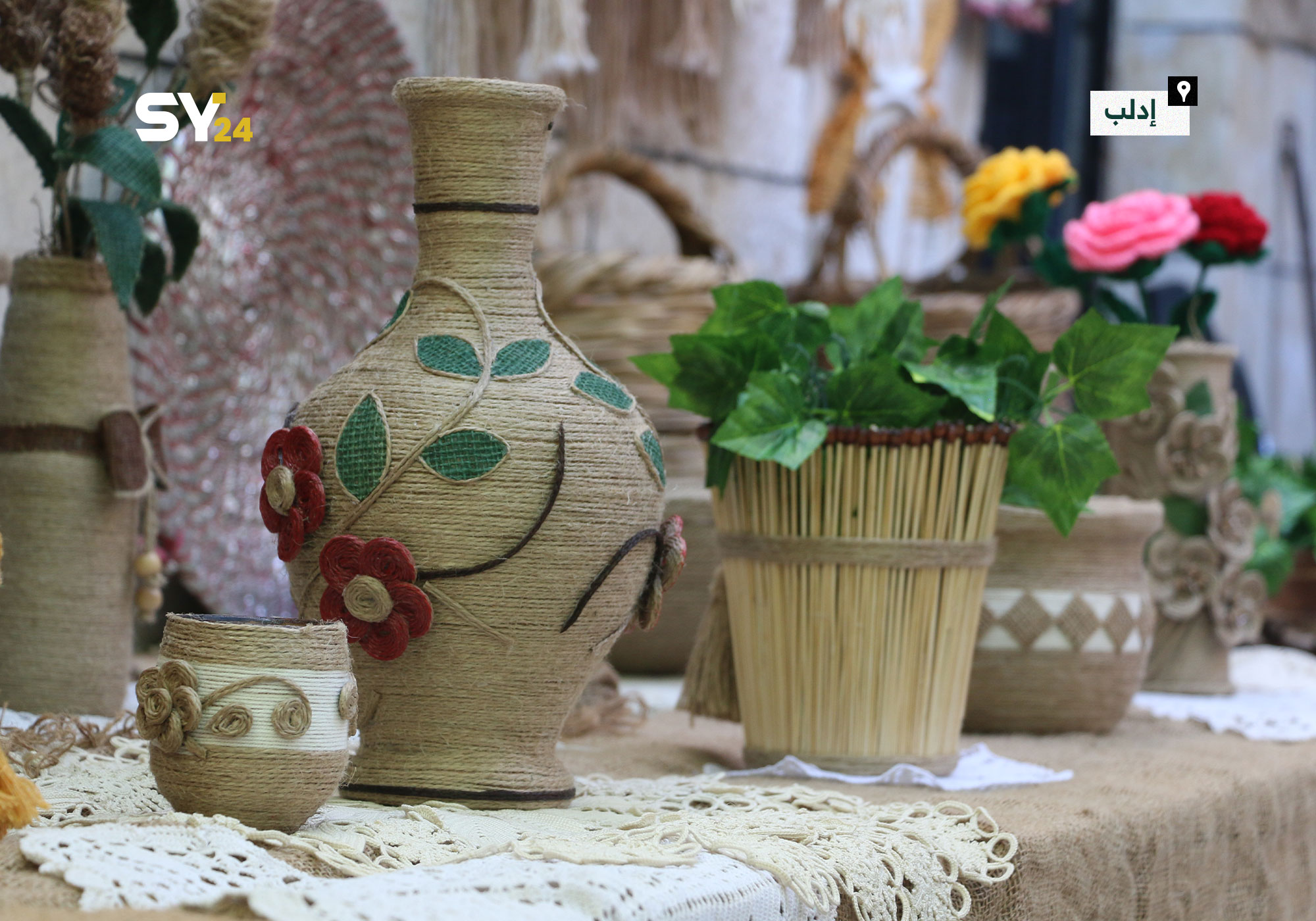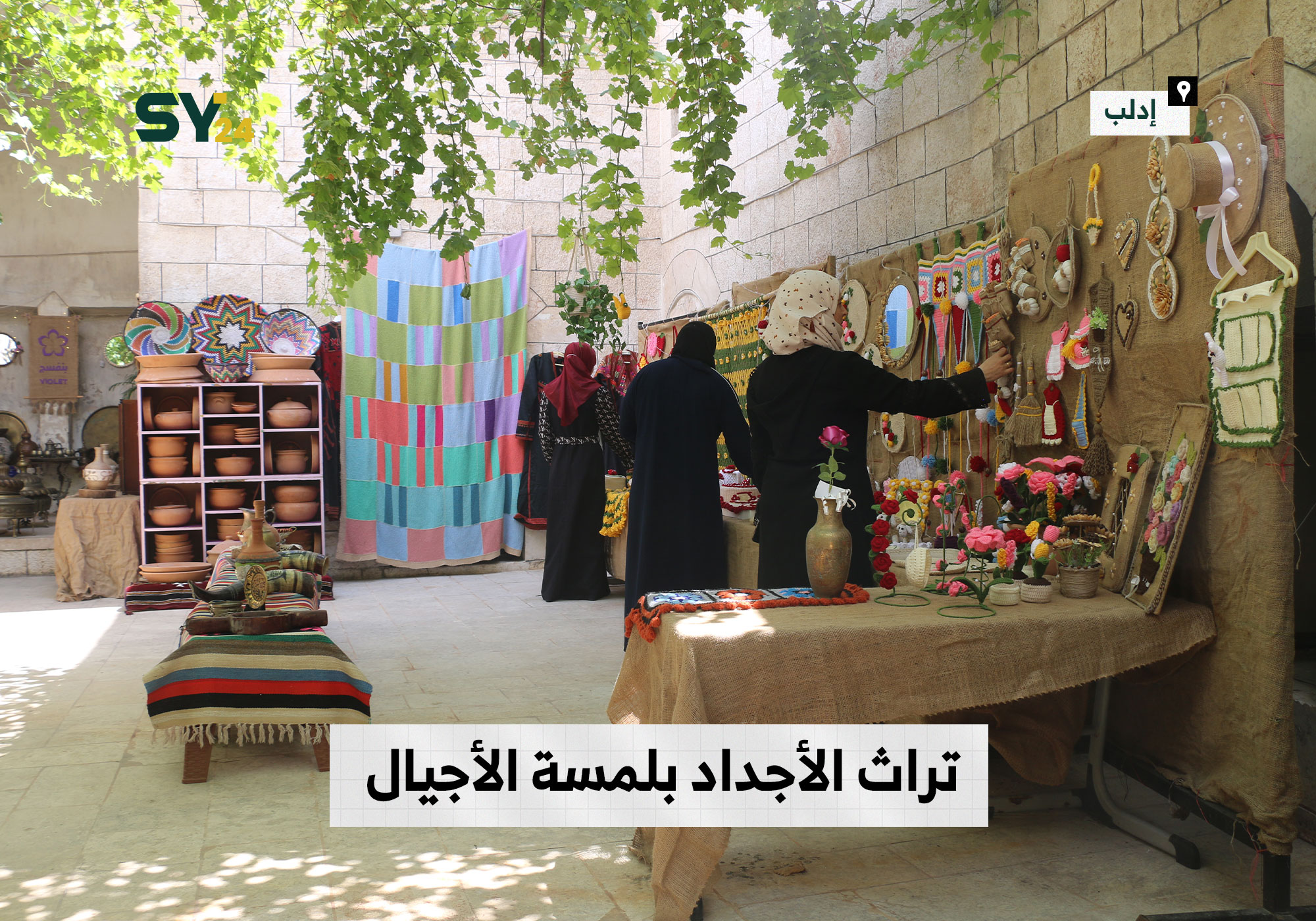 صور من معرض “تراث الأجداد بلمسة الأجيال” بيد مجموعة من النساء في مدينة إدلب.