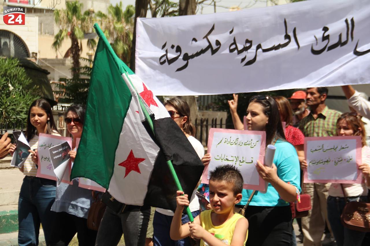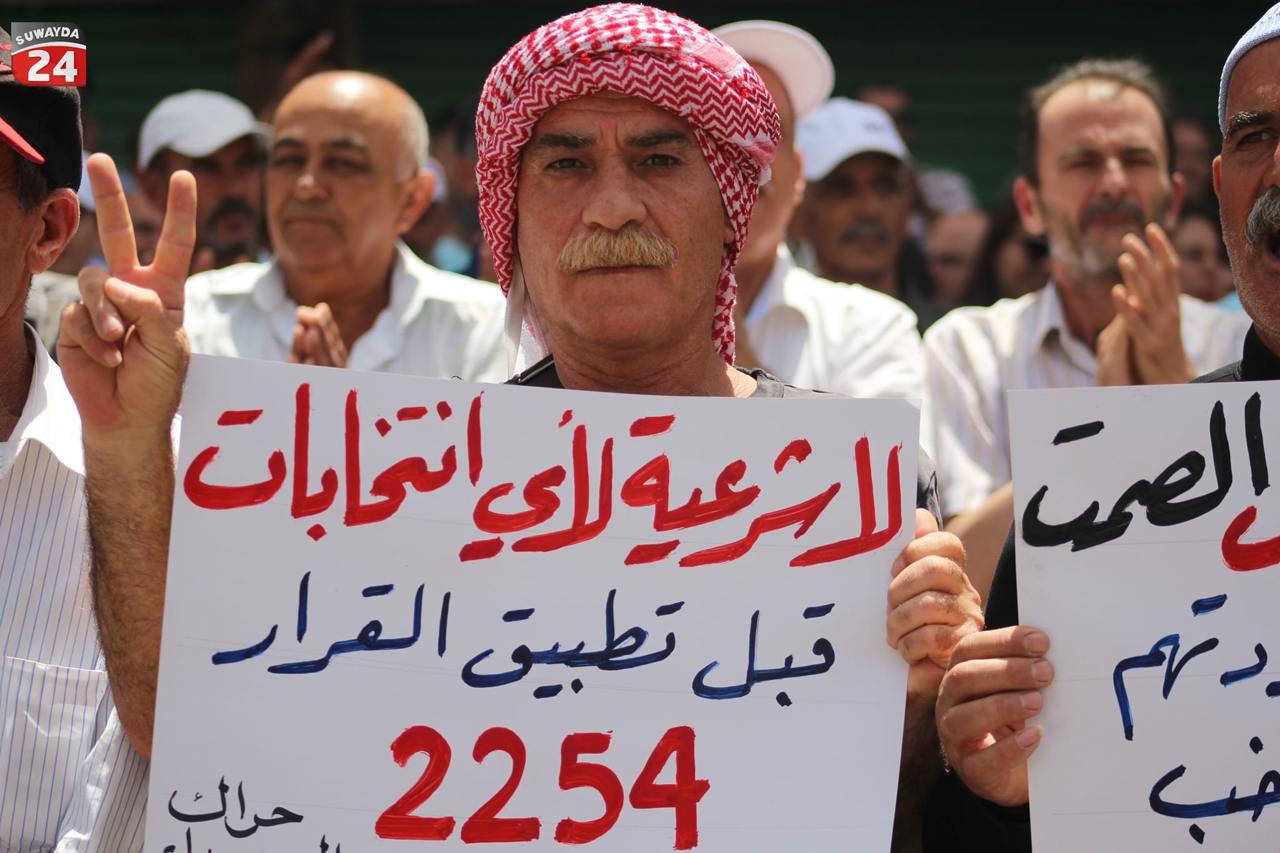 وشهدت الساحة وفوداً من مختلف مناطق المحافظة، حيث شاركت العديد من القرى والفعاليات بصفة شعبية وسلمية. حمل المتظاهرون لافتات وصوراً تطالب بالحرية والتغيير السياسي، وتدعو للسلام والمحبة ومقاطعة الانتخابات. وفقاً لـ “السويداء 24”.