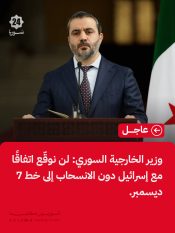 وزير الخارجية السوري لموقع المجلة: لن نوقّع اتفاقًا مع إسرائيل دون الانسحاب إلى خط 7 ديسمبر.