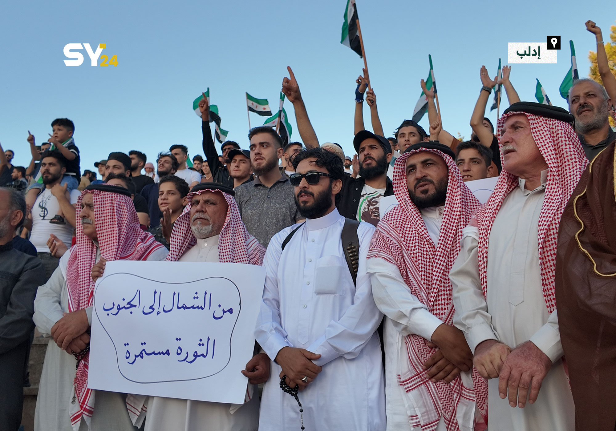 صور من مظاهرة مدينة إدلب يوم أمس بمشاركة العشائر السورية والمهجرين